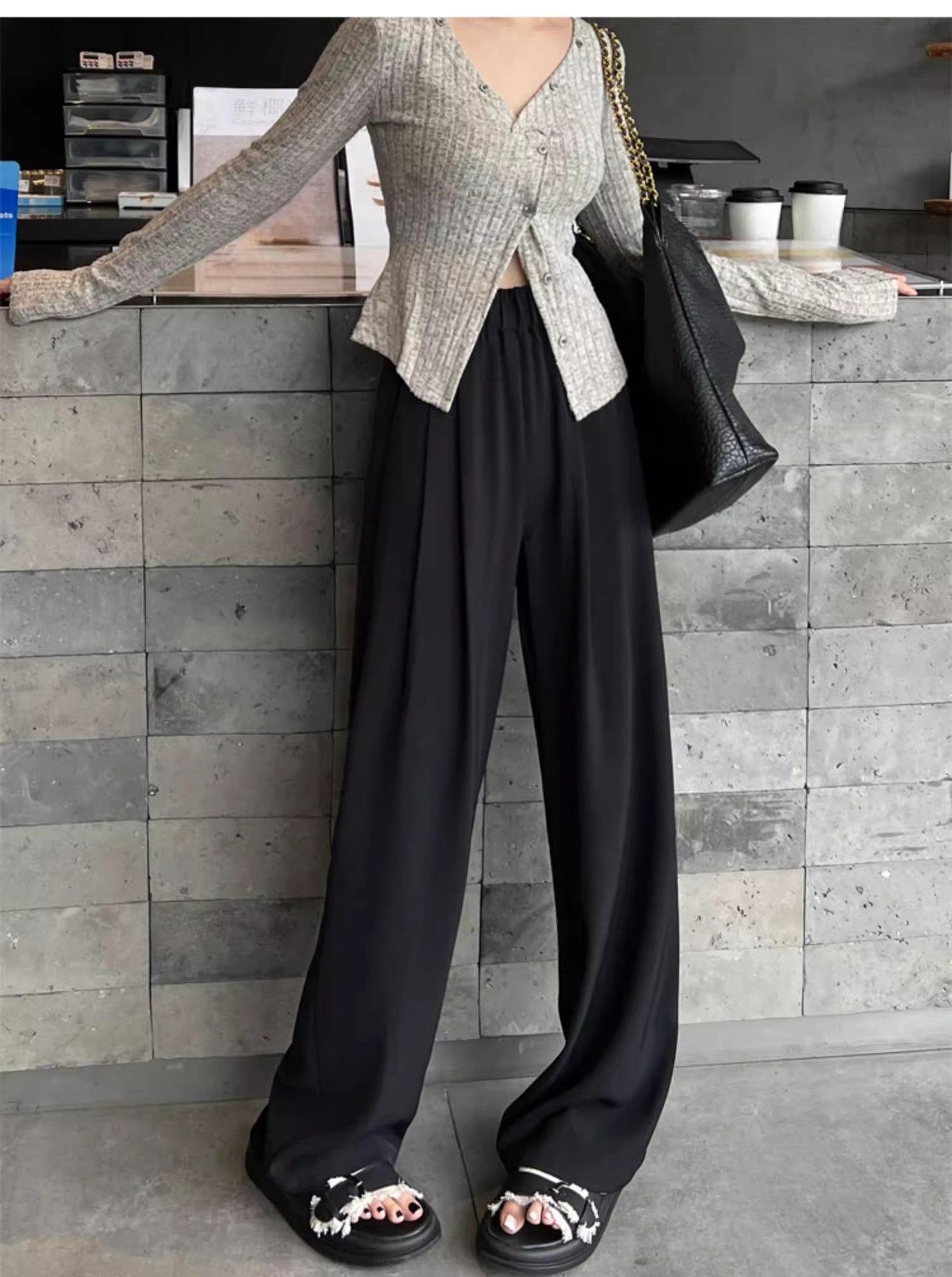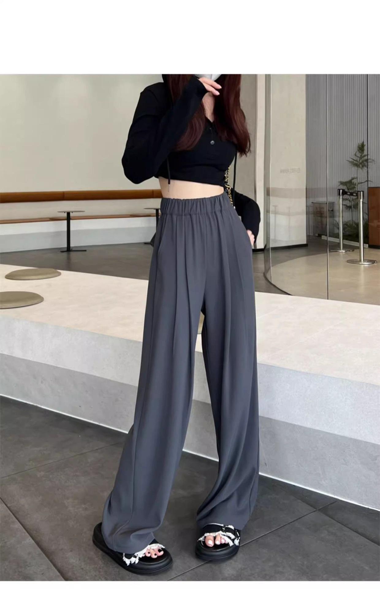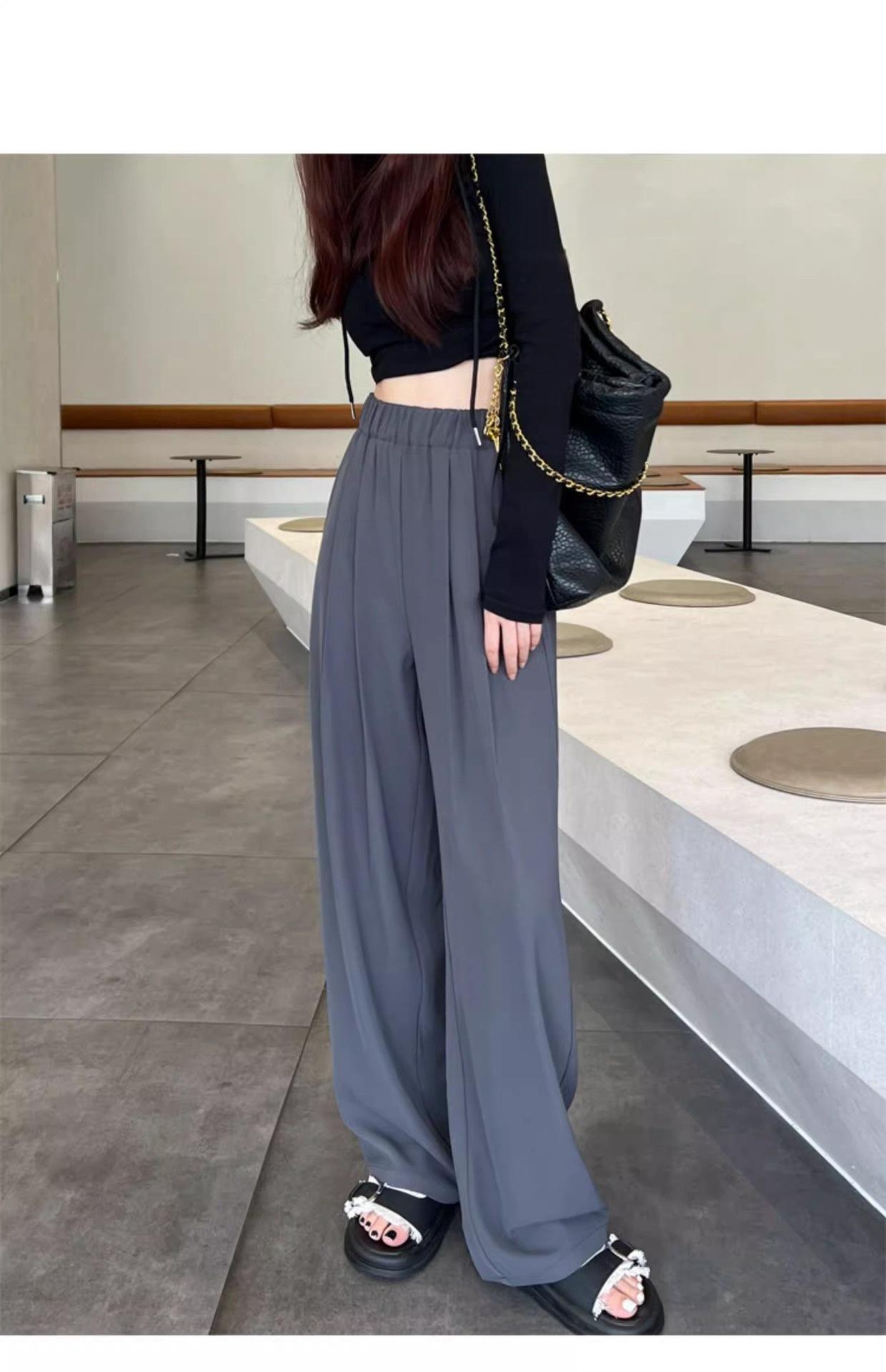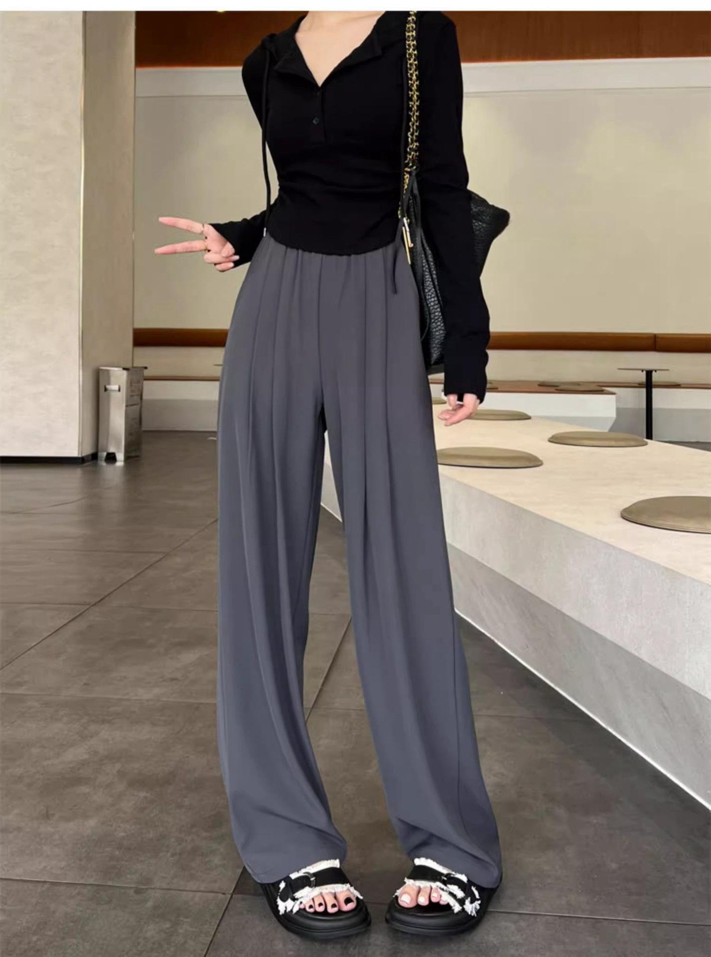 Azul marino Pantalones Estrechos para Mujer Primavera y Otoño 2025 Nuevo Recto Adelgazante Casual Cintura Alta Dosificación Pantalones de Pierna Ancha