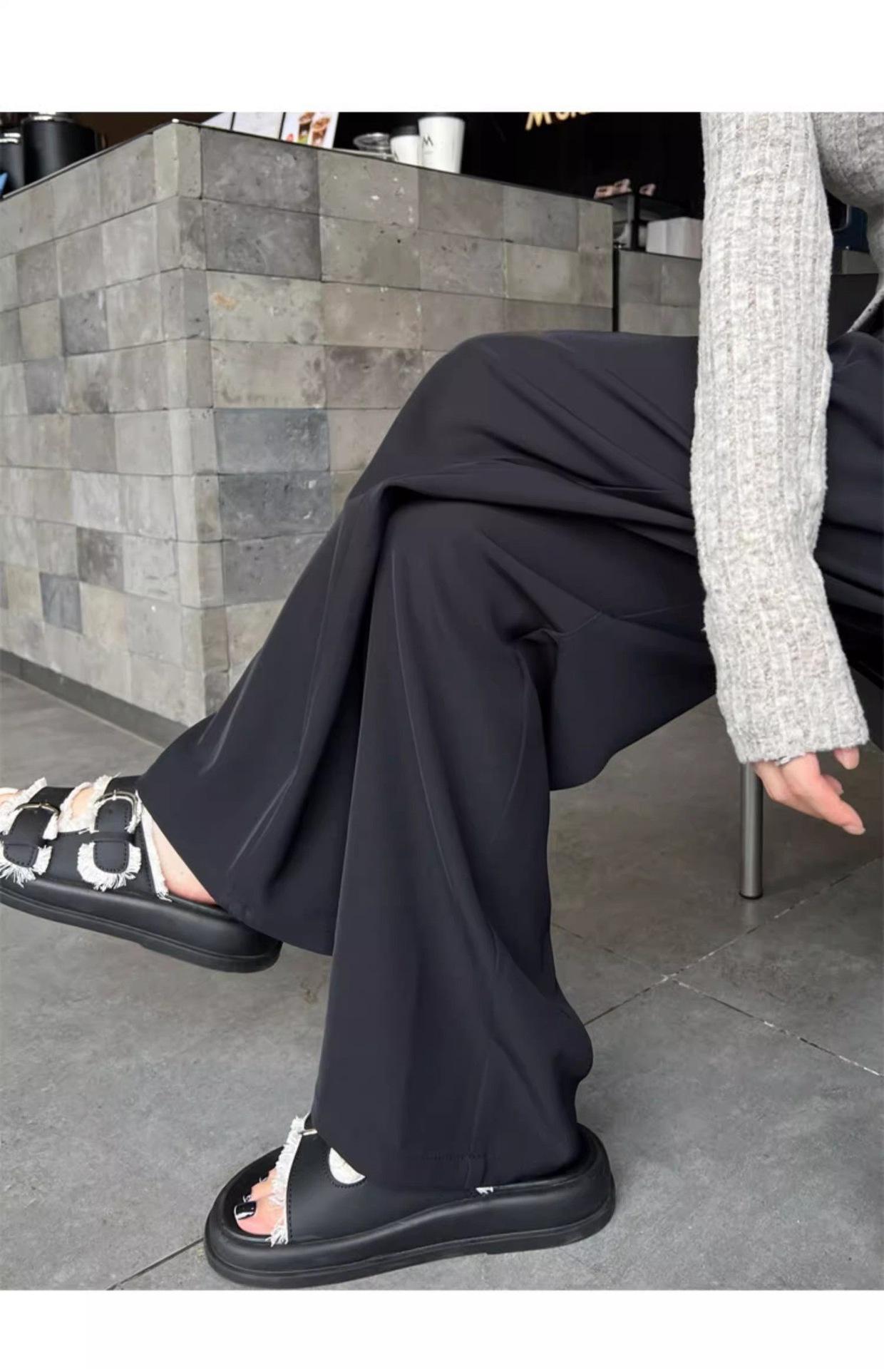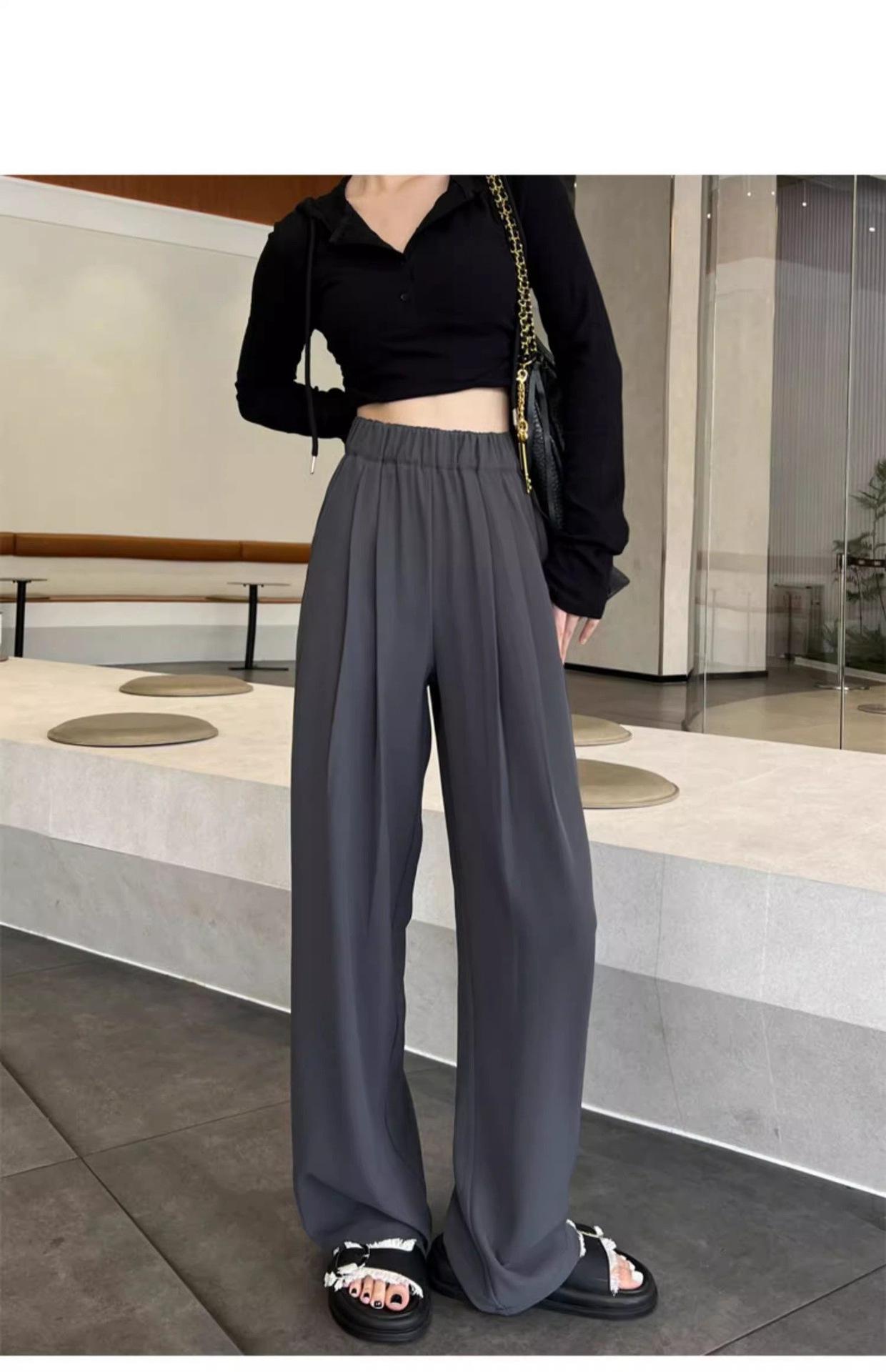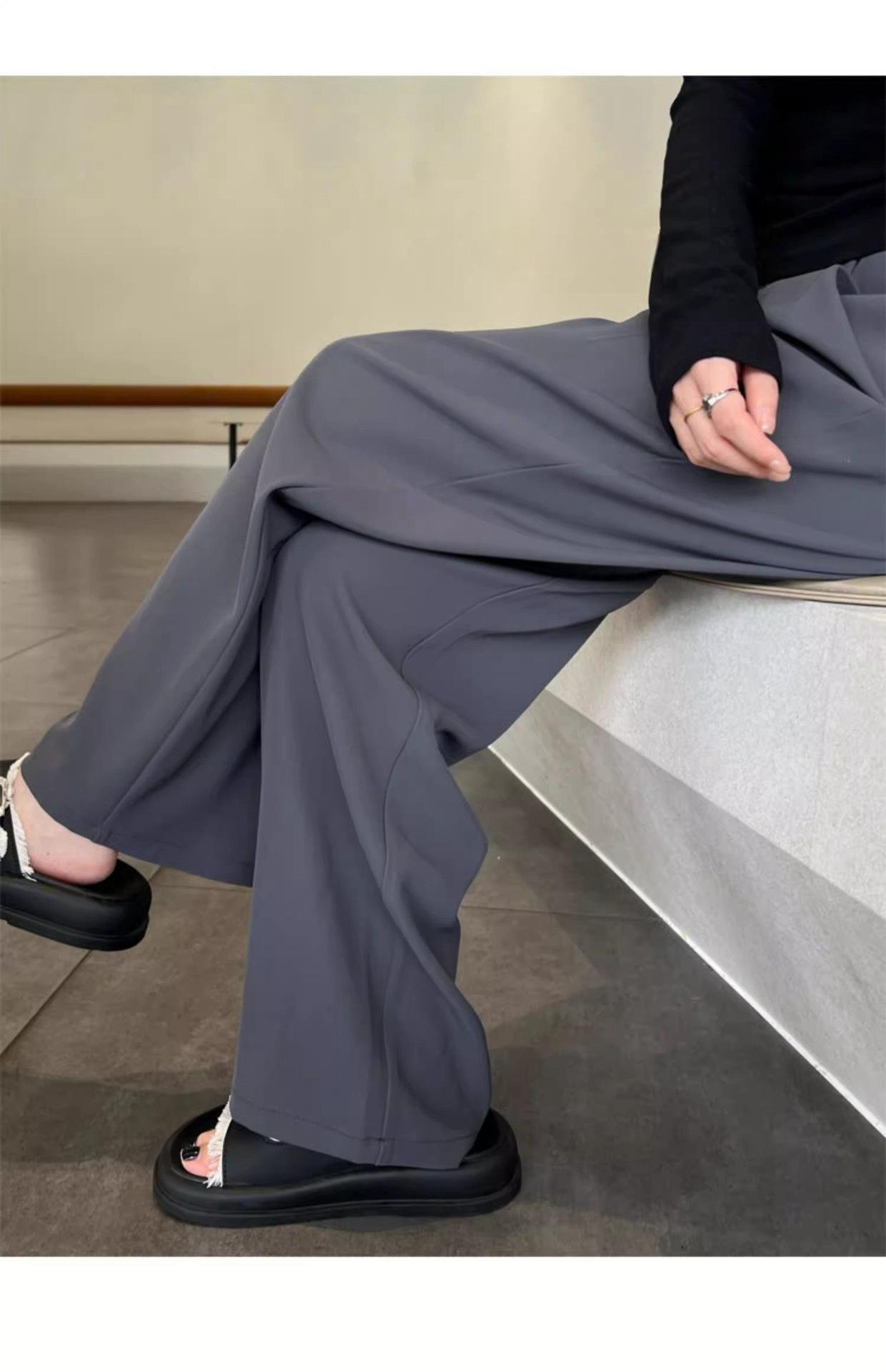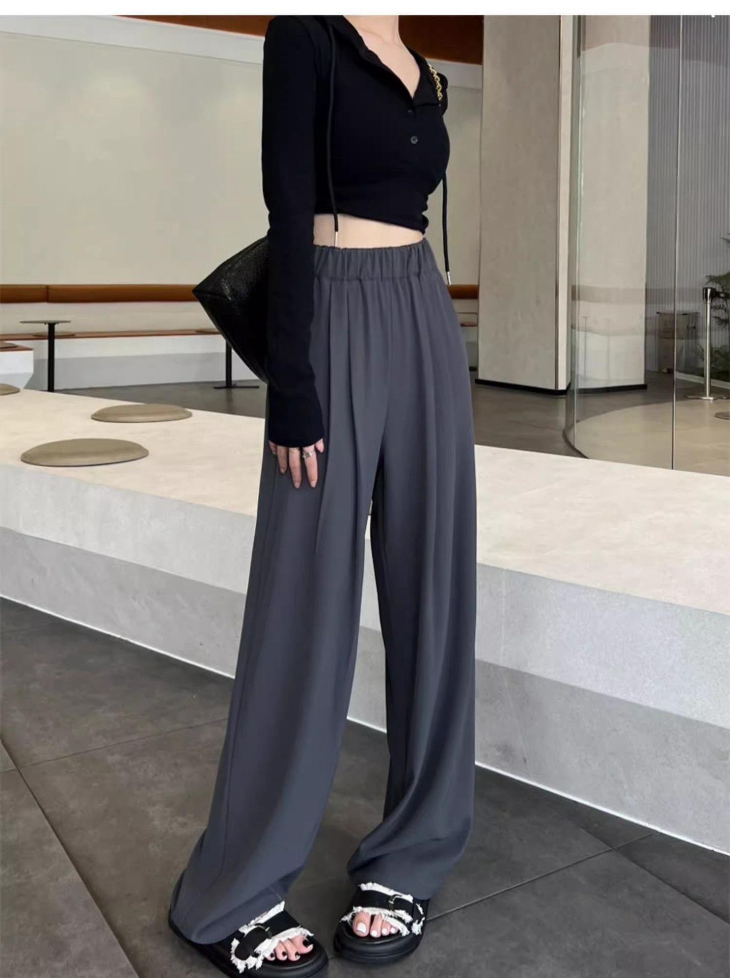 Azul marino Pantalones Estrechos para Mujer Primavera y Otoño 2025 Nuevo Recto Adelgazante Casual Cintura Alta Dosificación Pantalones de Pierna Ancha