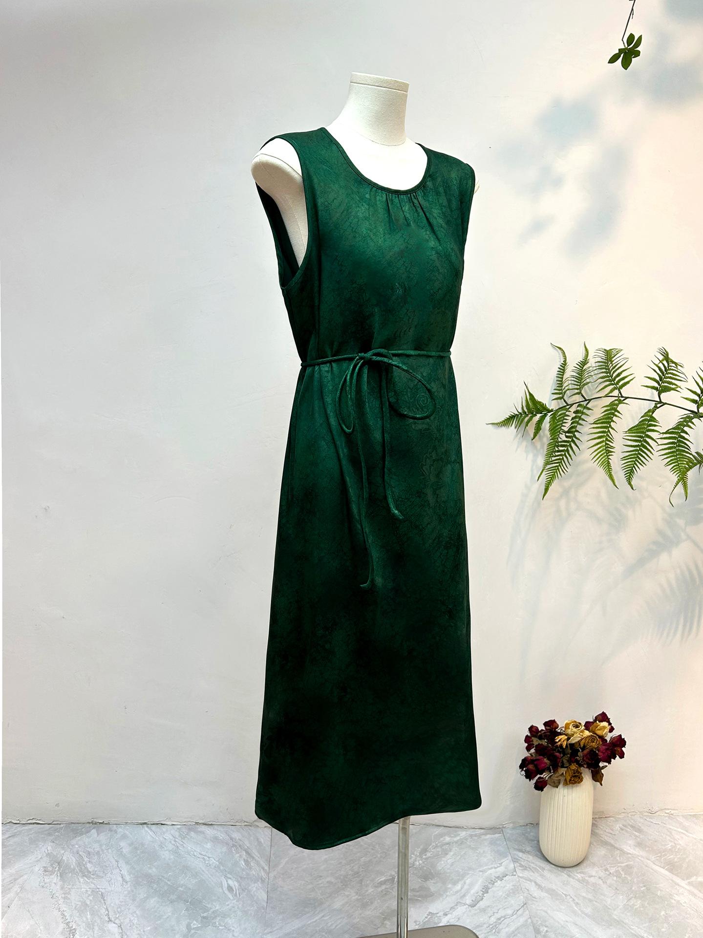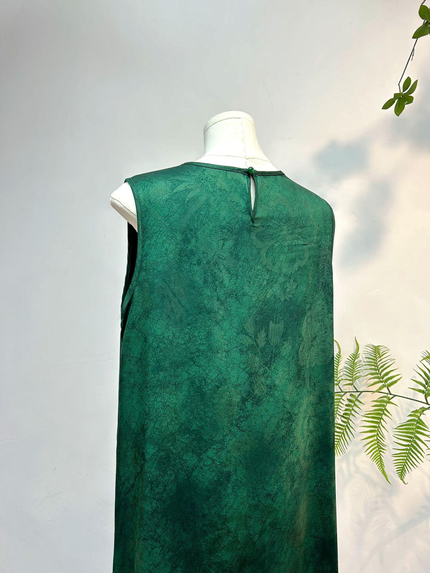 Nuevo Vestido Jacquard Estilo Chino Vestido Jacquard Vintage Vestido Midi Sencillo de Verano para Mujer 2025