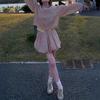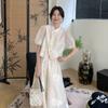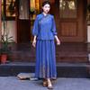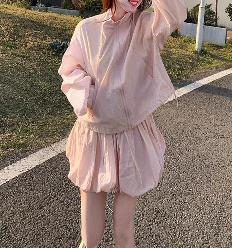 Traje de falda Mujer 2025 Nuevo Verano Top de Lino Ropa de Protección Solar Dos Piezas Falda Capullo de Flor Ropa Rústica Traje Deportivo