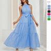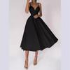 Vestido elegante sin mangas con tirantes cruzados de Amazon para Europa y América, nuevo de verano, cintura alta, línea A, largo midi