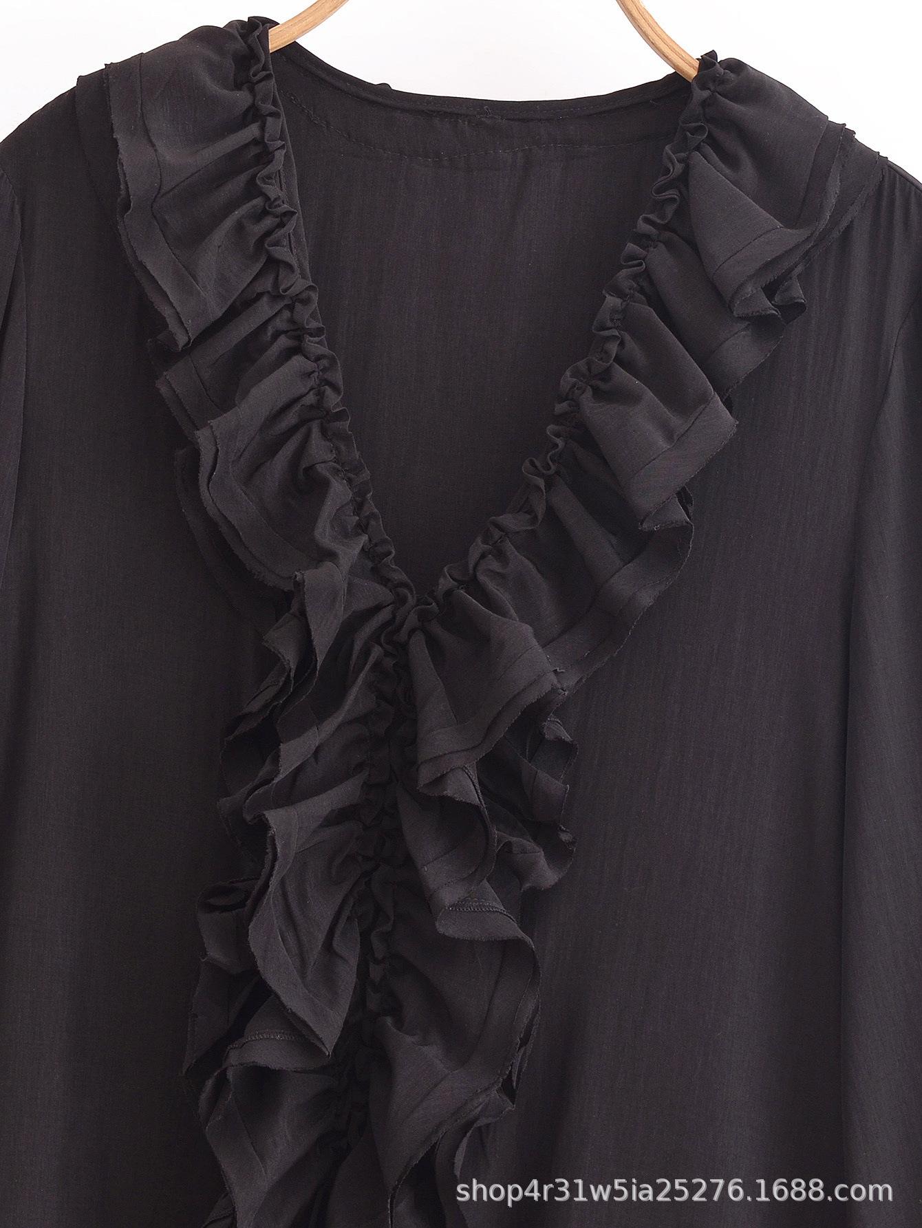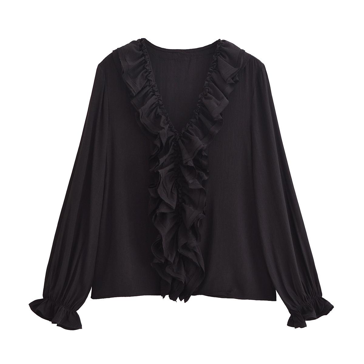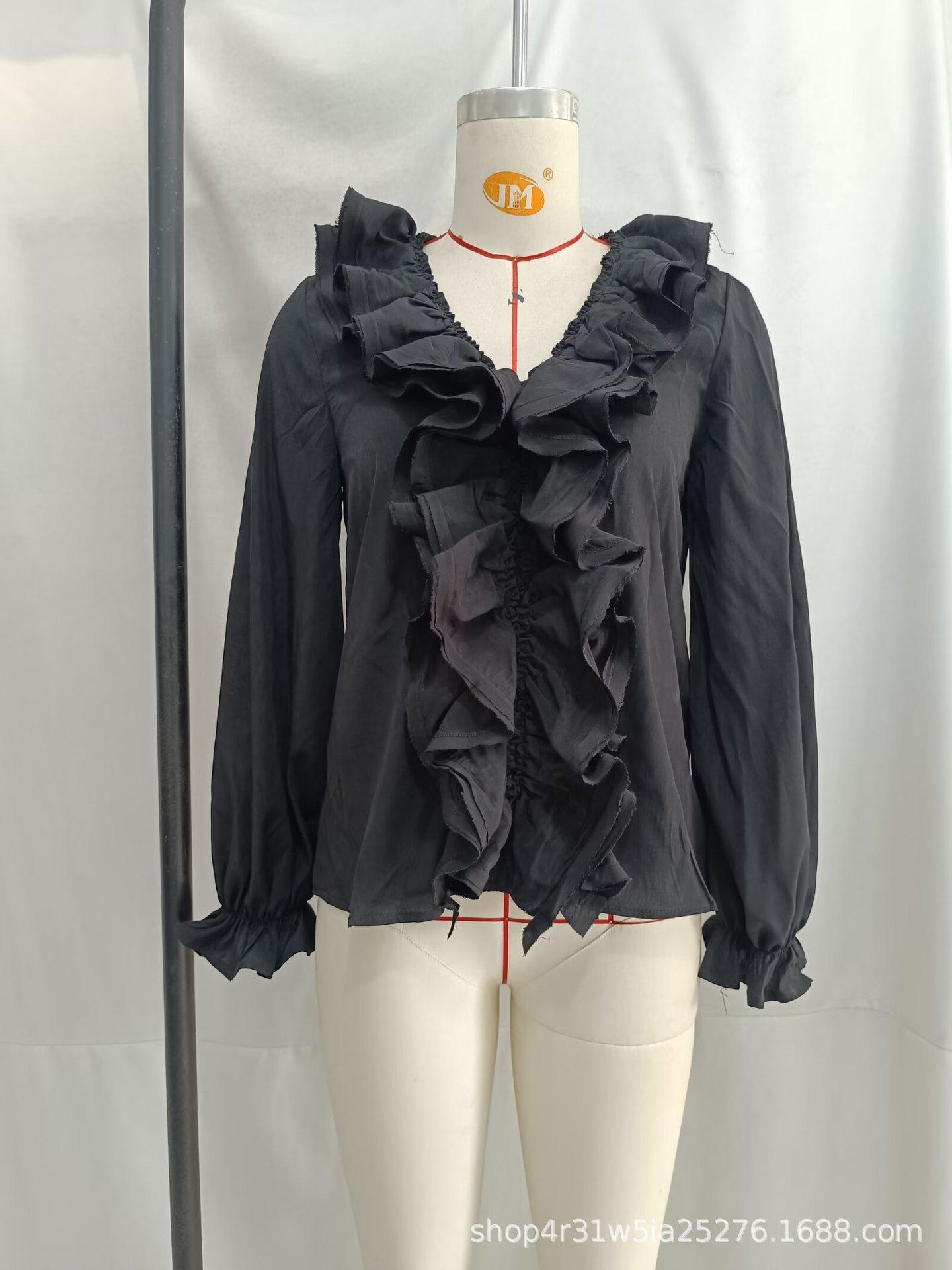 Estilo Europeo y Americano 2025 Primavera Temprana Nuevo Camisa Decorativa Laminada Simple Casual Holgada de Manga Larga con Cuello en V para Mujer