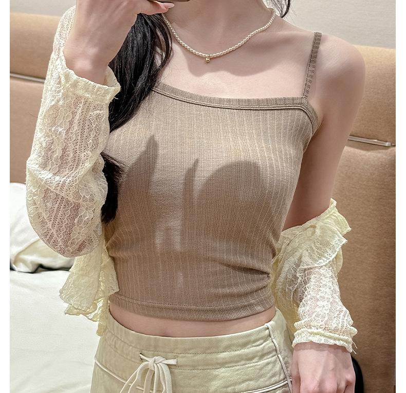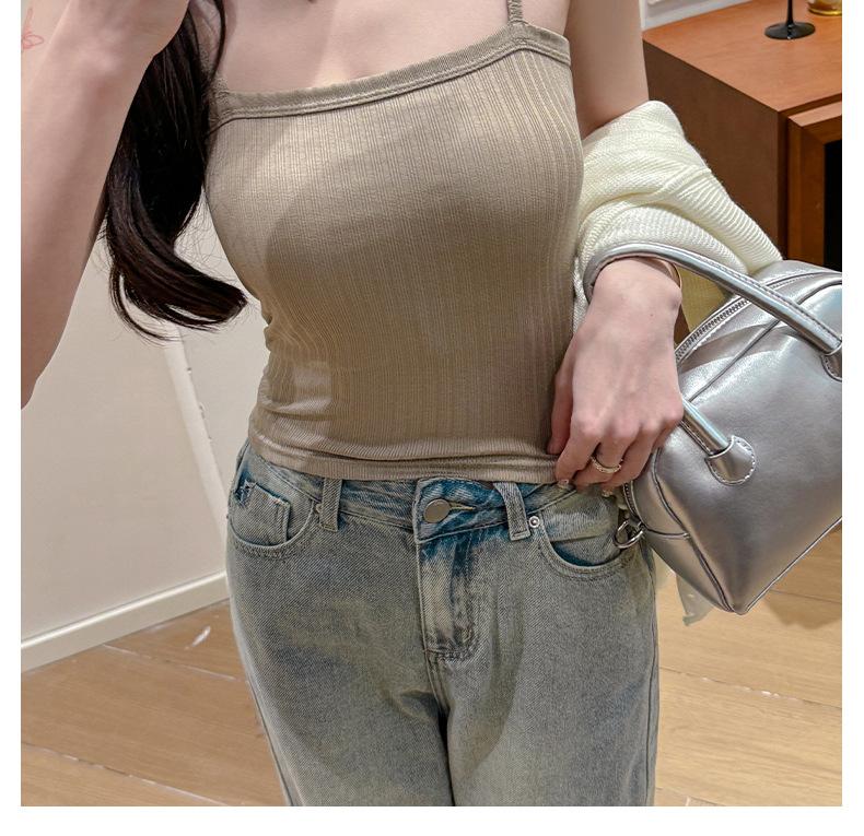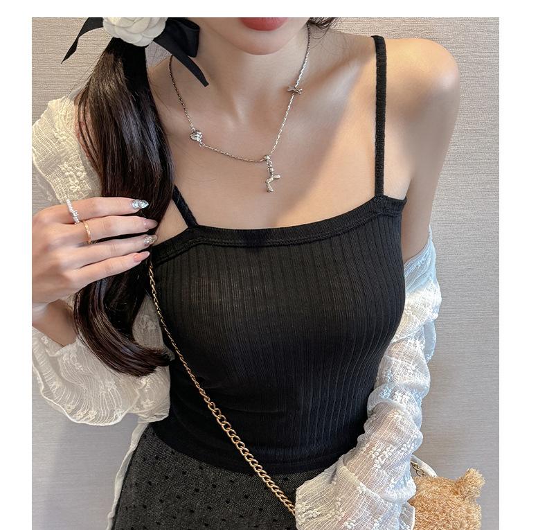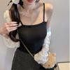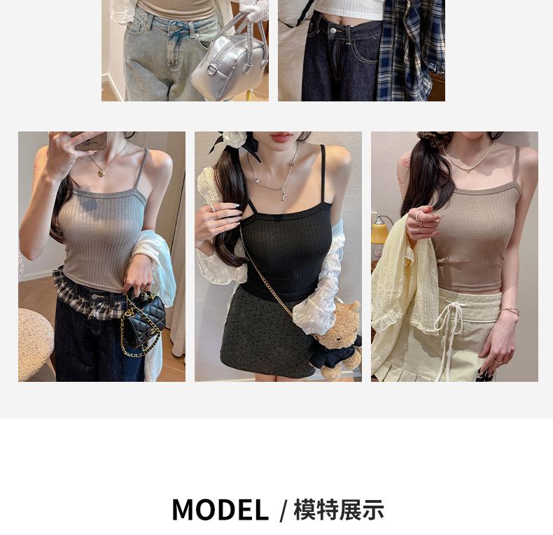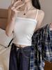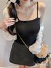 Verano Nuevo Negro Estilo Lujuria Pura Camisola Básica para Mujer con Aspecto Adelgazante y Puede Usarse Afuera Top Corto sin Espalda