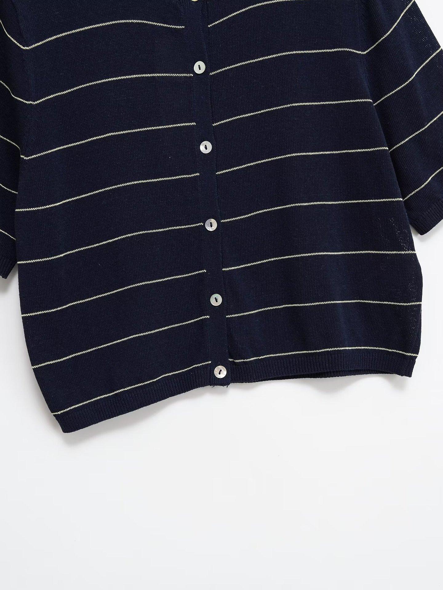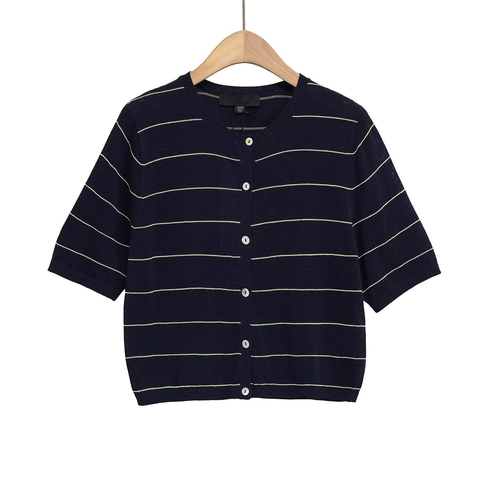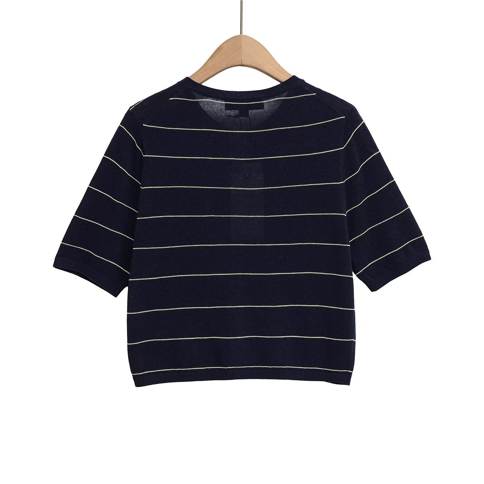 Cárdigan de Punto de Seda Helada a Rayas Popular Europeo y Americano Transfronterizo para Mujer Verano Delgado Hombro Derecho Manga Corta