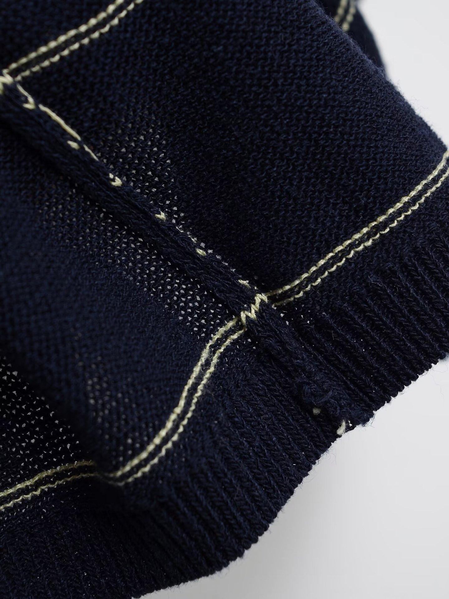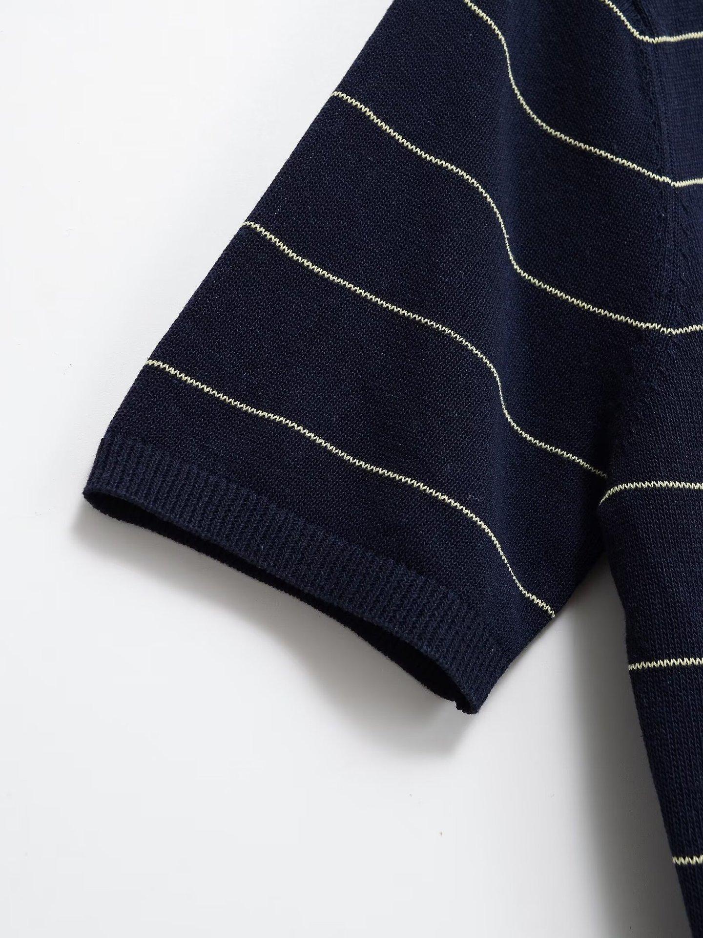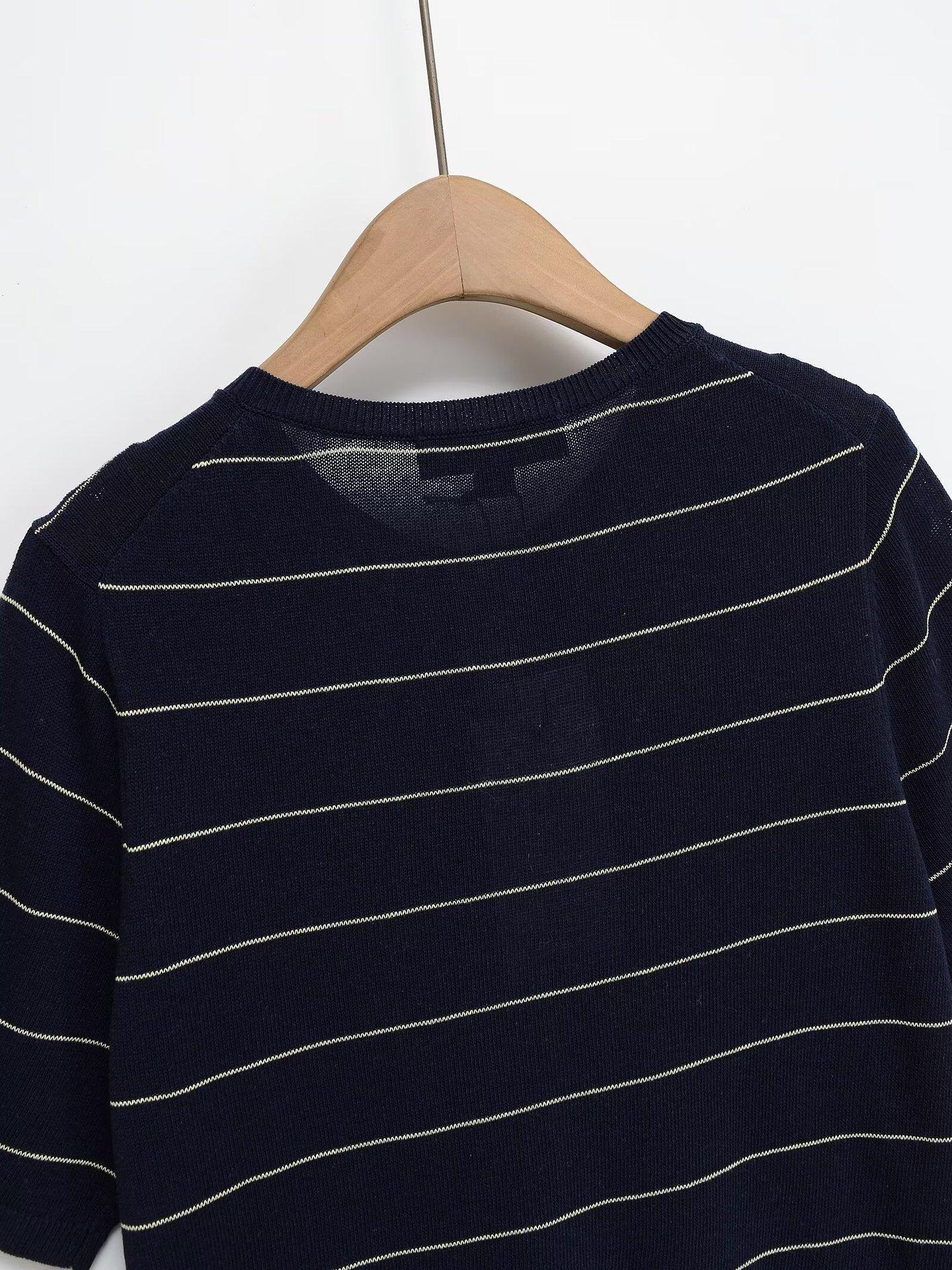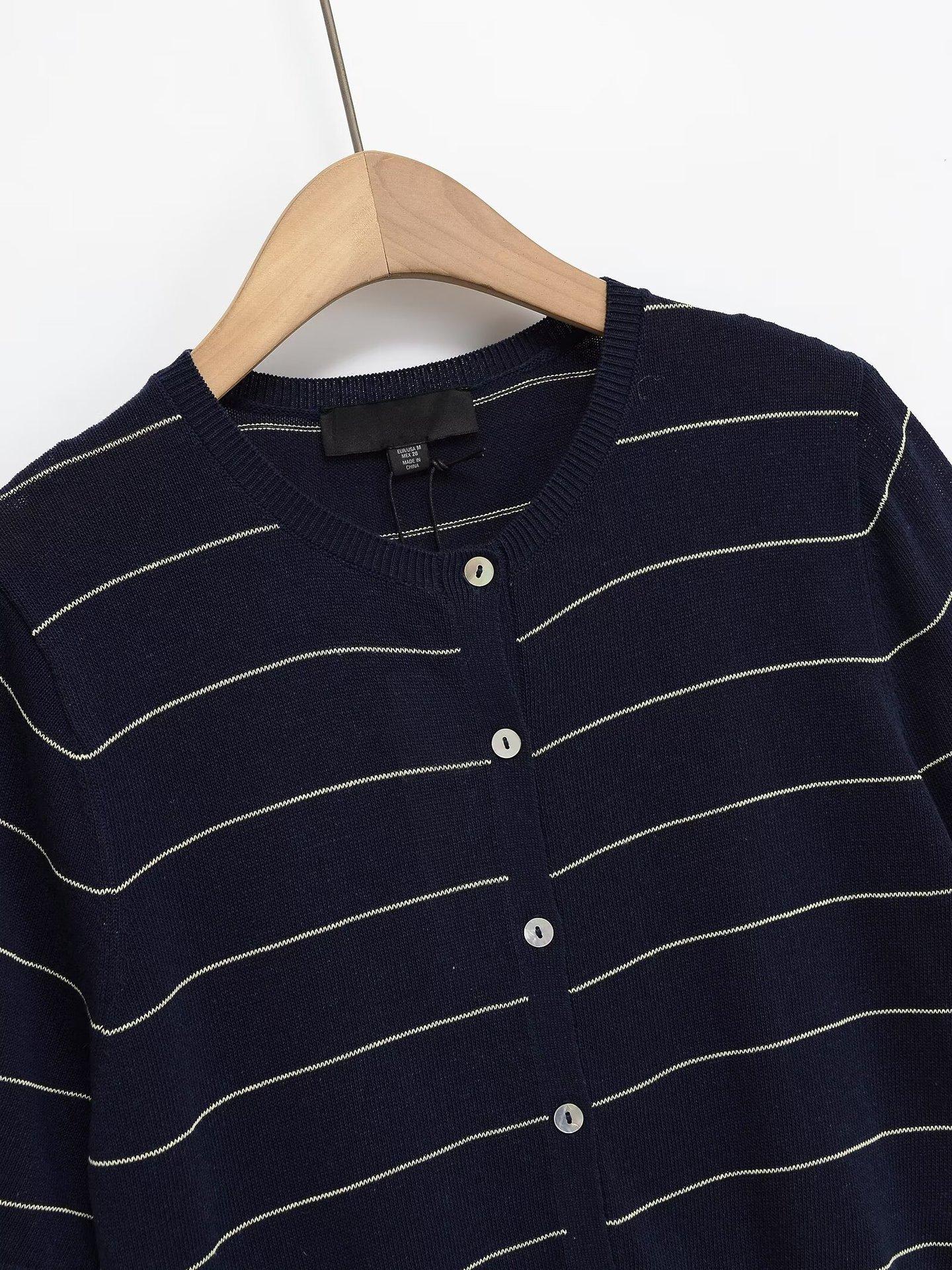 Cárdigan de Punto de Seda Helada a Rayas Popular Europeo y Americano Transfronterizo para Mujer Verano Delgado Hombro Derecho Manga Corta