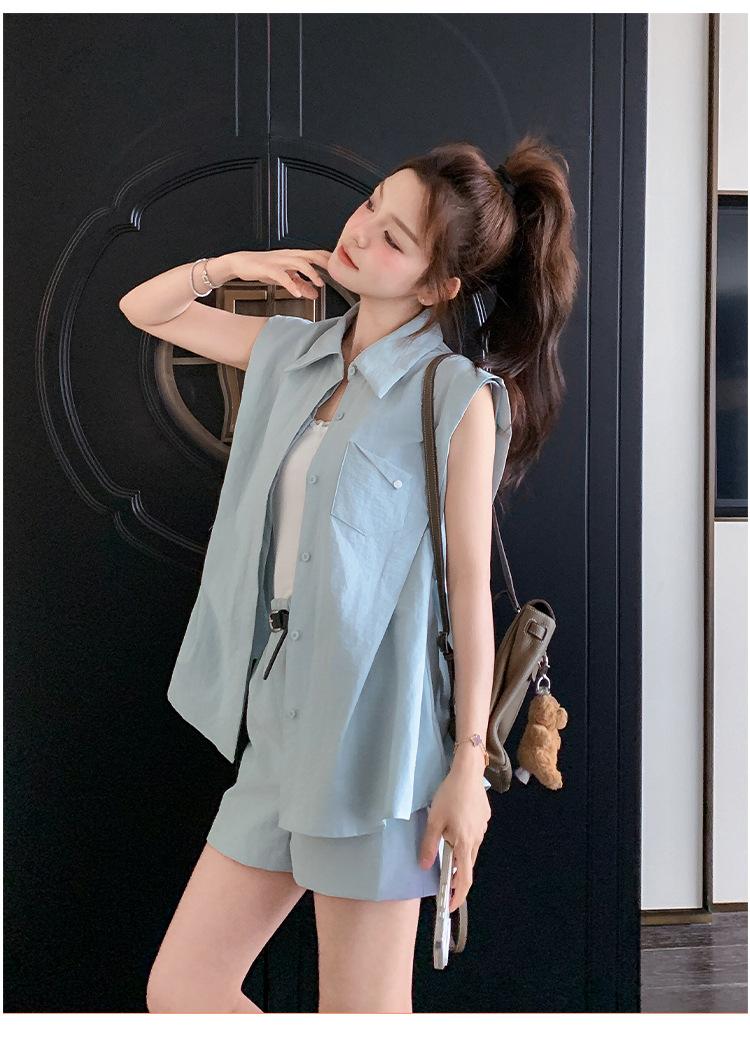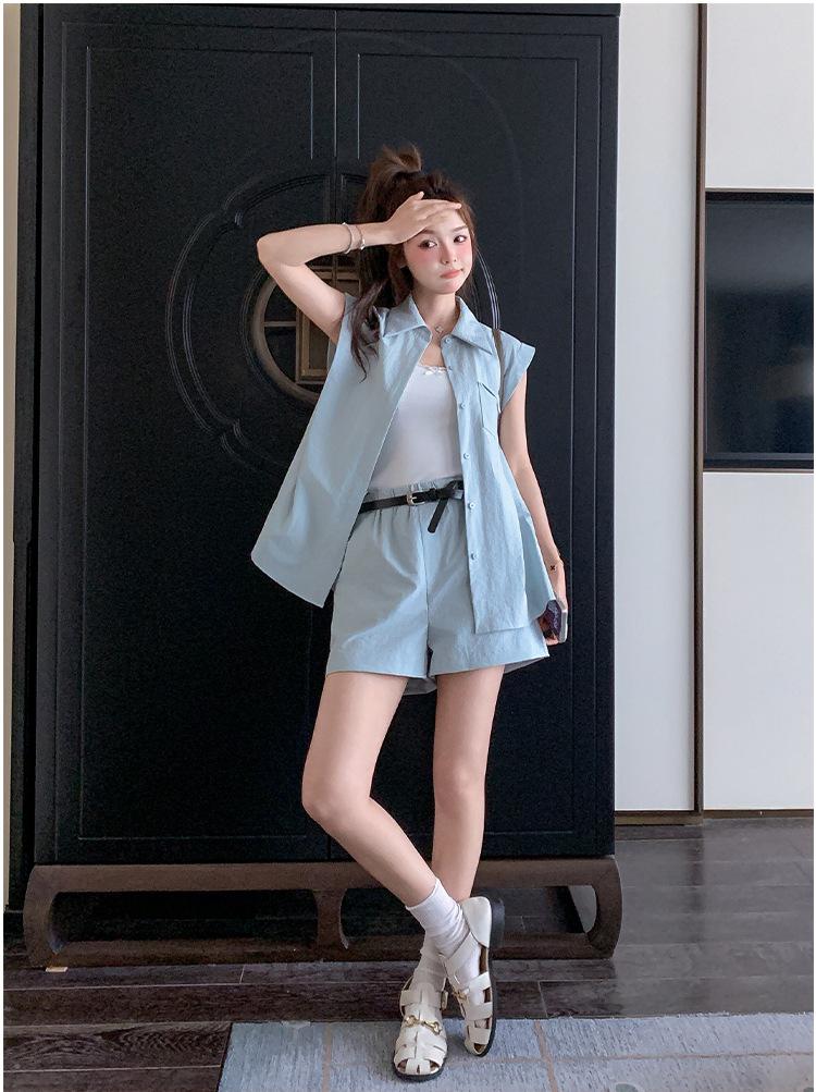 Traje de Moda Elegante 2025 para Mujer Chaleco Shorts Look Adelgazante Reductor de Edad Moda para Dama Conjunto de Dos Piezas para Mujer