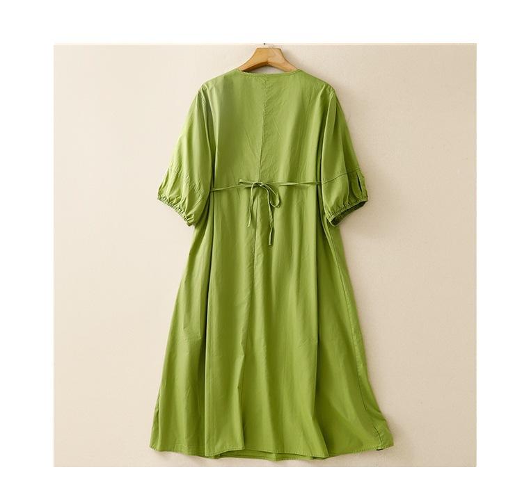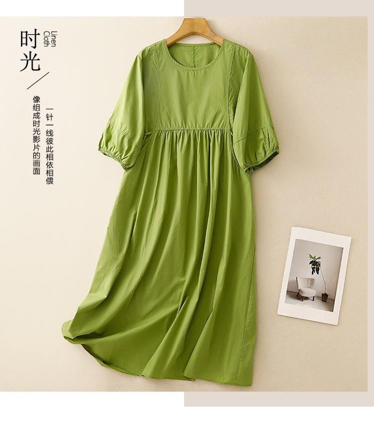 Verano 2025 Nuevo Algodón Lino Suelto Casual Falda A-Línea para Mujer Color Sólido Literario Talla Grande Largo Medio Falda de Muñeca