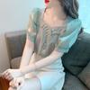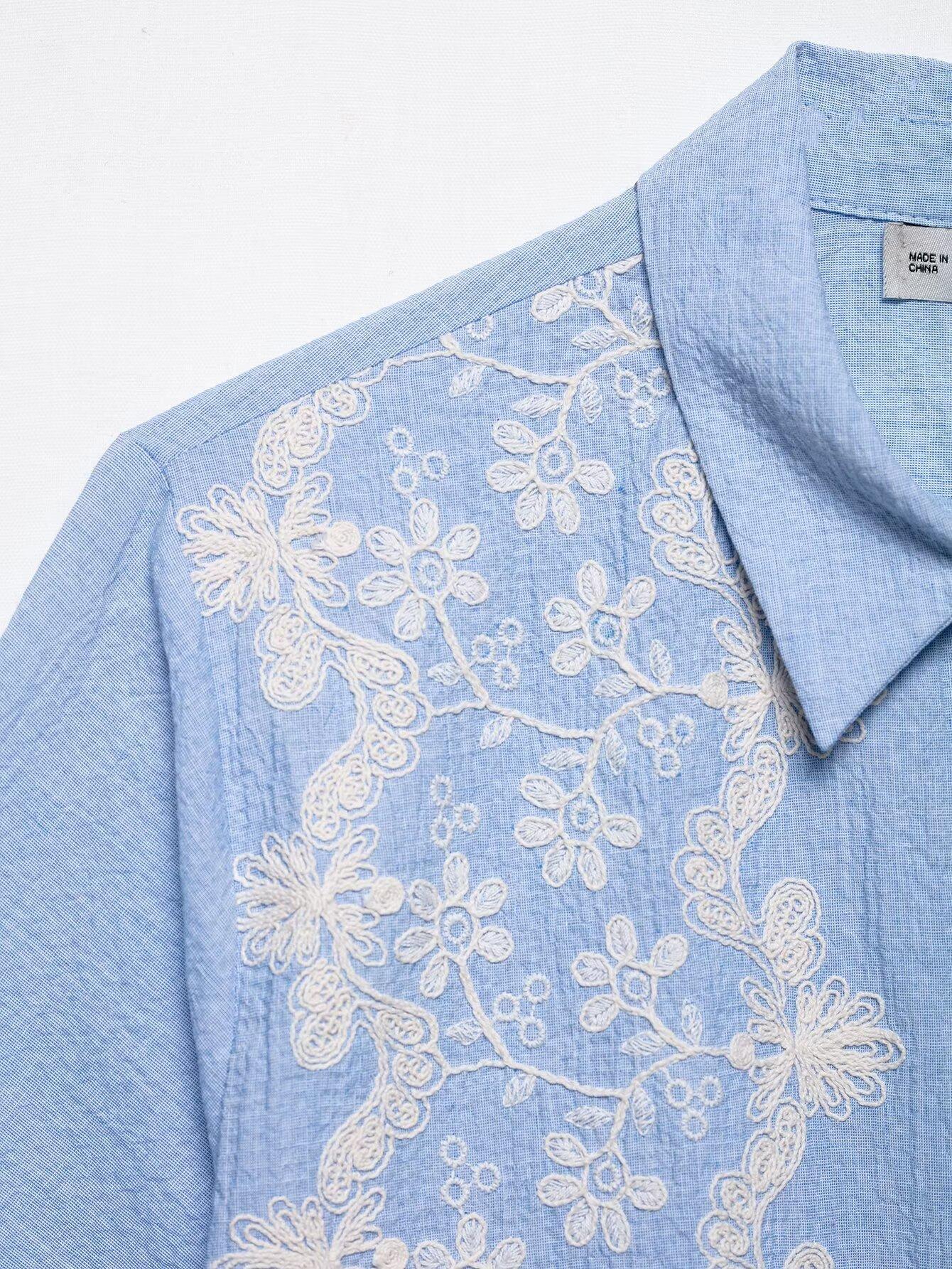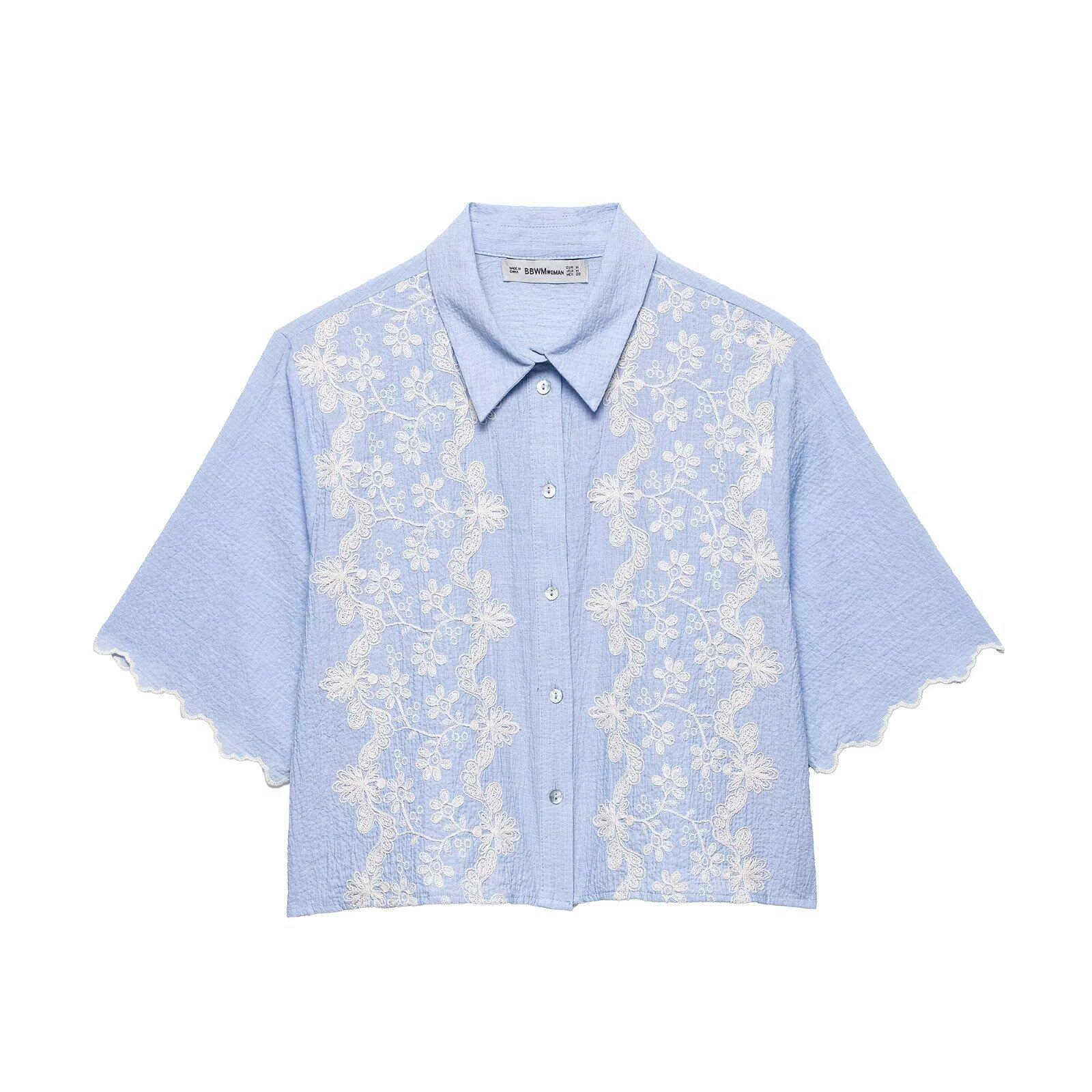 Verano 2025 nuevo estilo europeo y americano para mujer bordado moda manga corta solapa camisa corta 3564 074 403