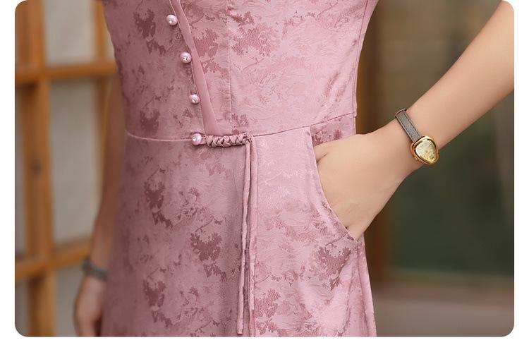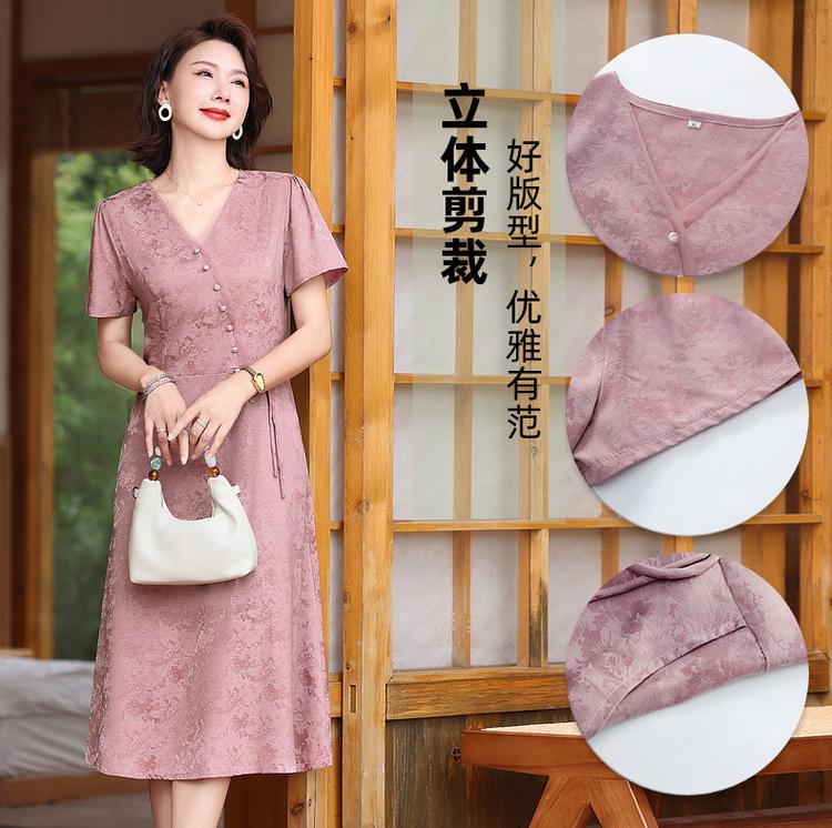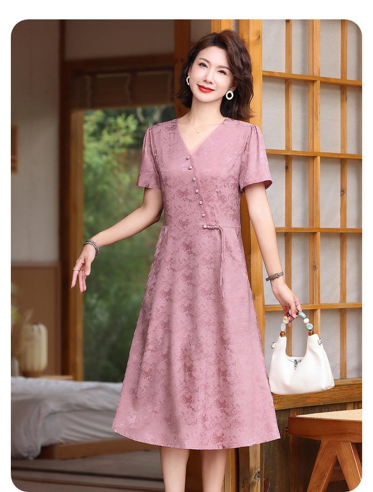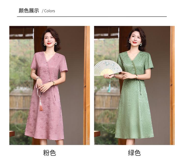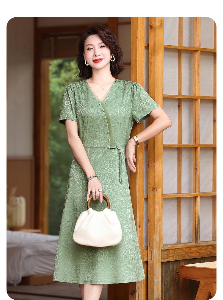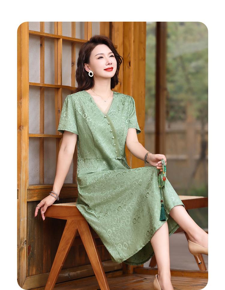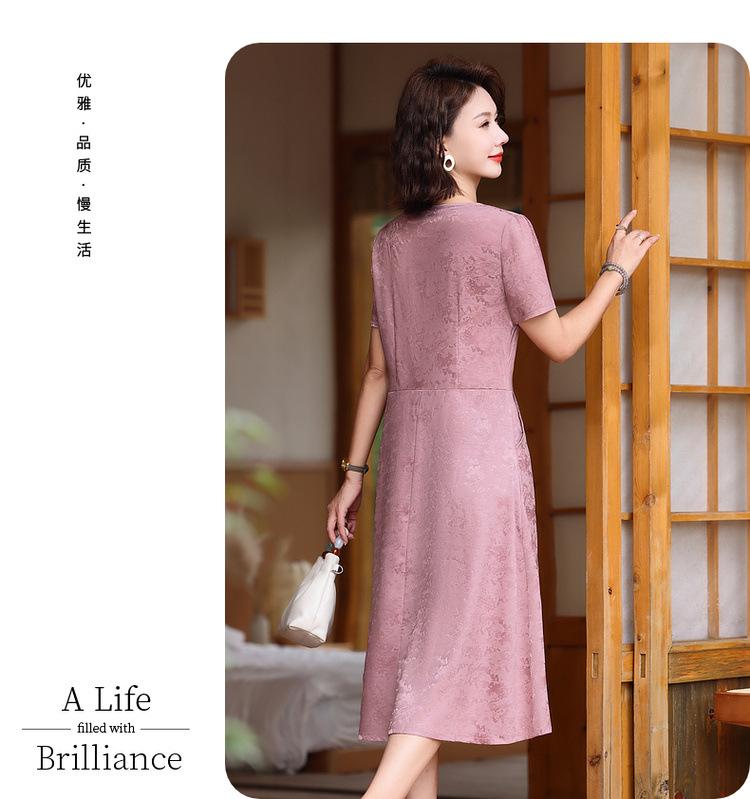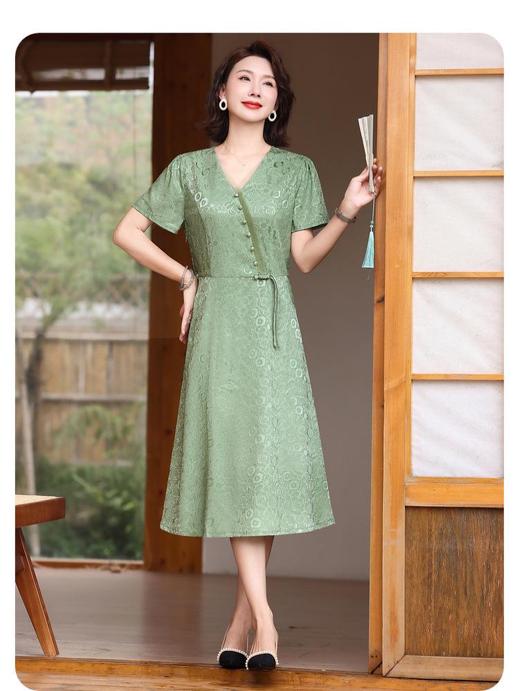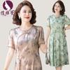 Vestido de Verano para Mamá por Encima de la Rodilla, Dignificado y Elegante, Nuevo Estilo para Mujeres de Mediana Edad y Mayores, Falda Cheongsam Mejorada, Día de la Madre