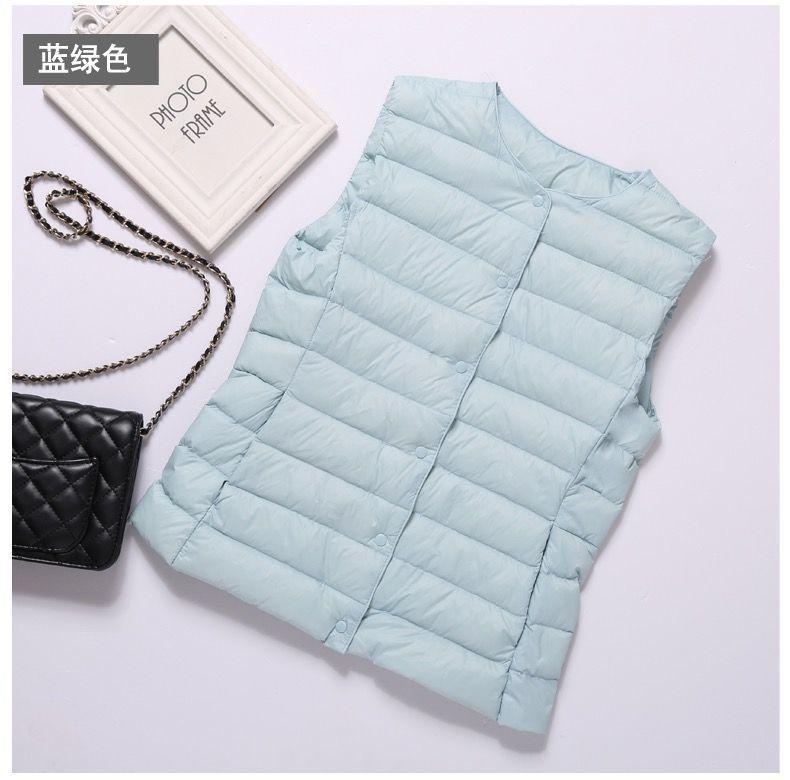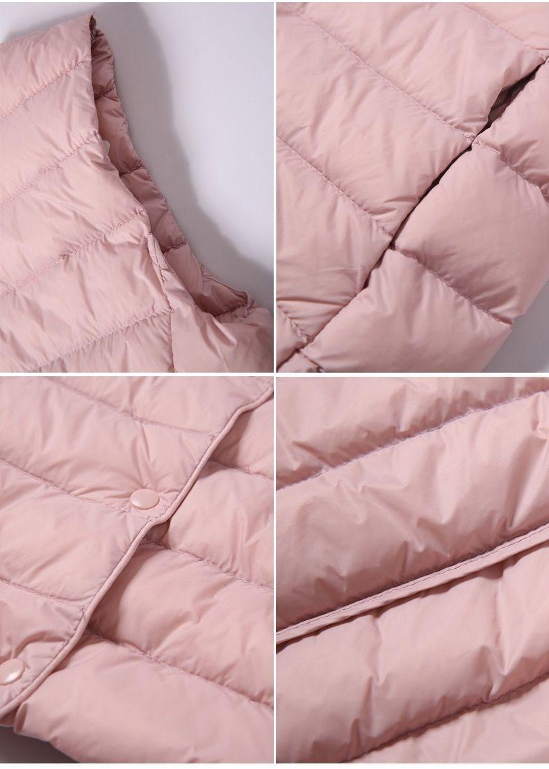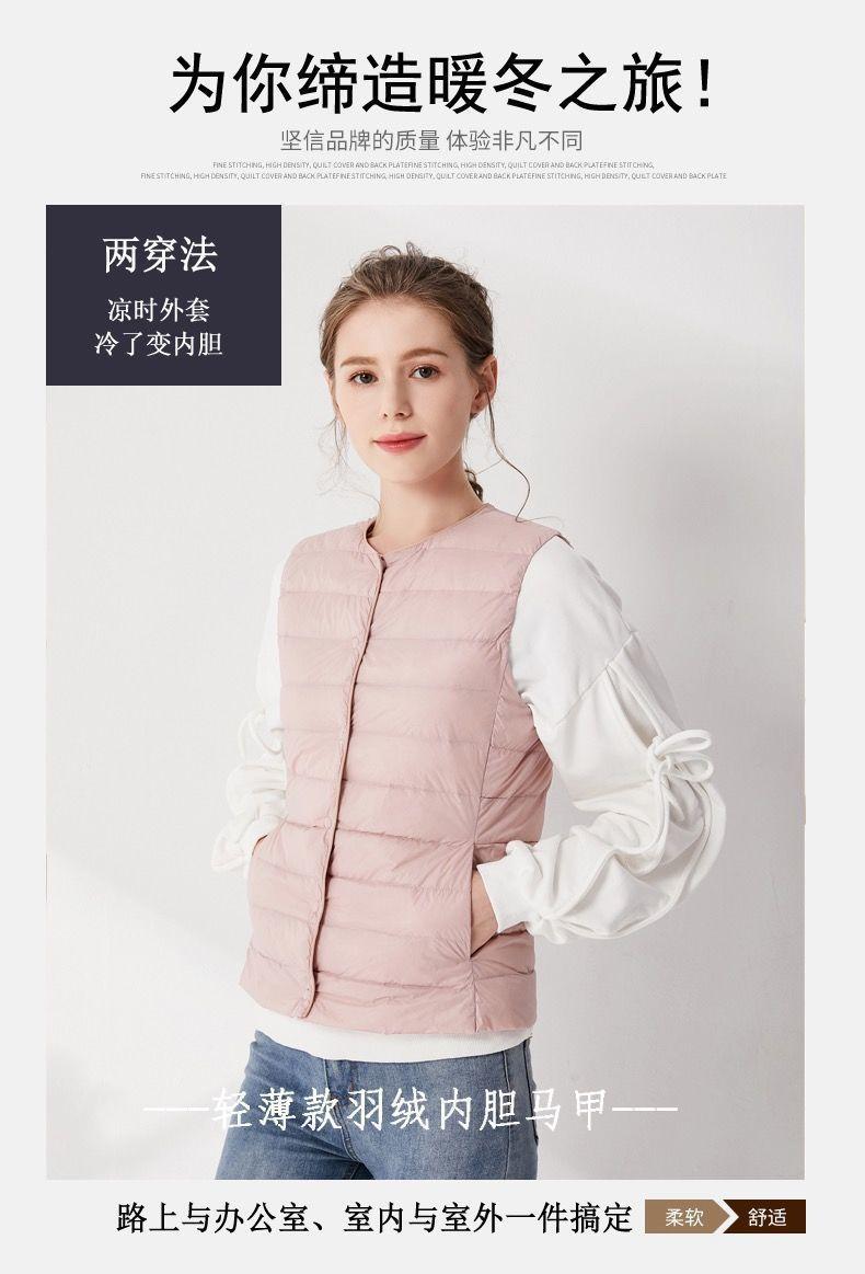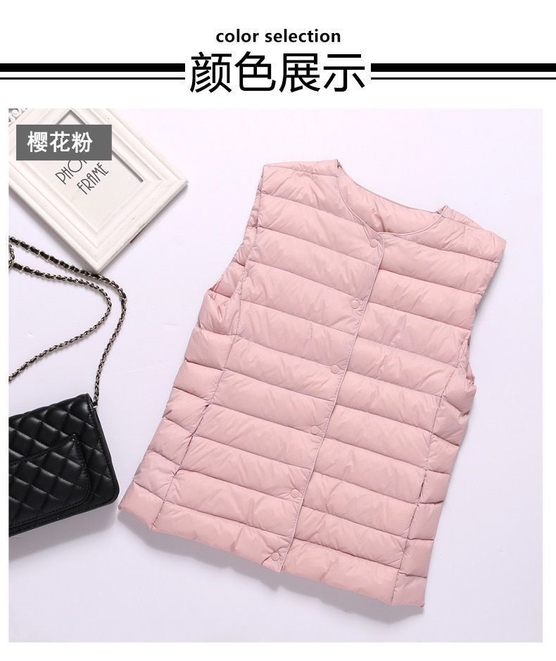 90% Plumón de Pato Blanco Chaqueta de Plumón Ligera para Mujer Cuello Redondo Corta sin Cuello Otoño e Invierno Nueva Talla Grande Forro Dos Usos Chaleco Chaqueta