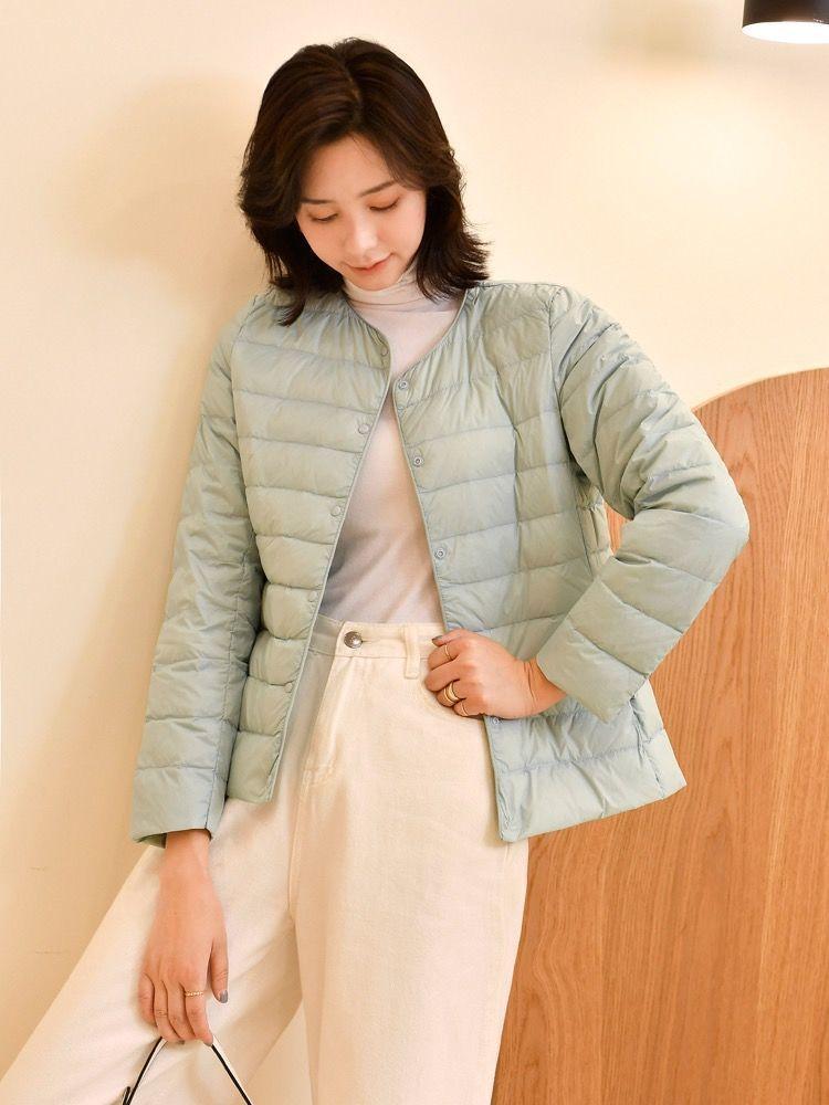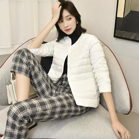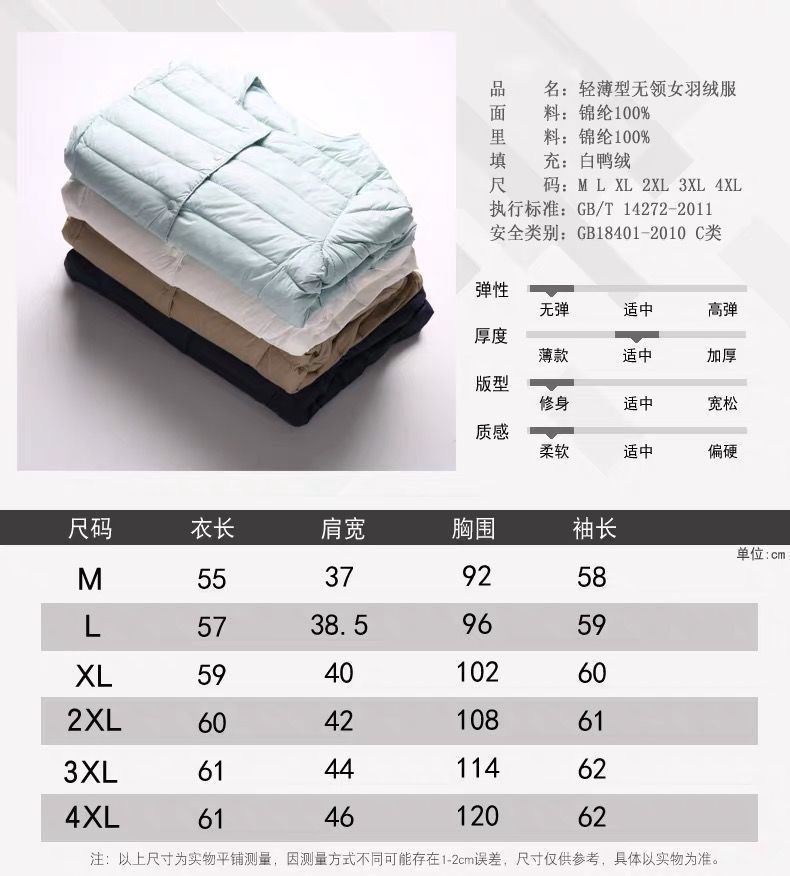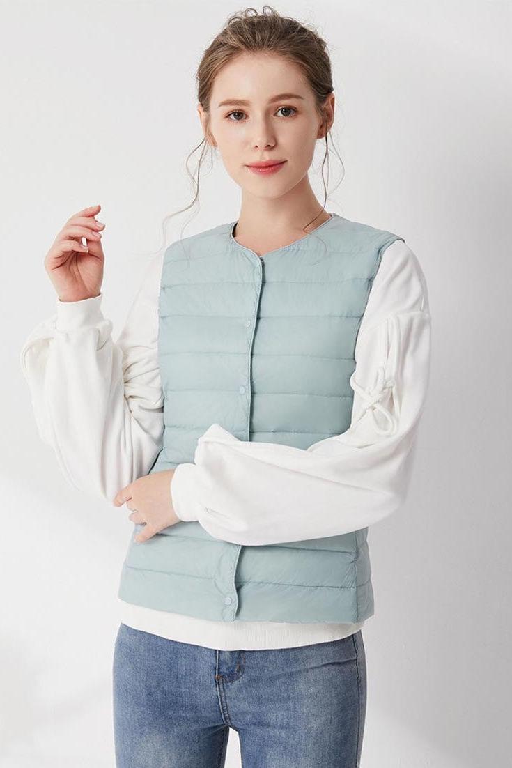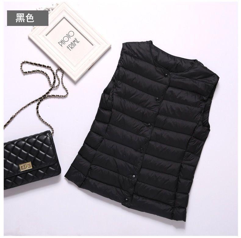 90% Plumón de Pato Blanco Chaqueta de Plumón Ligera para Mujer Cuello Redondo Corta sin Cuello Otoño e Invierno Nueva Talla Grande Forro Dos Usos Chaleco Chaqueta