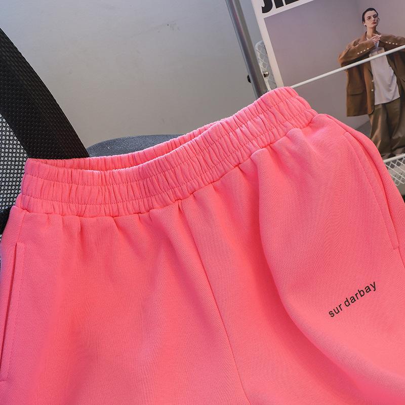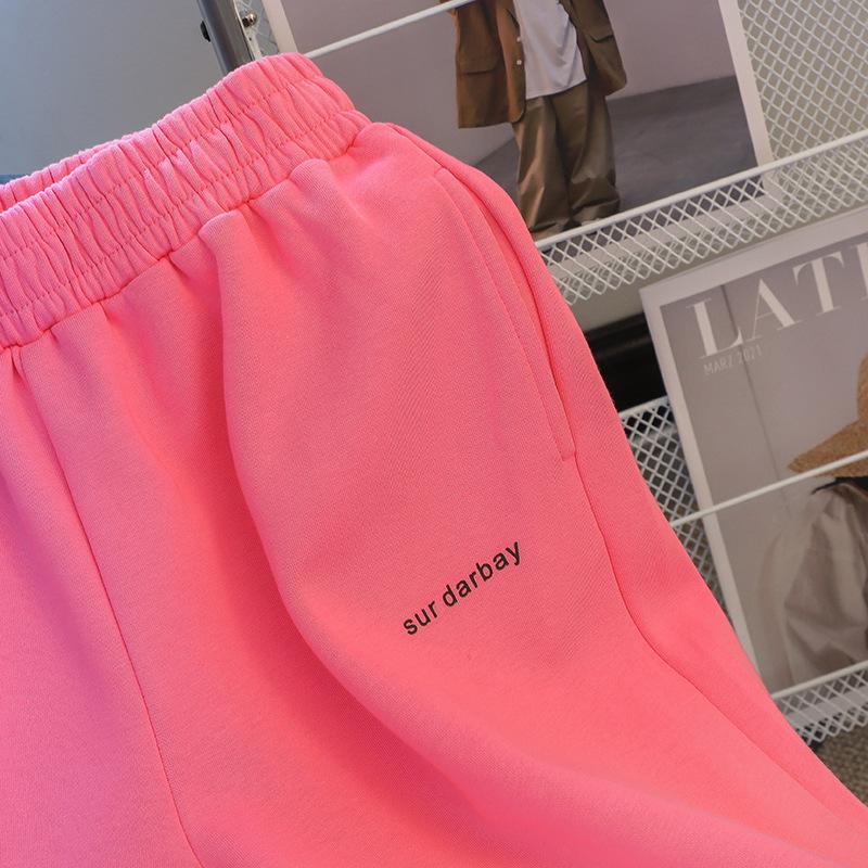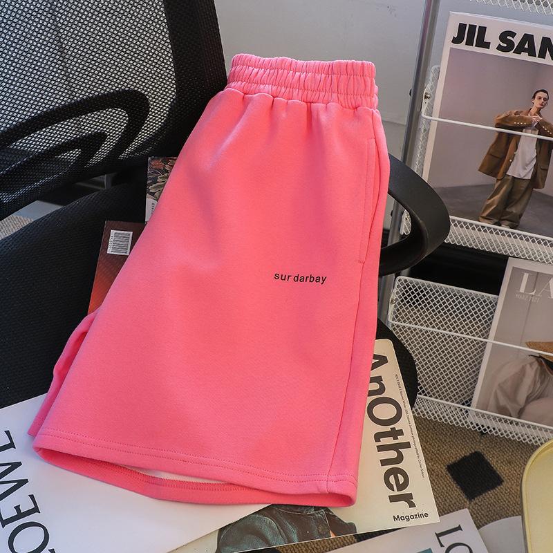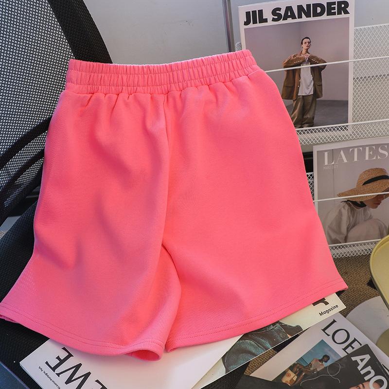 Pantalones rosas de moda de verano para mujer, shorts holgados de pierna ancha hasta la rodilla, shorts deportivos adelgazantes de cintura alta, pantalones de sudadera versátiles