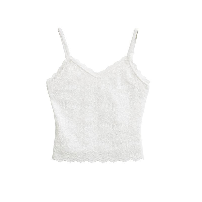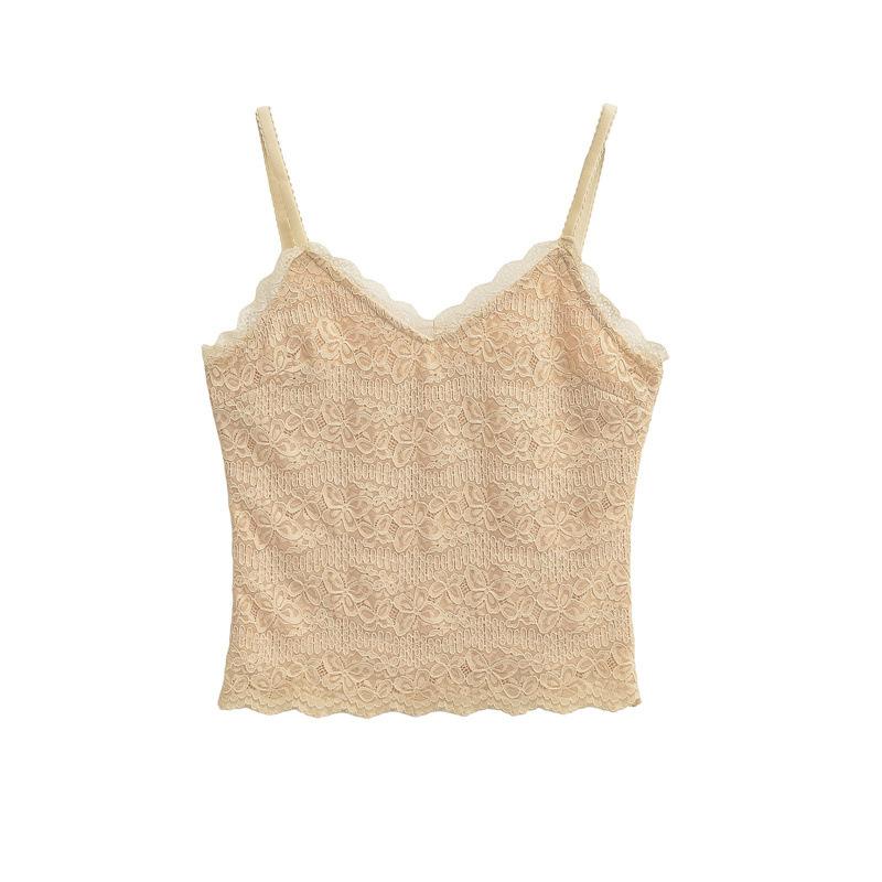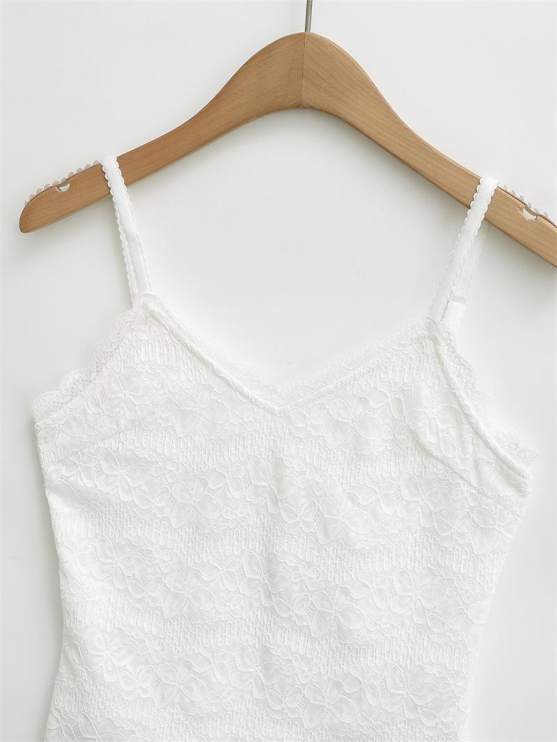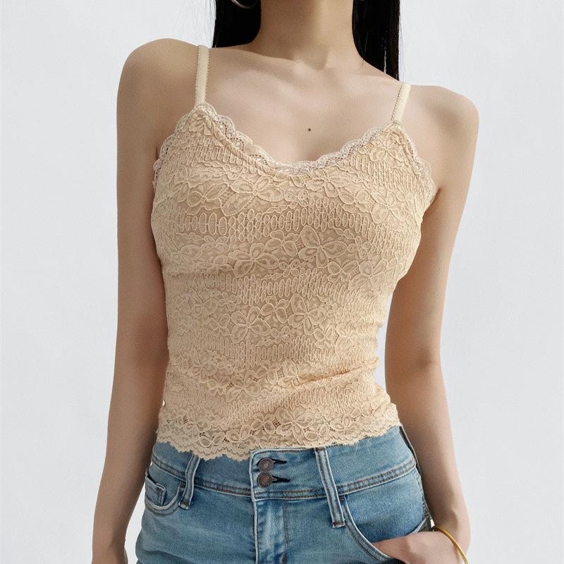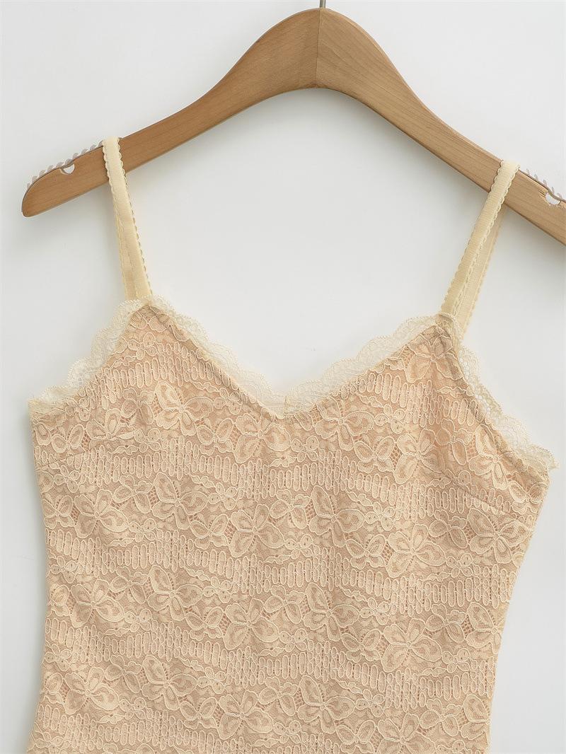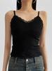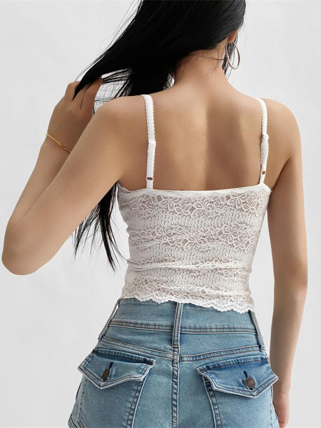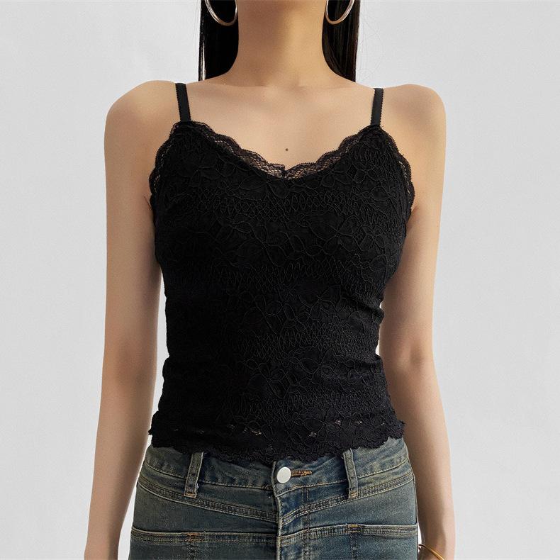Estilo Lujuria Pura Sexy Camisola de Encaje con Cuello en V Verano Nuevo Delgado Corto Sexy Top de Fondo para Mujer