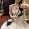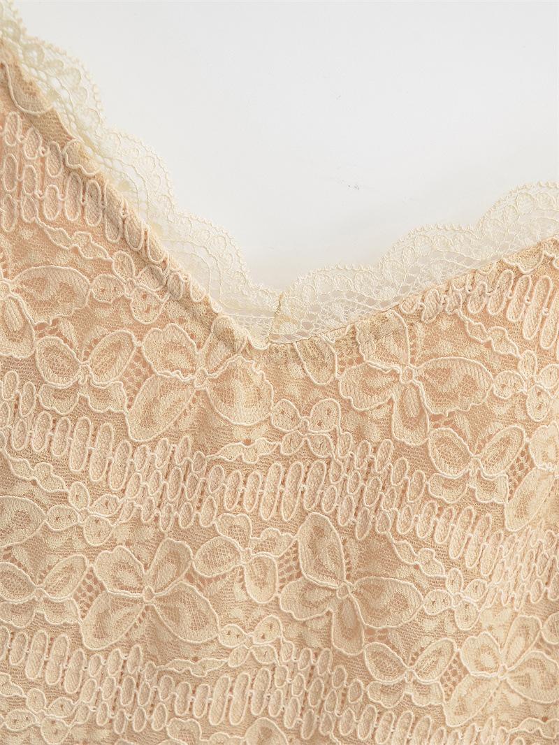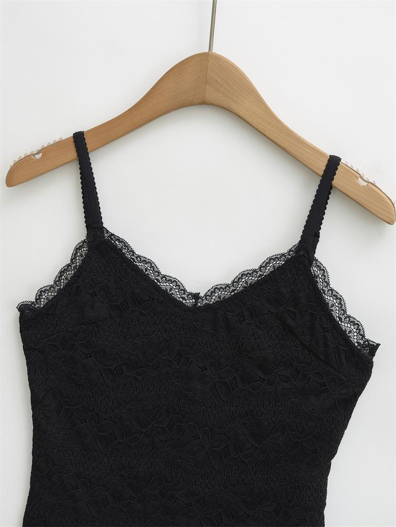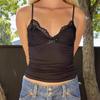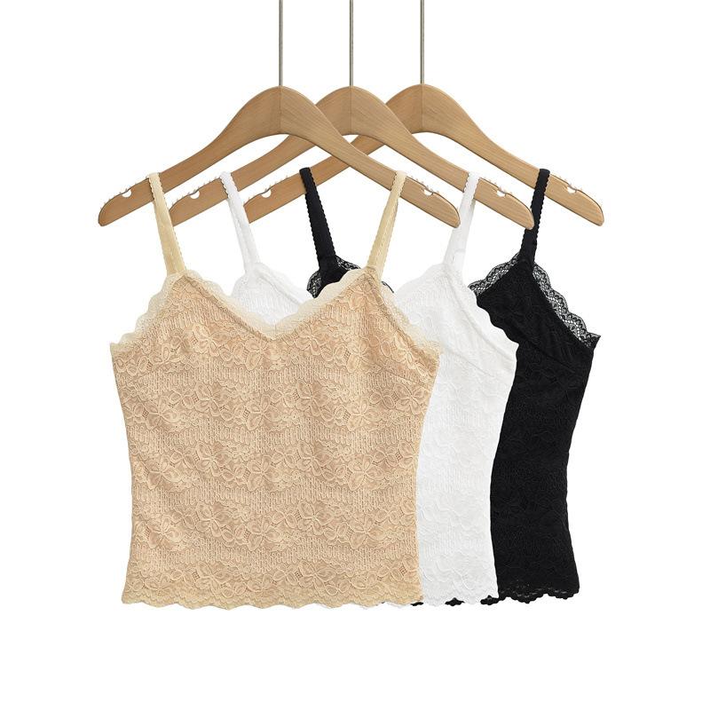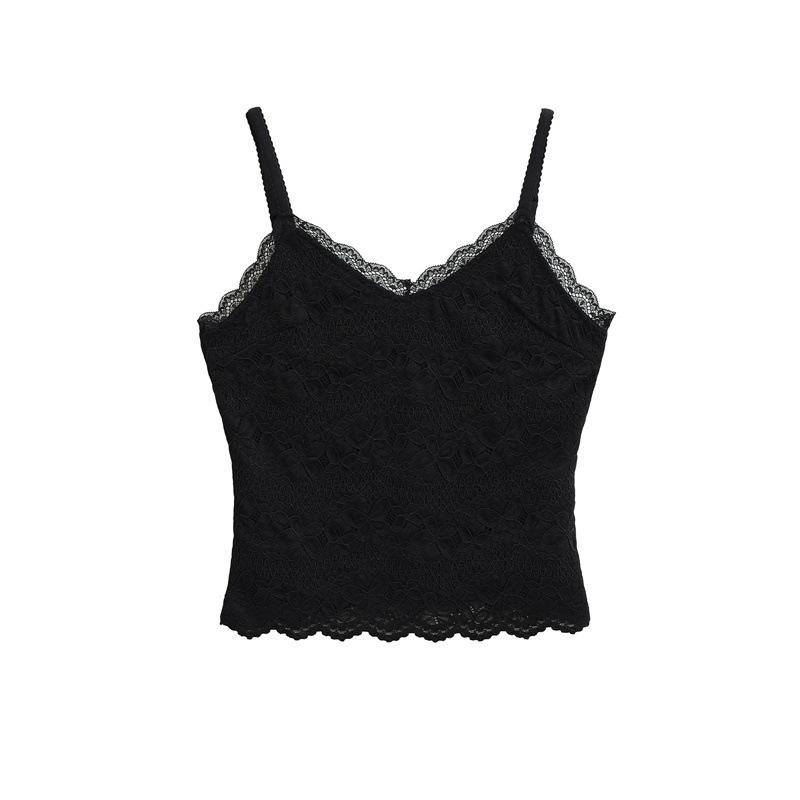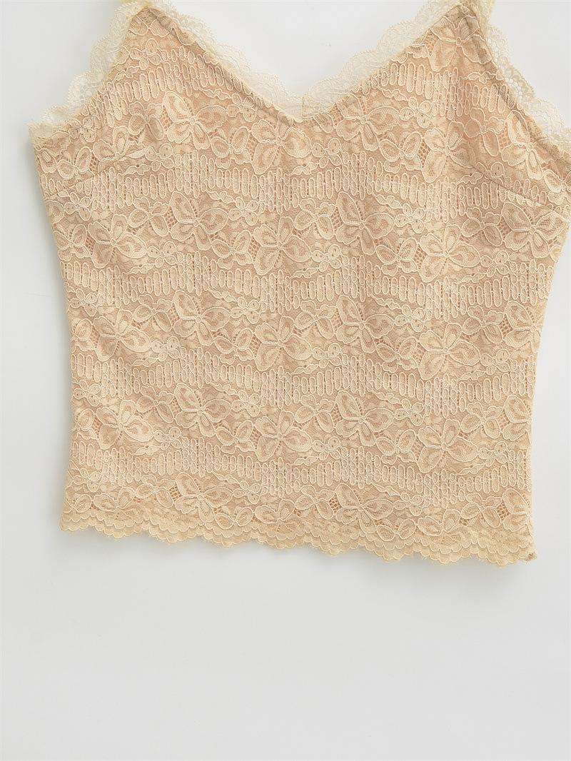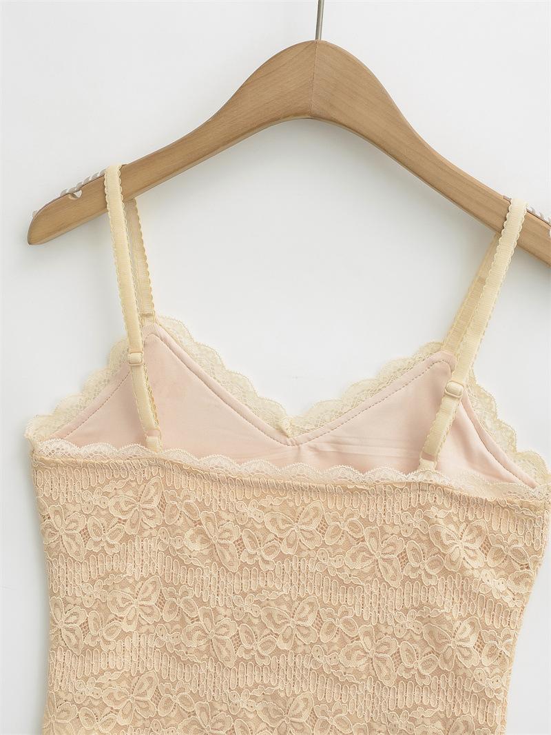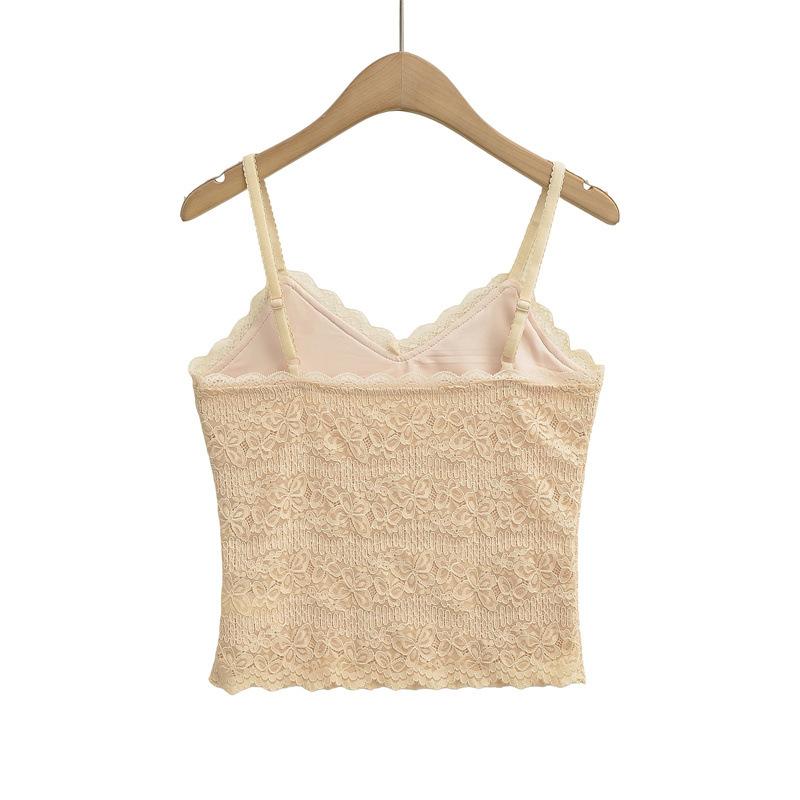 Estilo Lujuria Pura Sexy Camisola de Encaje con Cuello en V Verano Nuevo Delgado Corto Sexy Top de Fondo para Mujer