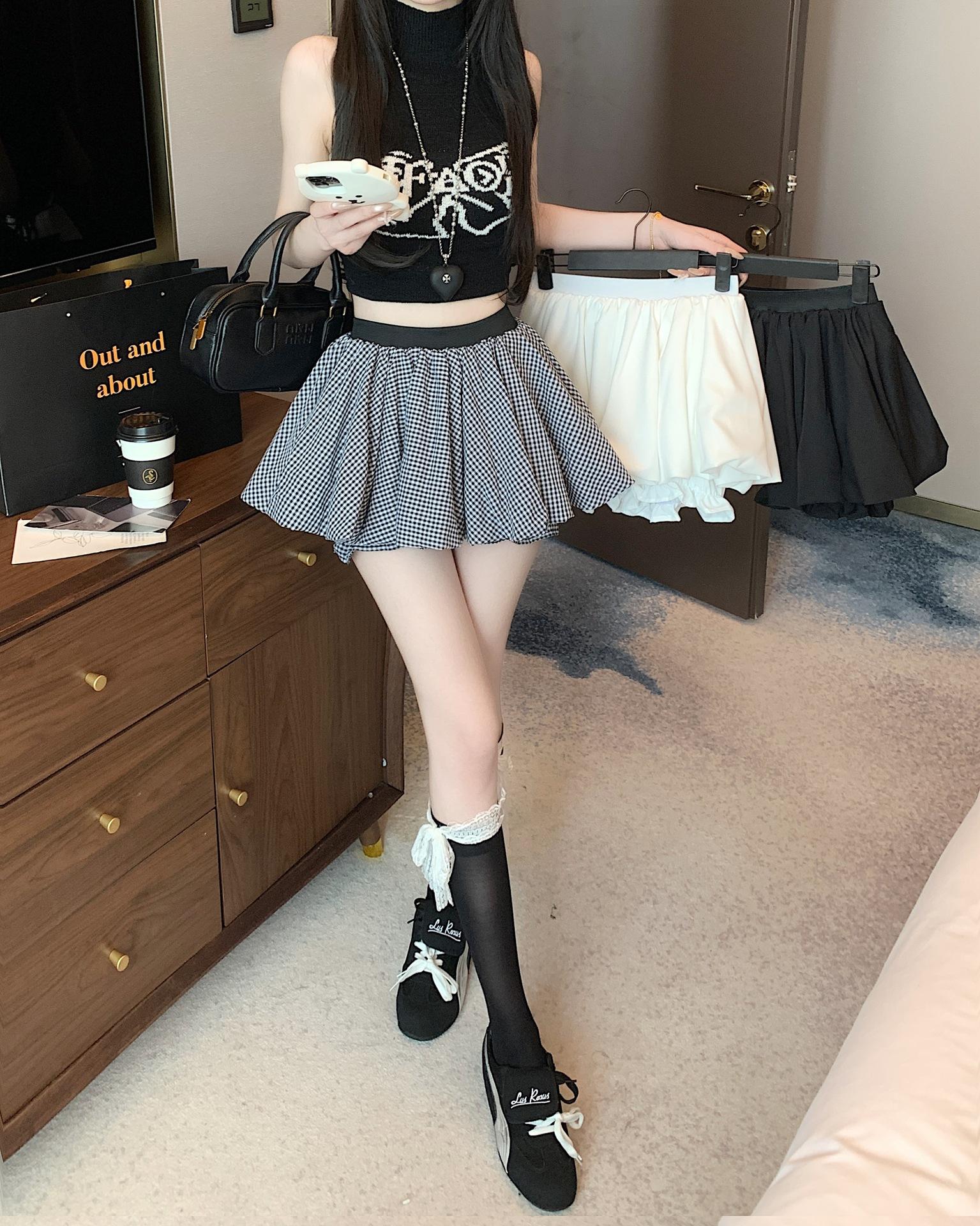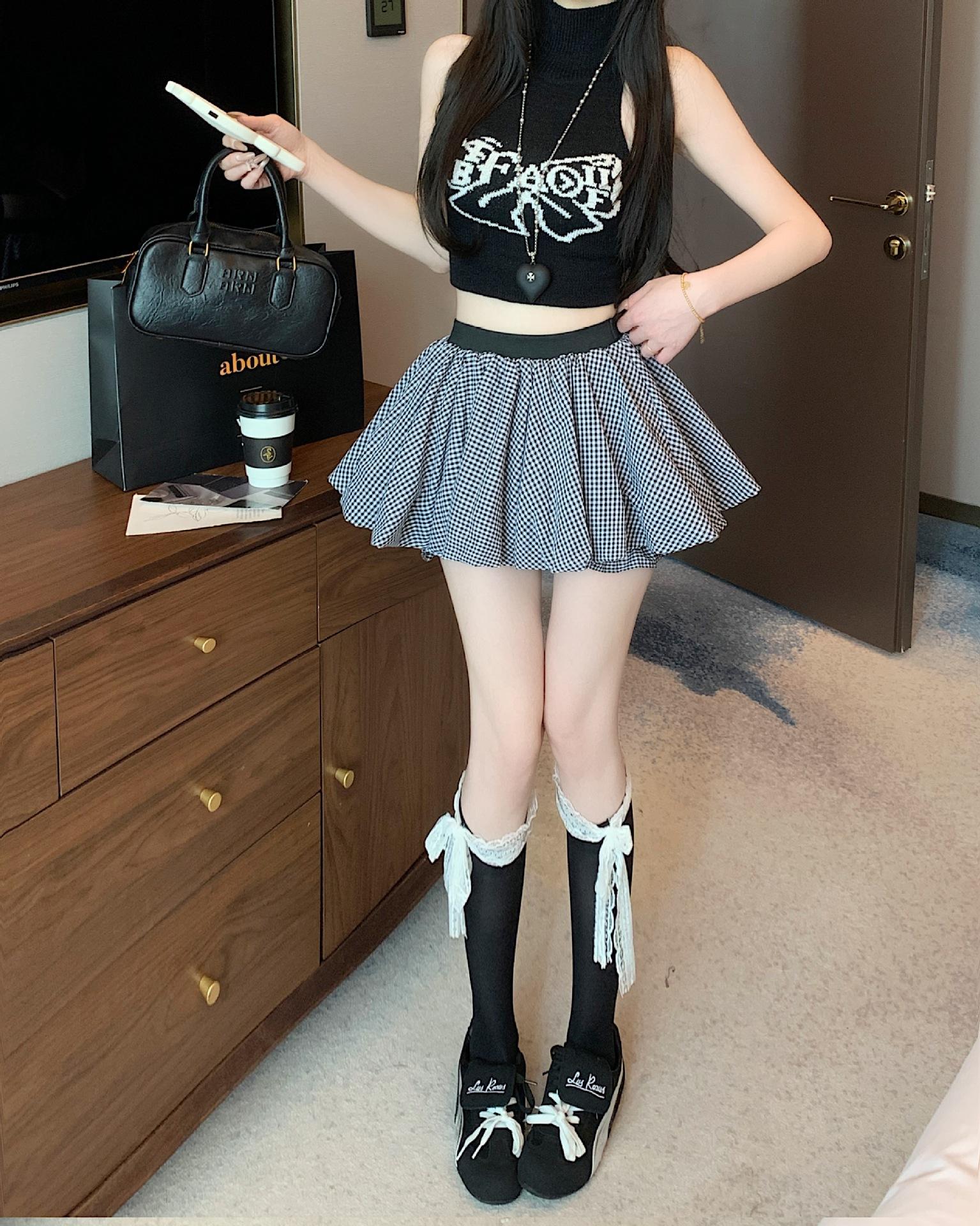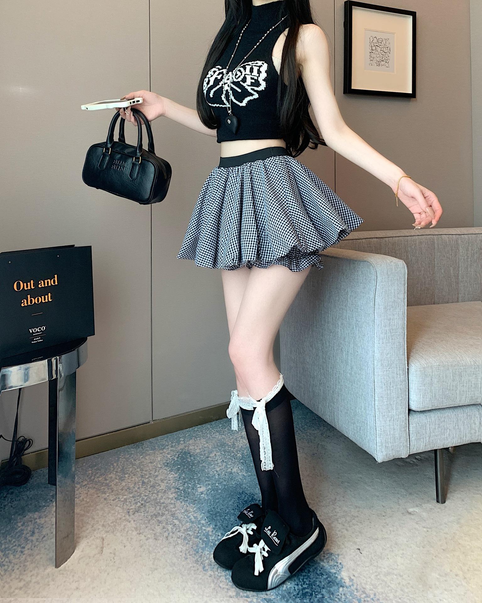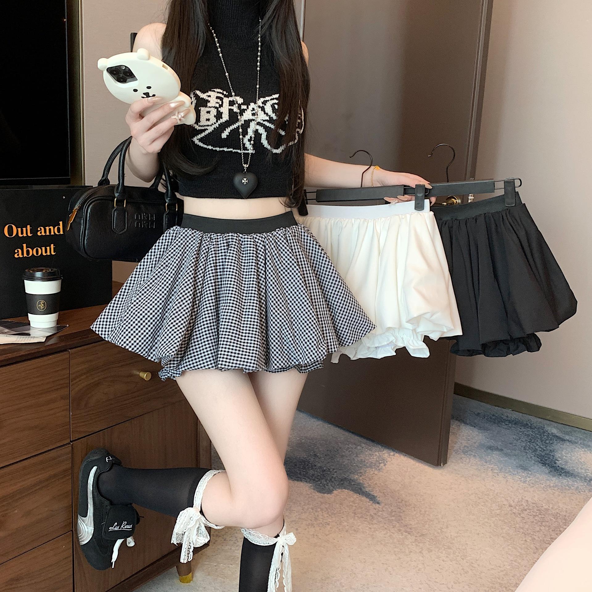 Minifalda Plaid Puff para Mujer, Nuevo Estilo de Verano, Falda Versátil A-Line Entallada de Cintura Alta Petite para Chica Hot