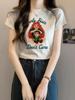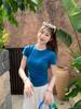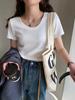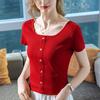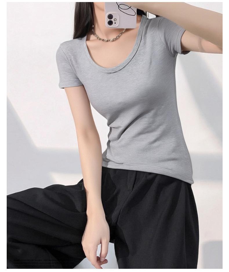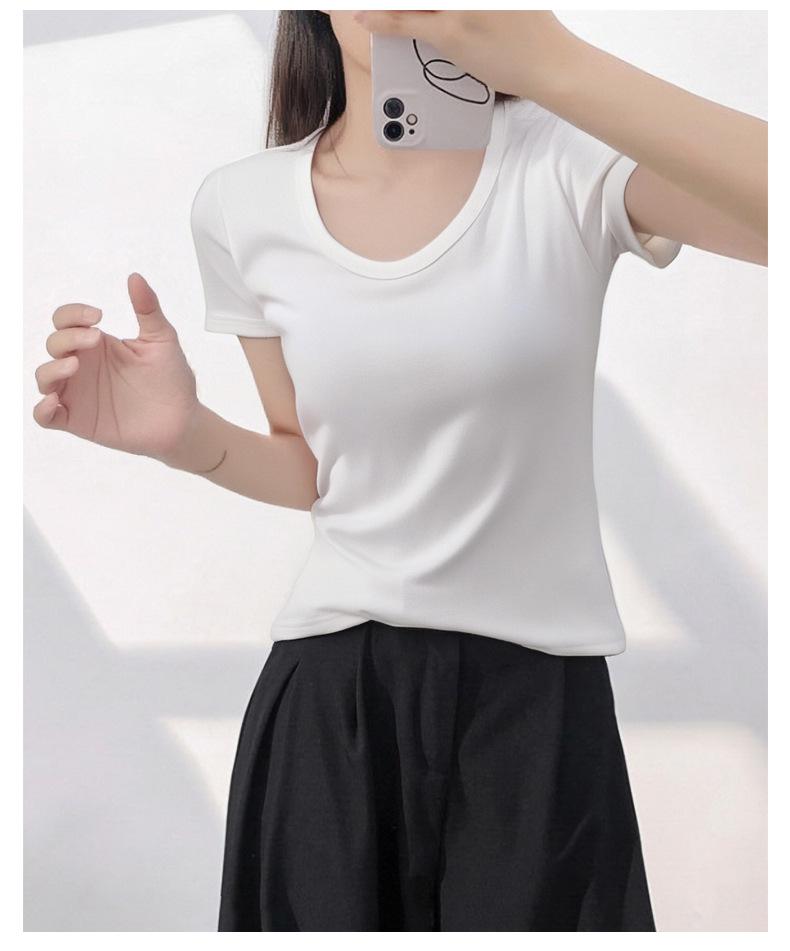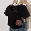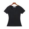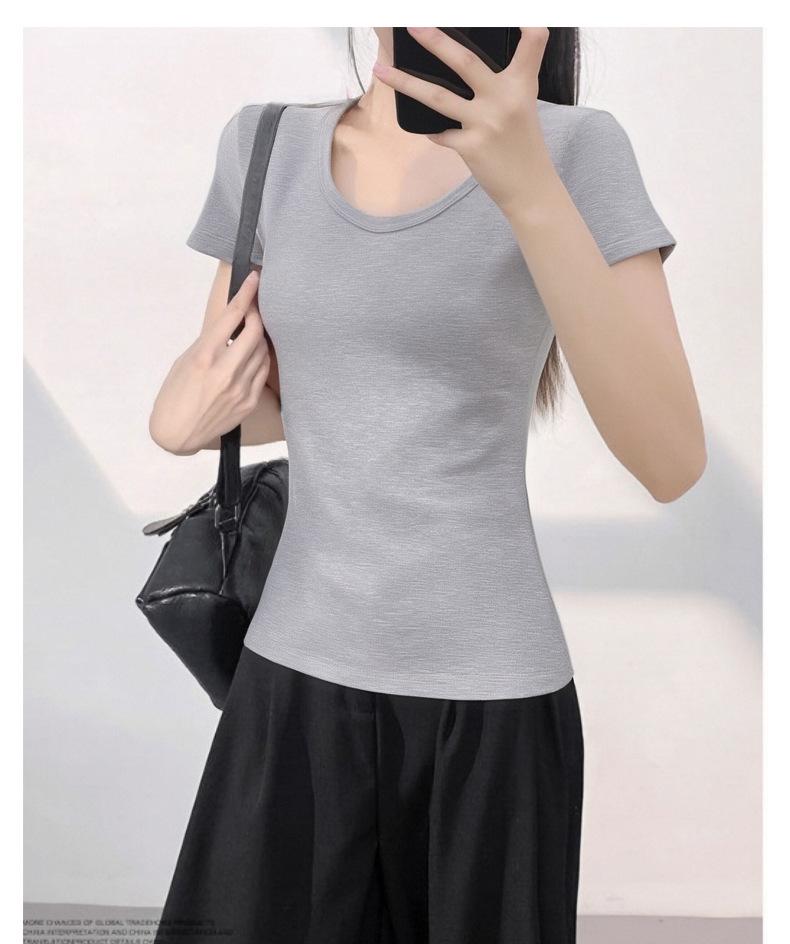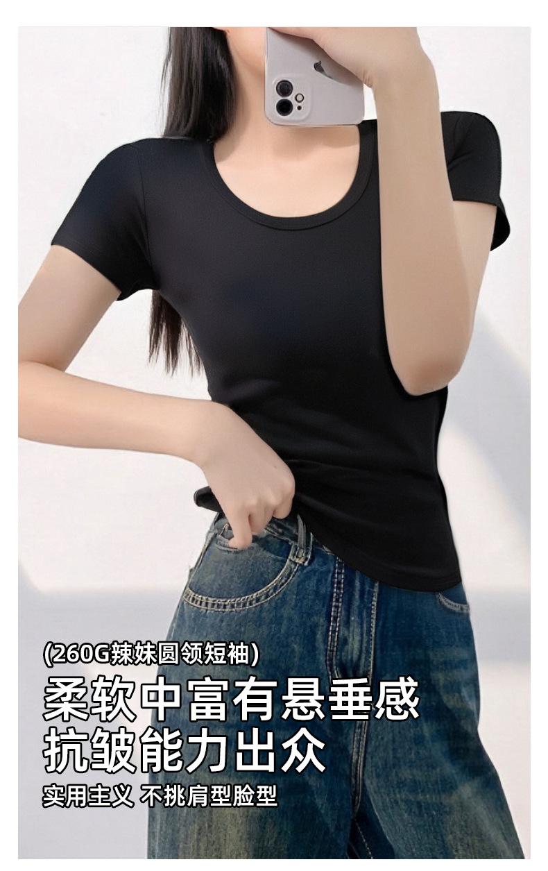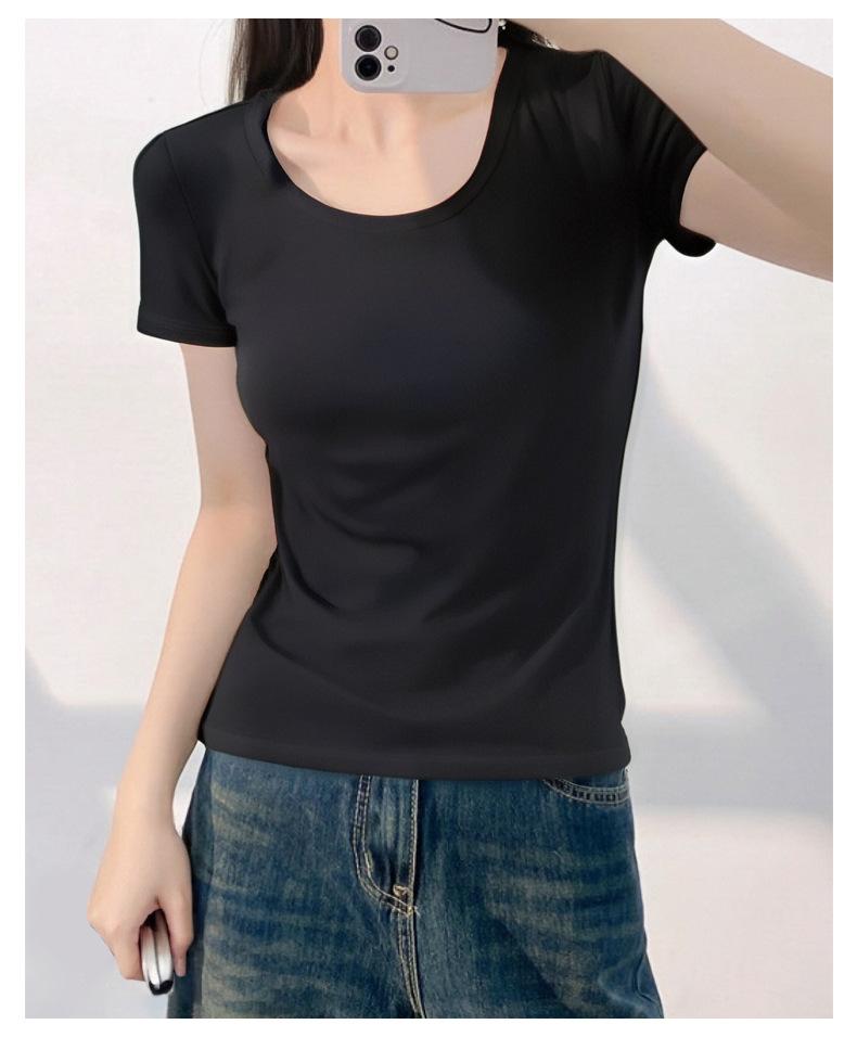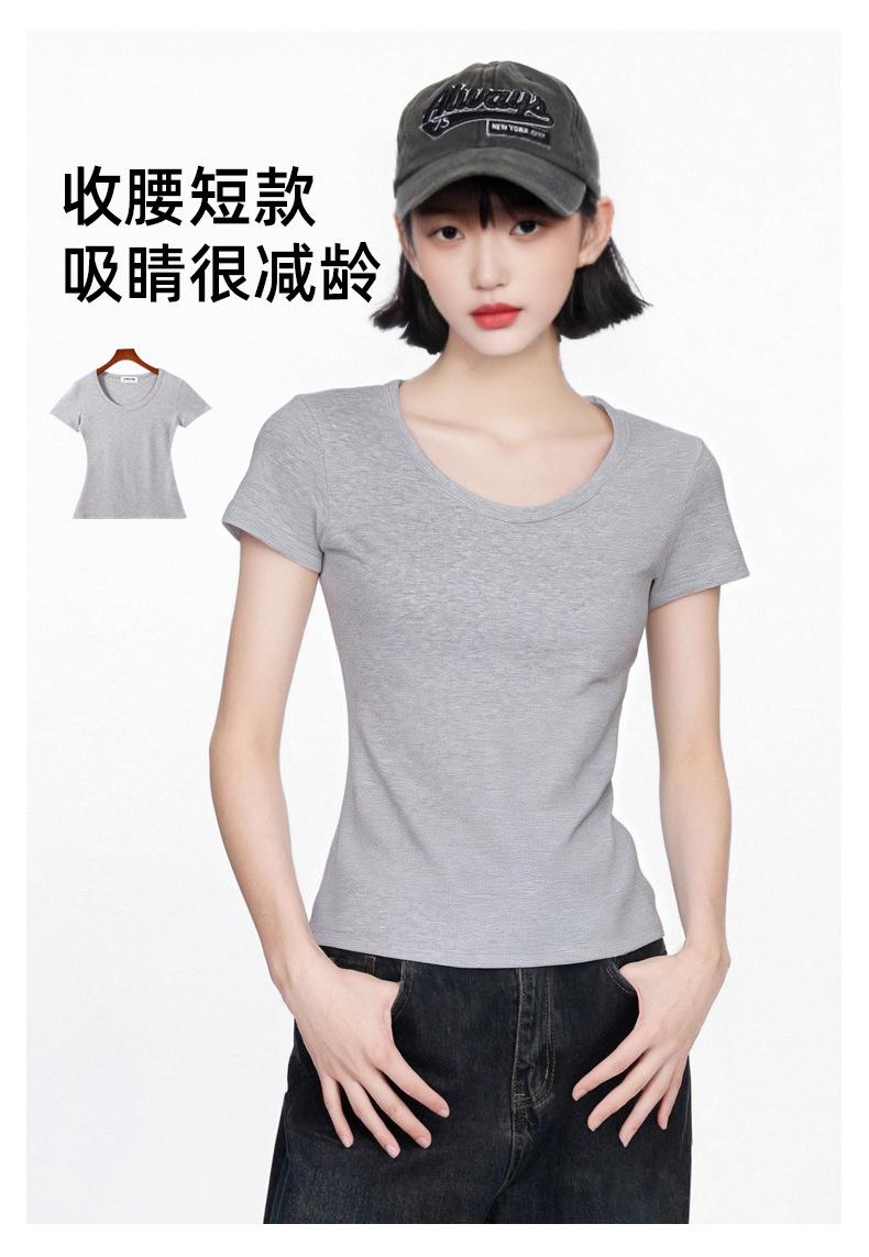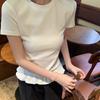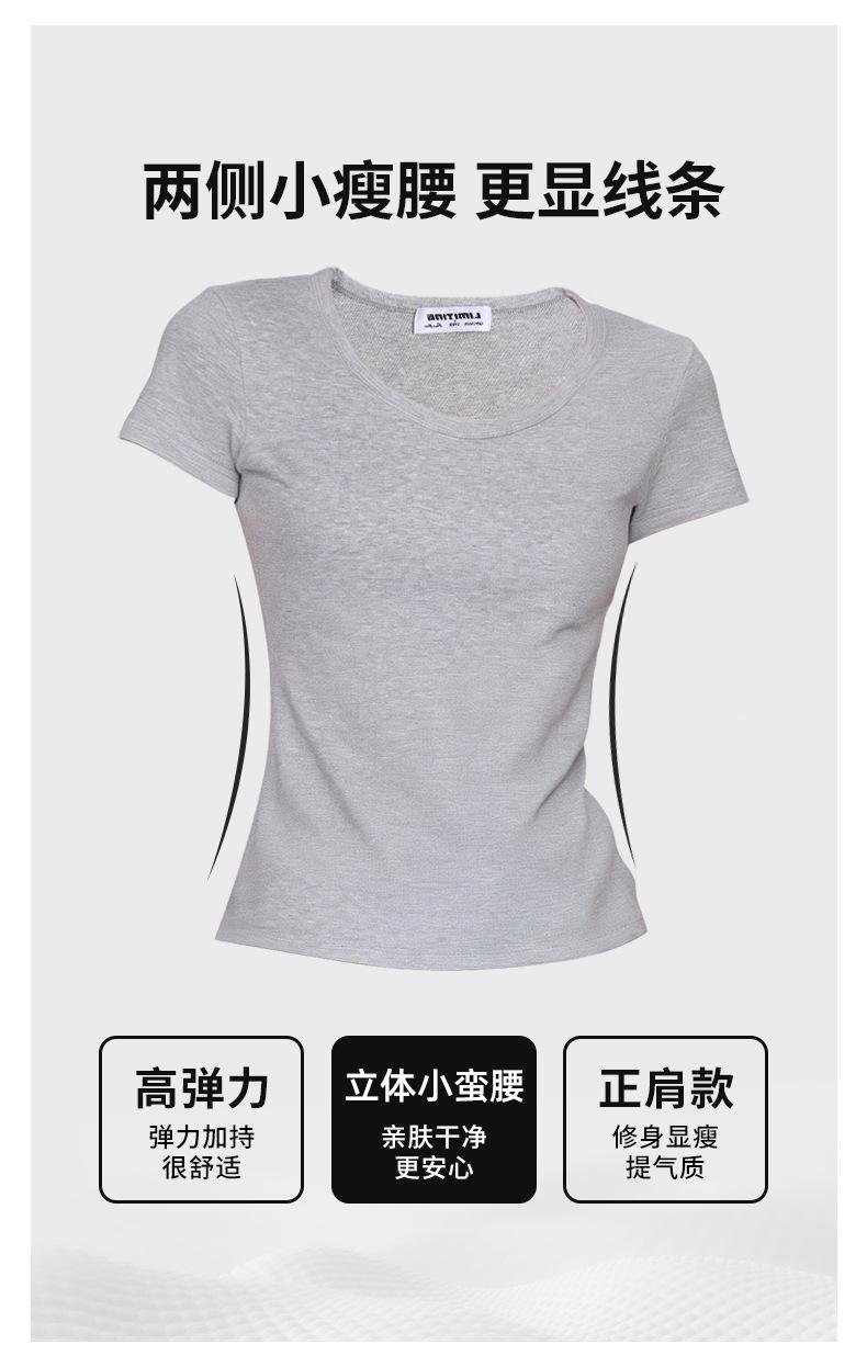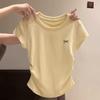 Verano 2025 Camiseta de Cuello Redondo Hombro Derecho para Mujer Cintura Manga Corta Dulce y Picante Look Adelgazante Top Corto de Cuello Redondo para Exterior