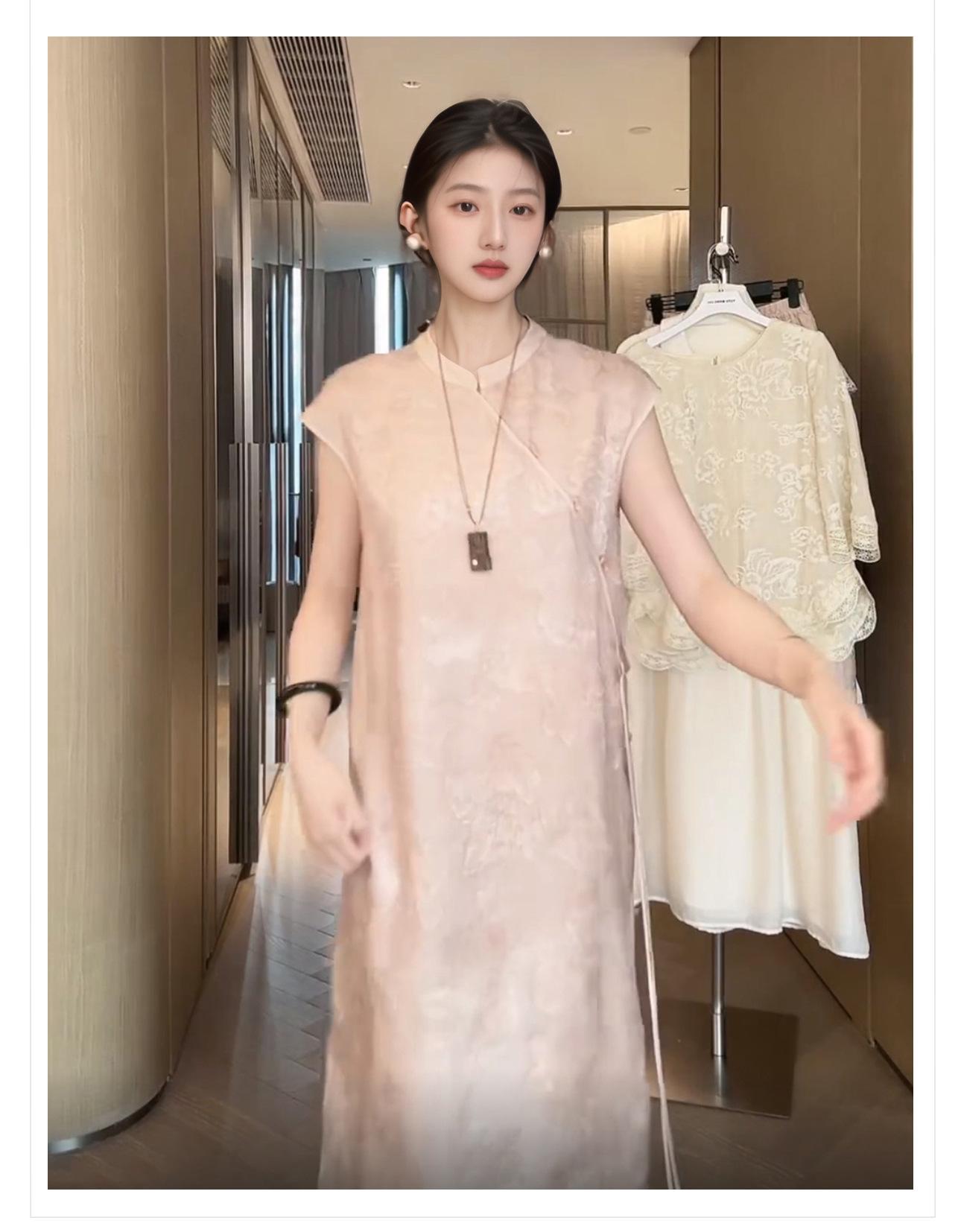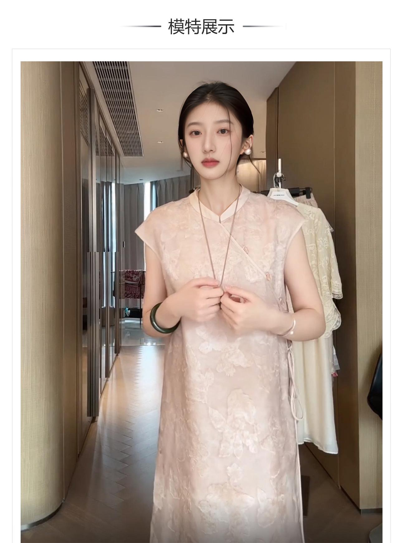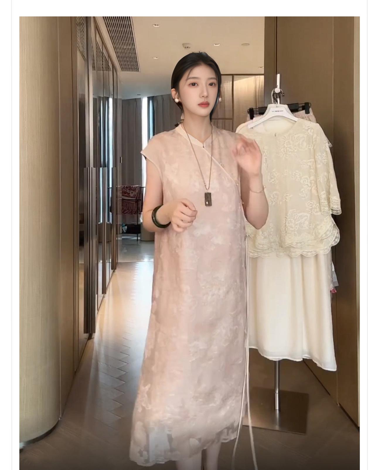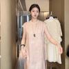 Nuevo Vestido Cheongsam Chinoiserie Elegante Bordado de Mariposas Moda de Verano Cuello Mao Elegante Rayón Falda A N6024