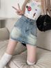 Falda de mezclilla estilo americano para chica guapa, otoño, cintura alta, línea A, falda ajustada a la cadera, falda corta pequeña, falda anti-luz