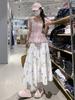 Falda de Pastel de Tres Capas con Estampado Floral de Estilo Suave y Dulce para Mujer Verano Cintura Alta Línea A Falda Grande Falda Midi