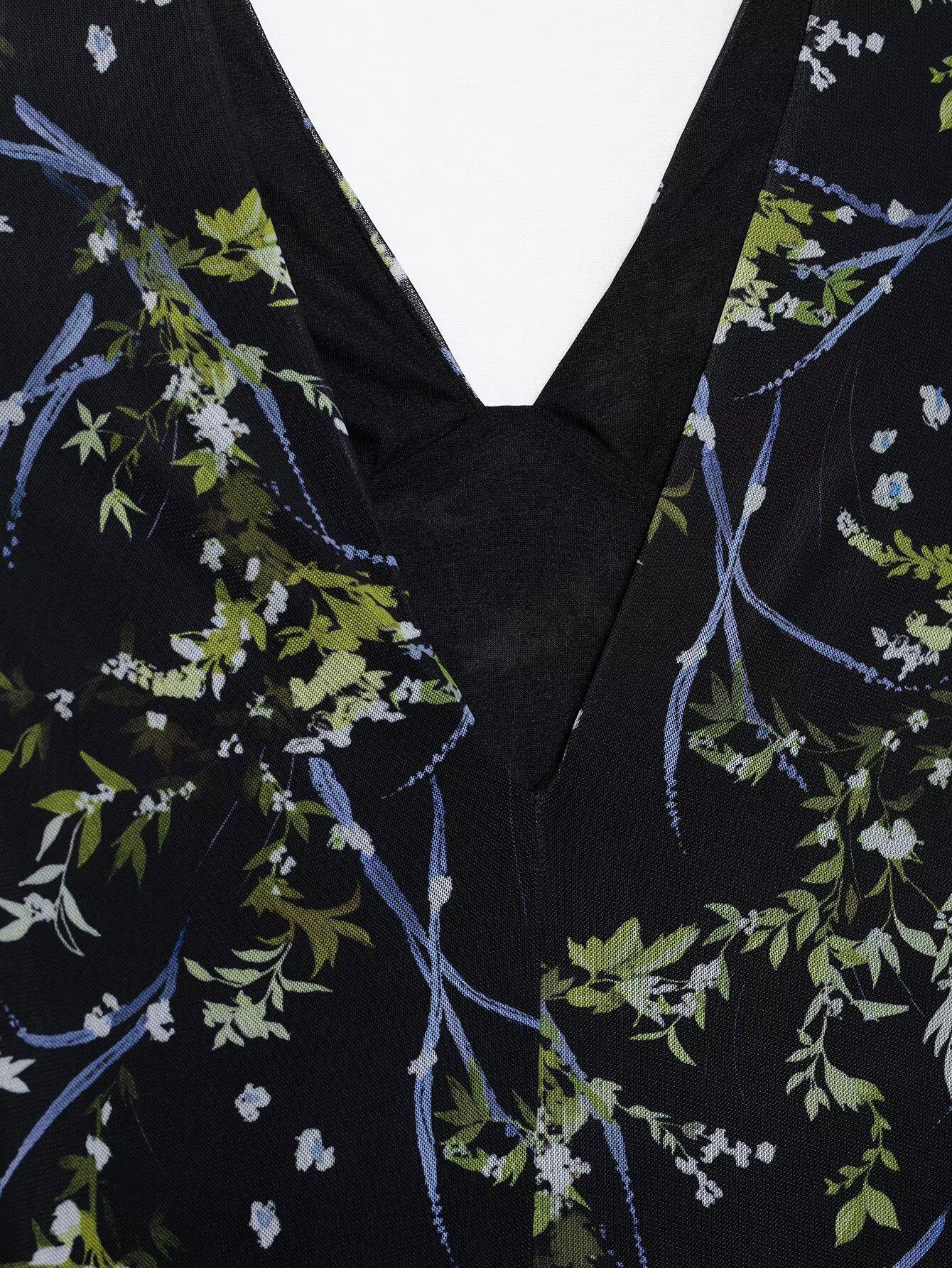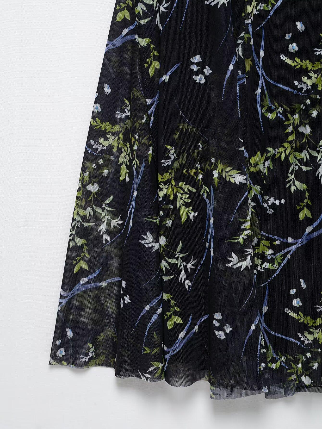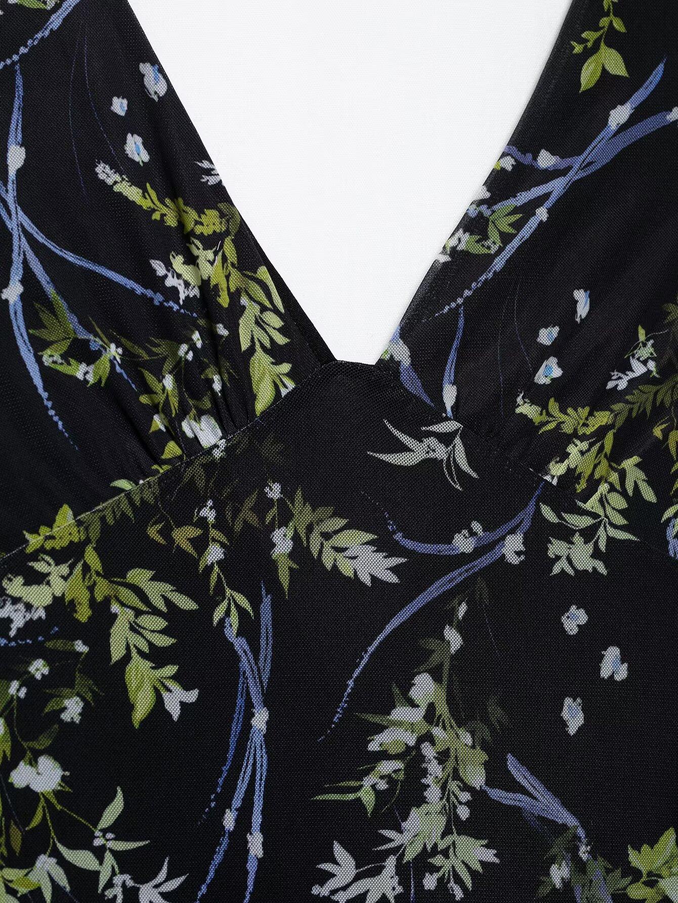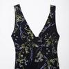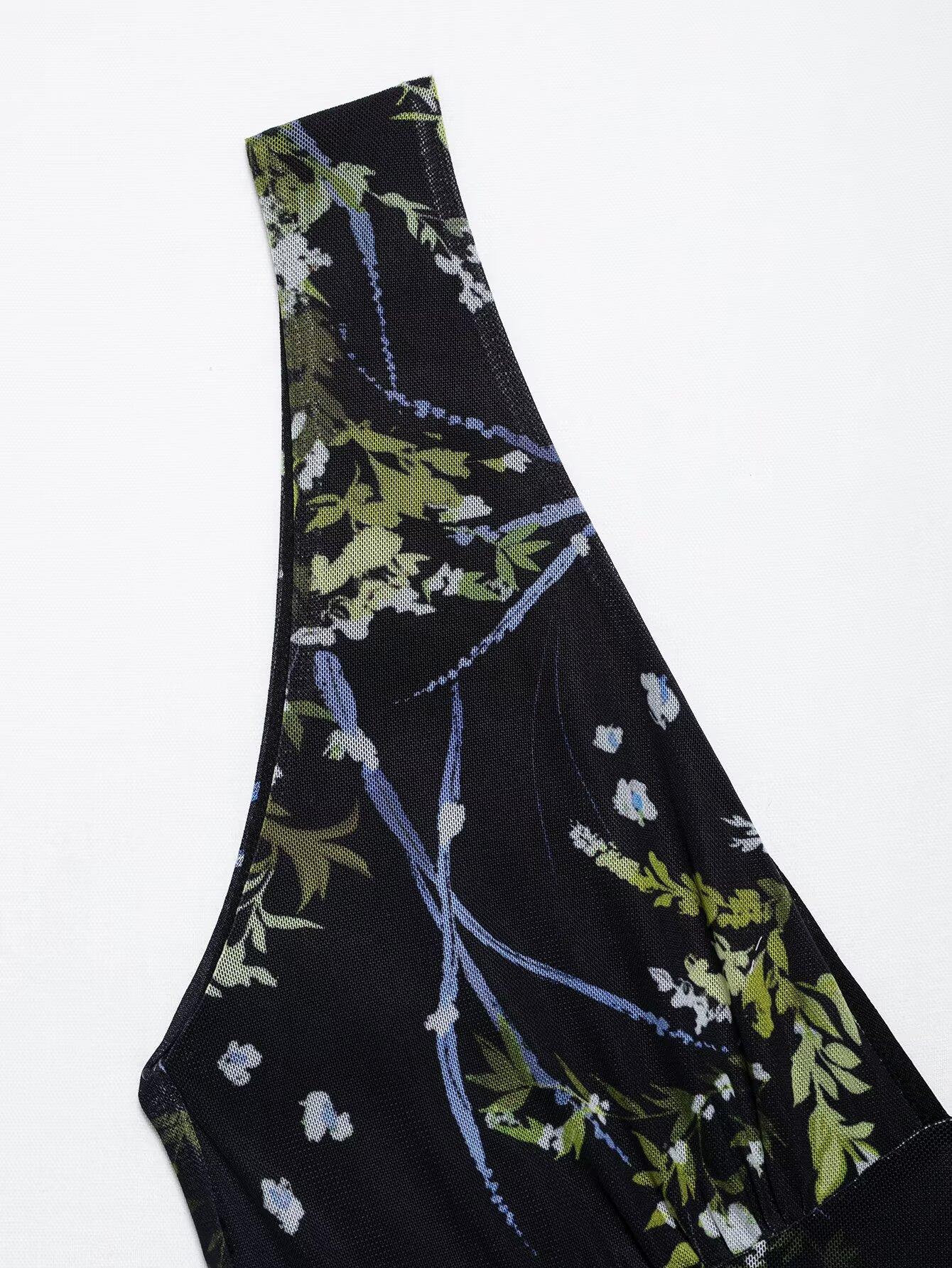 Venta al por mayor de exportación transfronteriza Primavera y verano 2025 Vestido sin mangas de malla de seda con estampado de flores con cuello en V estilo europeo y americano Falda larga
