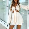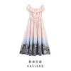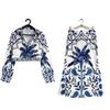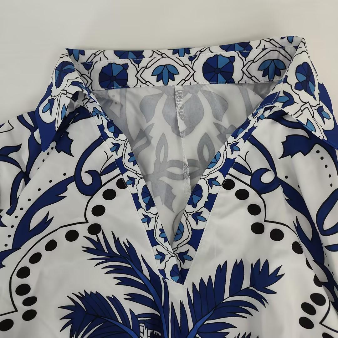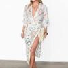 2025 Nuevo Vestido de Manga Larga con Cuello en V para Mujer Europea y Americana, Estampado Retro, Estilo Lazy de Principio de Primavera, Traje de Moda Casual