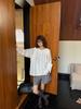 Lino Início da Primavera Nova Camisa Branca de Renda Manga Multibotões Feminina 2025 Coreana Solta Manga Lanterna Nicho Gola Redonda