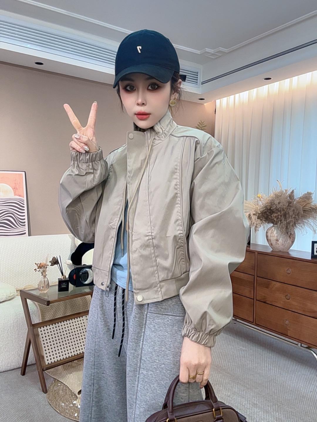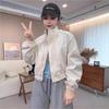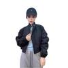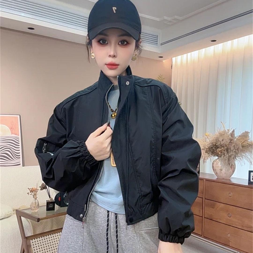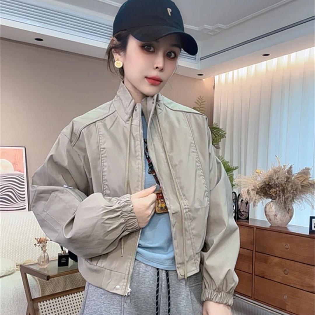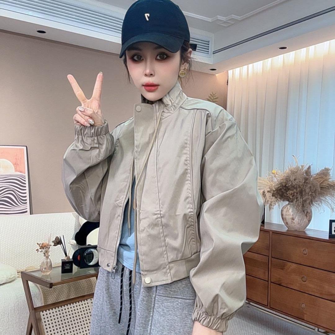 Elegante Abrigo Chaqueta de Hombrecito para Mujer Nuevo Manga Larga Cuello Diseño de Cremallera Color Sólido Moda Combinable Top Holgado