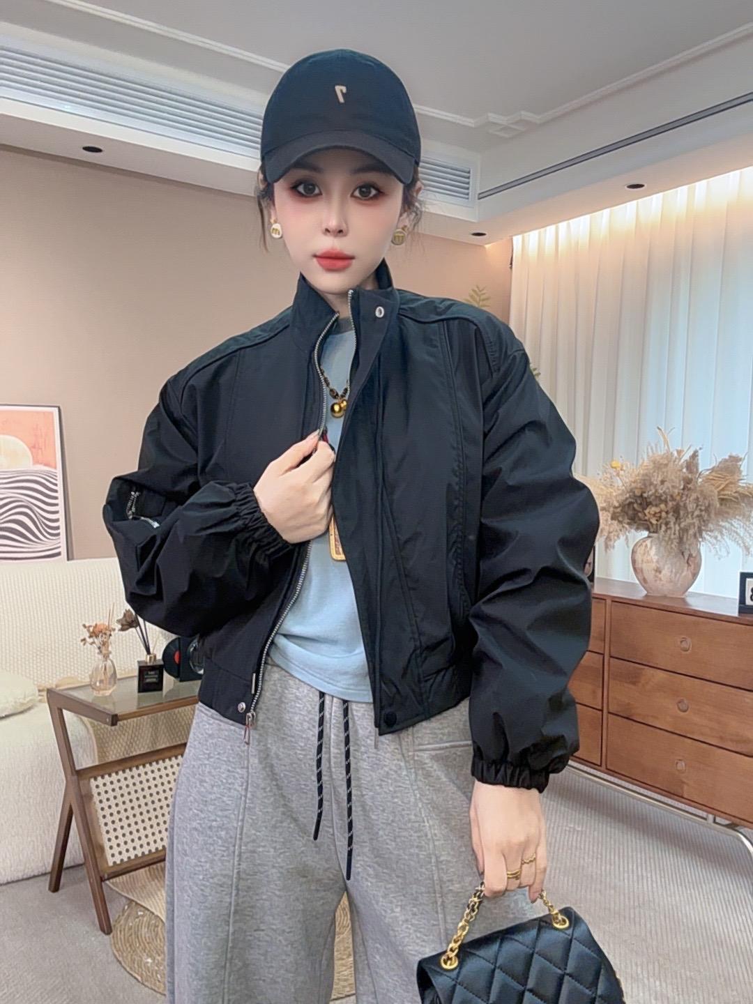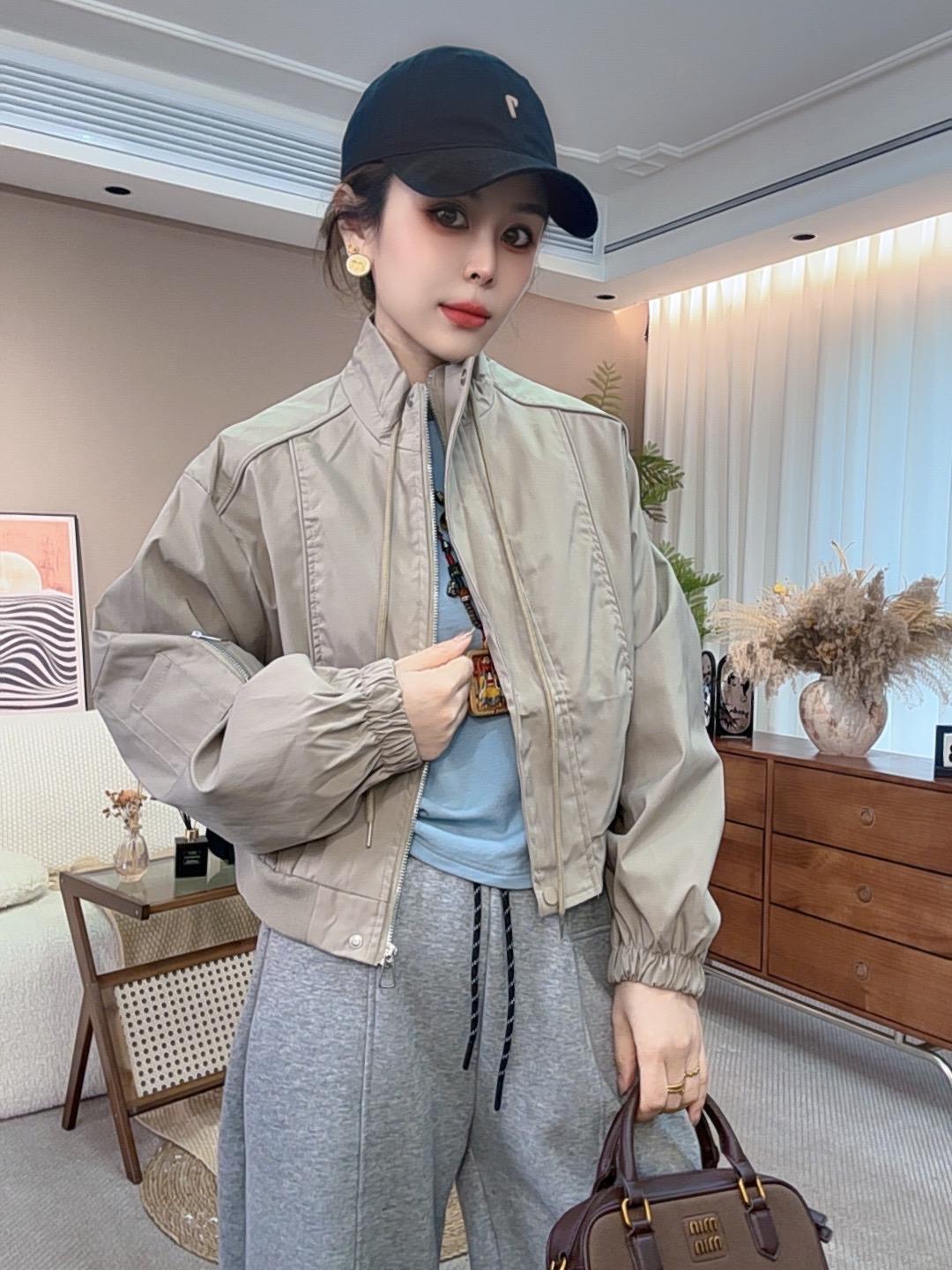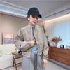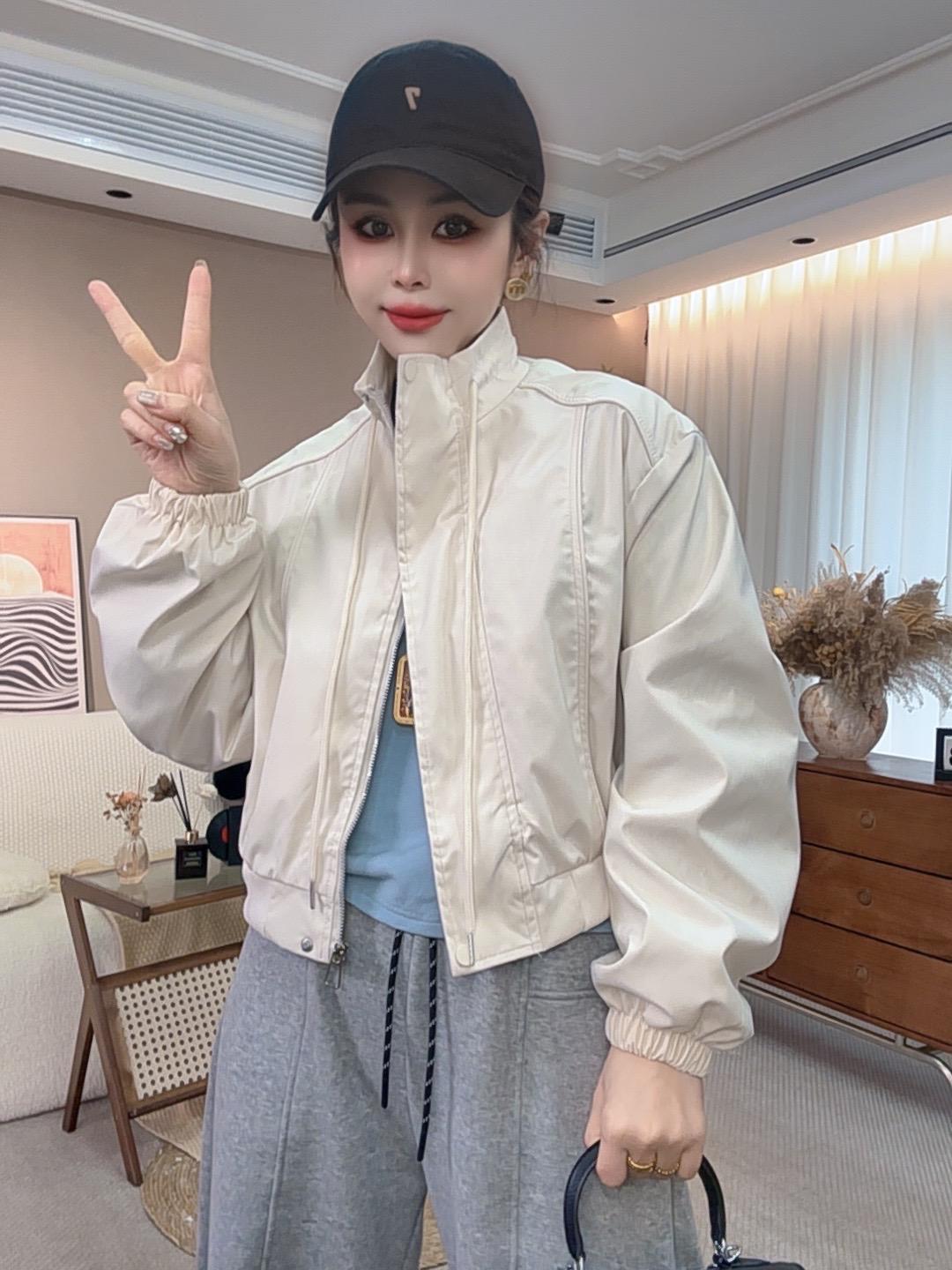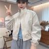 Elegante Abrigo Chaqueta de Hombrecito para Mujer Nuevo Manga Larga Cuello Diseño de Cremallera Color Sólido Moda Combinable Top Holgado