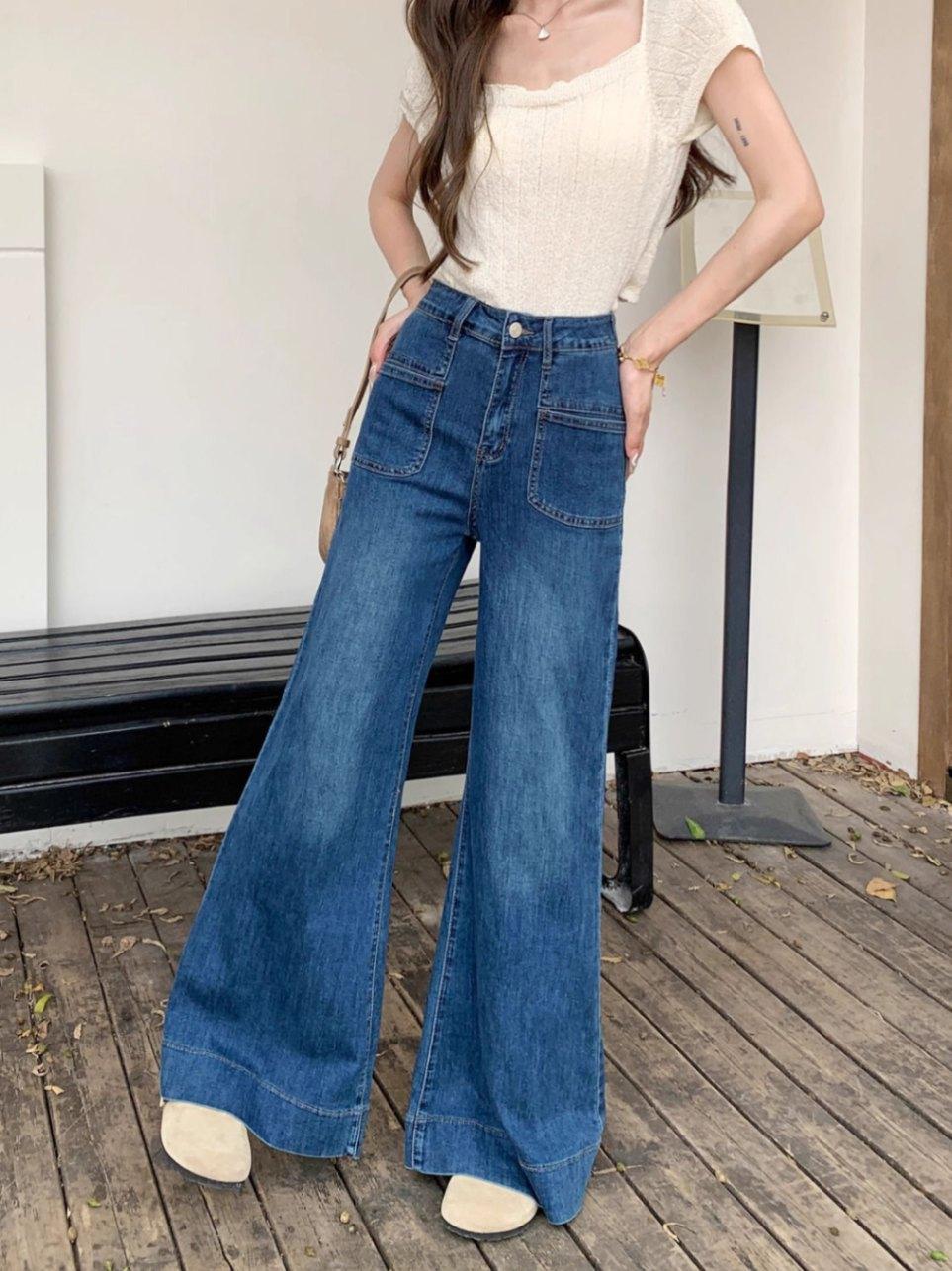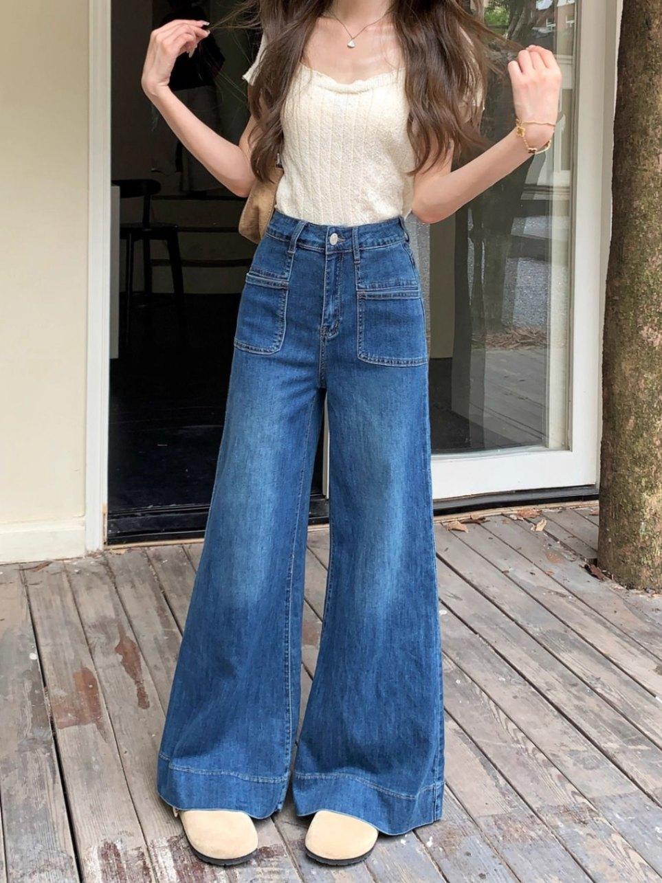 Azul oscuro Vintage Micro-La Jeans Mujer Verano 2025 Nueva Llegada Sueltos Cintura Alta Bolsillo Combinable Moderno Pantalones Modernos