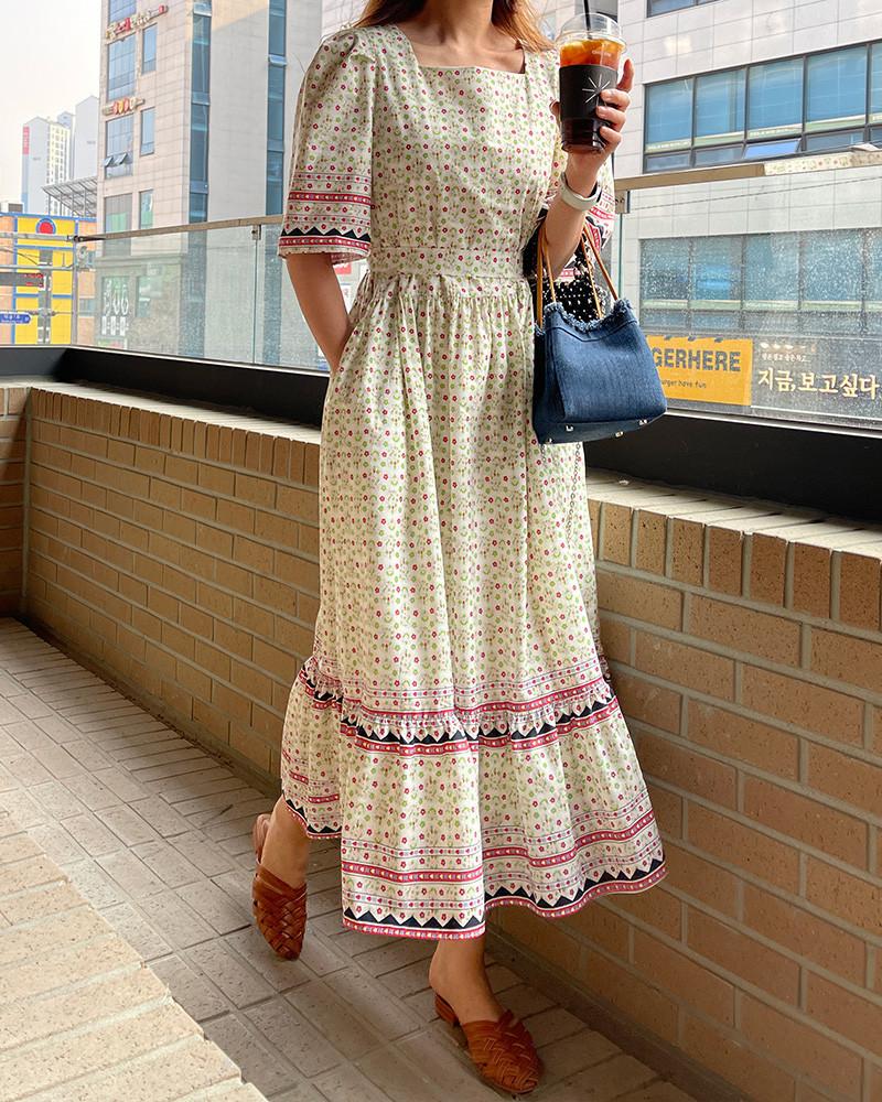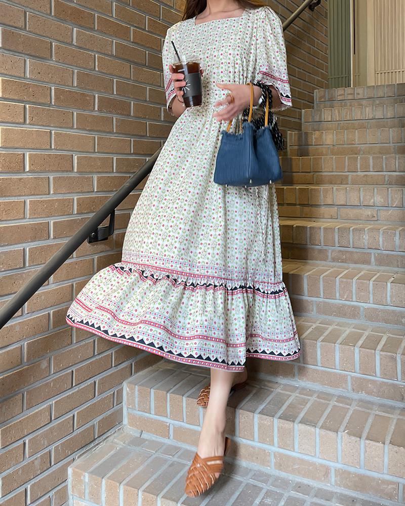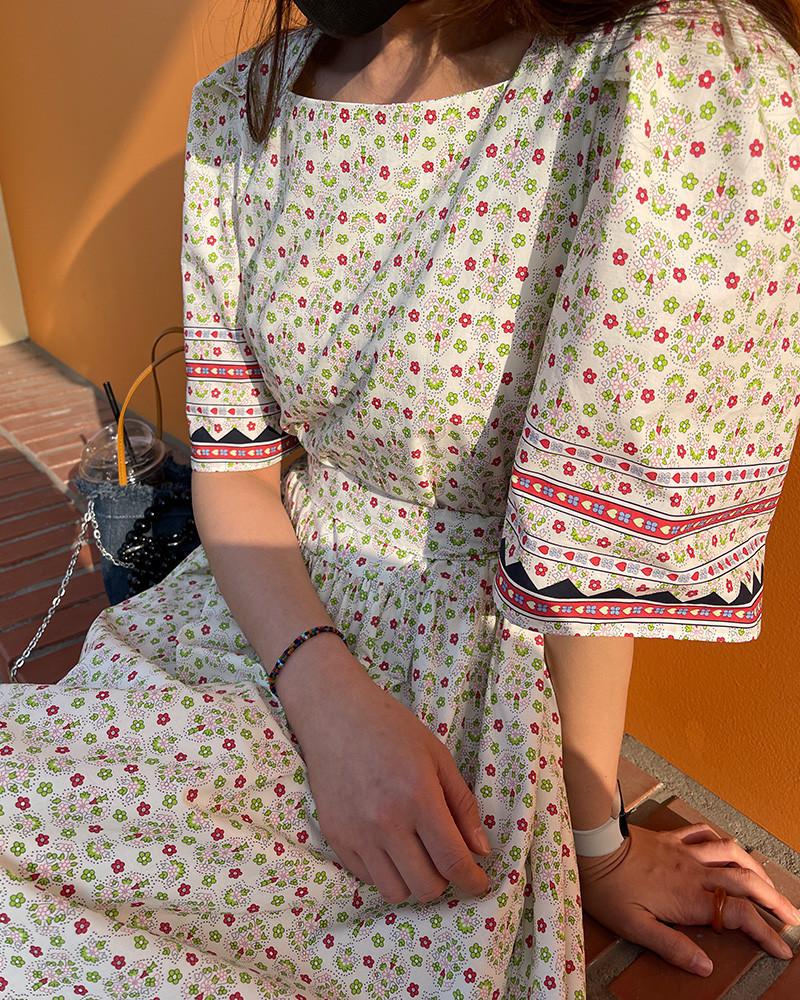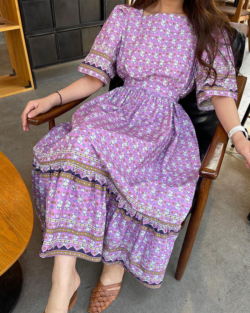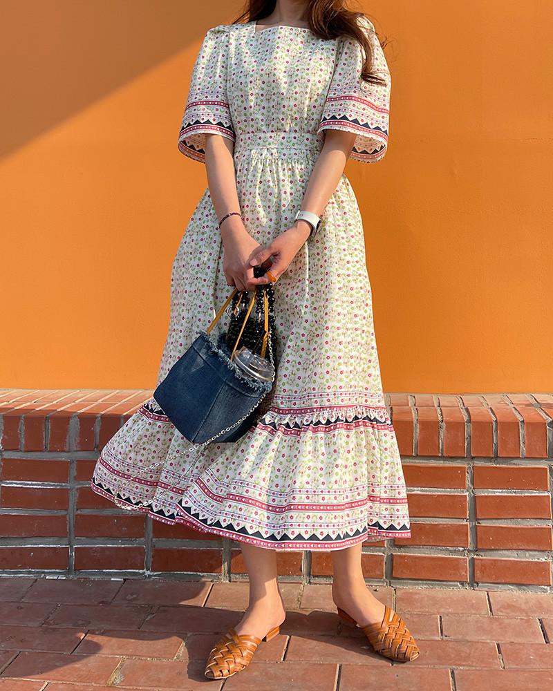 En Stock Vestido Chic Retro Estilo Étnico Floral para Mujer con Cordones en la Cintura Adelgazante Largo Medio Cola de Pez