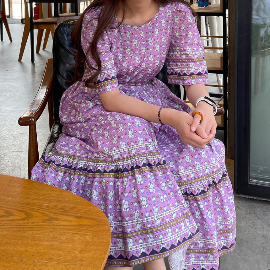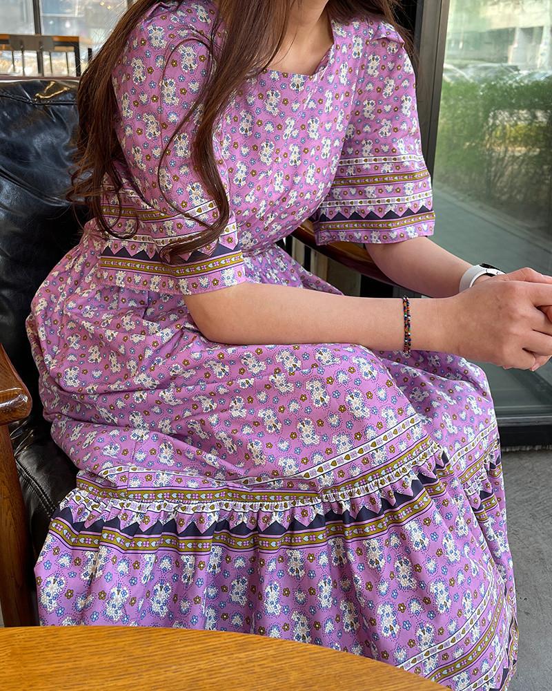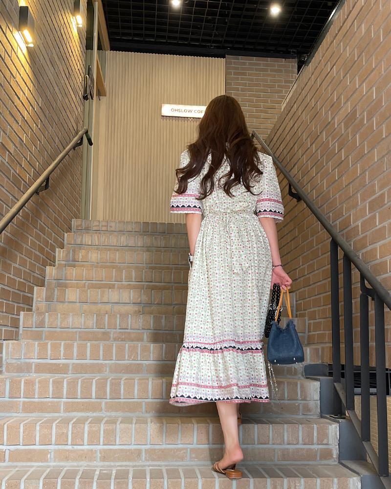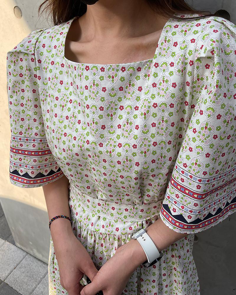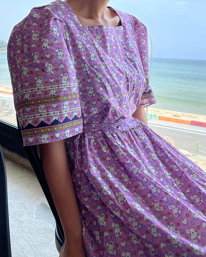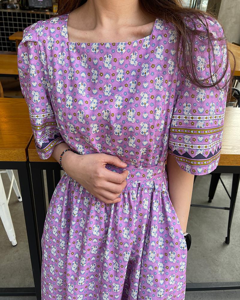 En Stock Vestido Chic Retro Estilo Étnico Floral para Mujer con Cordones en la Cintura Adelgazante Largo Medio Cola de Pez