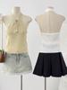 Estilo Pura Luxúria de Garota Gostosa Regata Tricotada Sem Mangas Halter de Alças Feminina Novo Estilo Verão Top Interno Slimming Sem Costas
