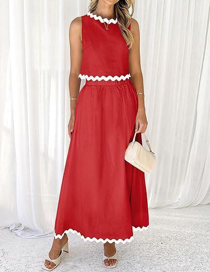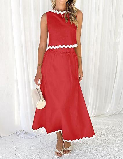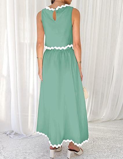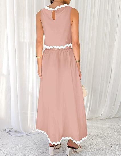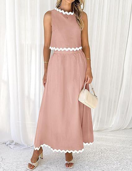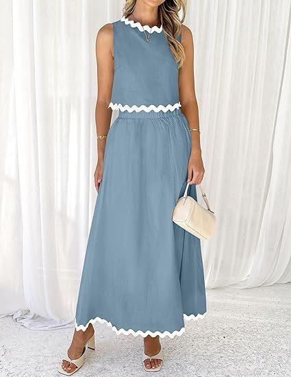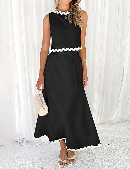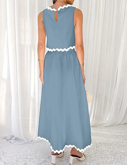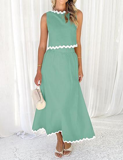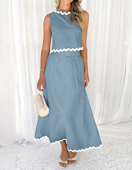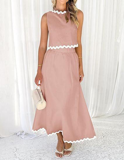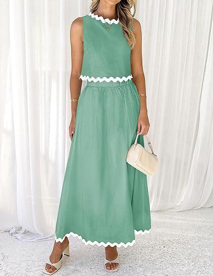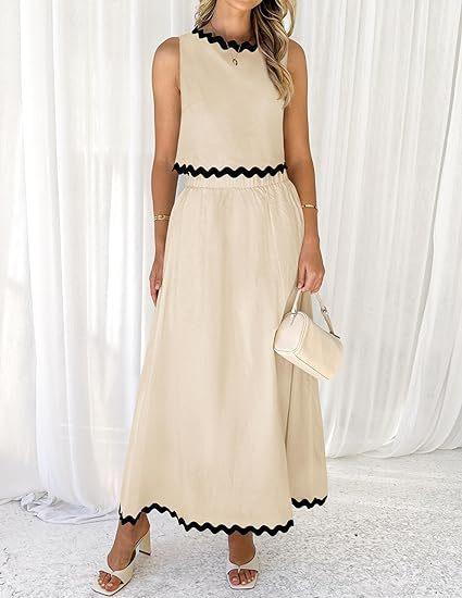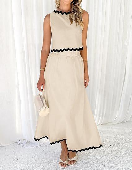 2025 Verano para Mujer Conjunto Casual de Dos Piezas Chaleco sin Mangas y Falda Larga Elegante en A Ropa de Vacaciones