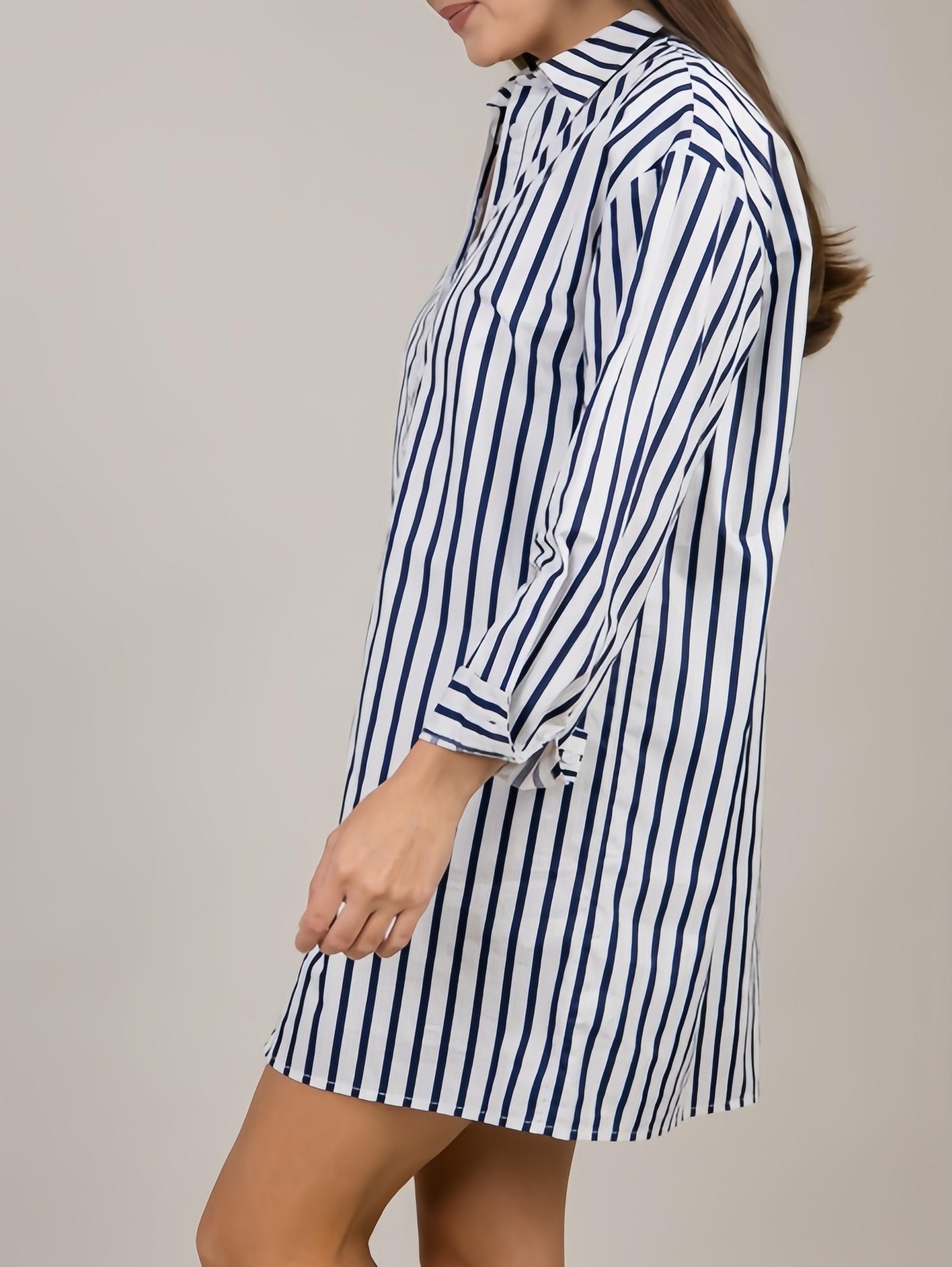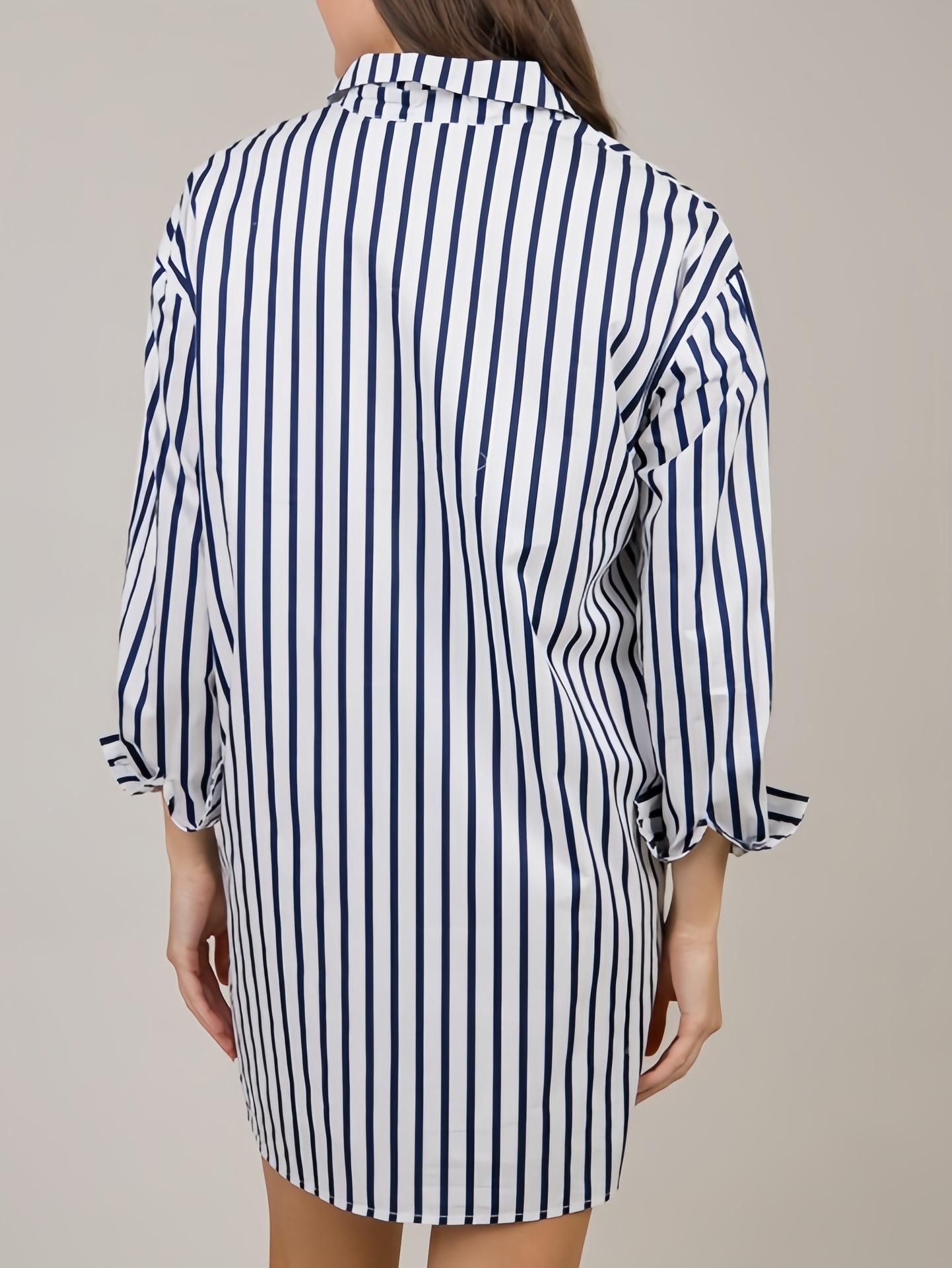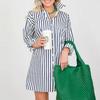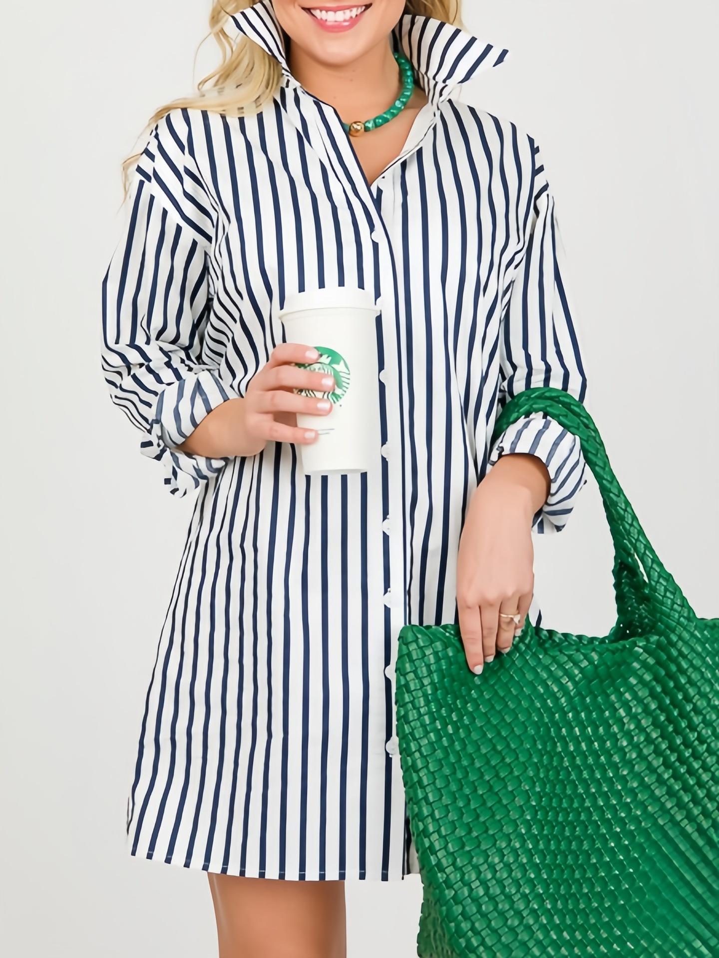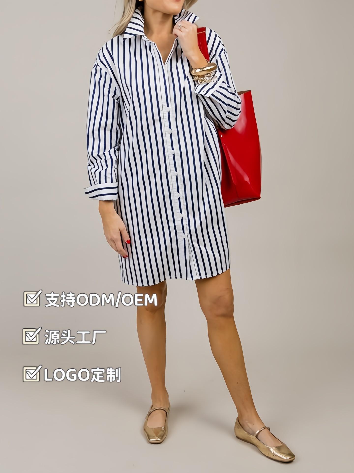 Vestido camisero a rayas europeo y americano para mujer, estilo de verano de alta gama 2025 nuevo transfronterizo línea A elegante camisa vestido corto