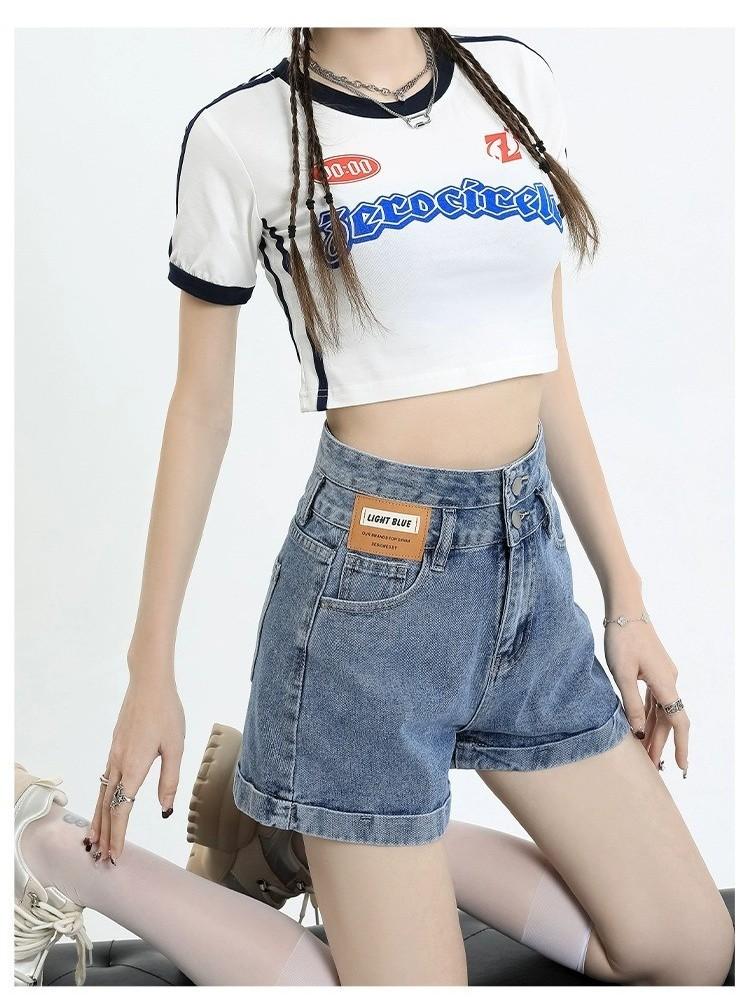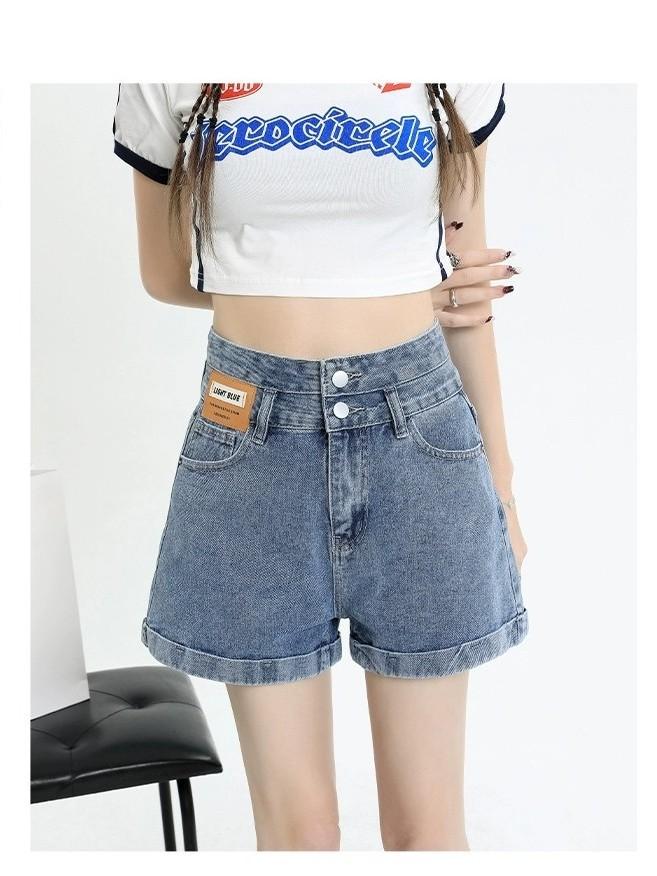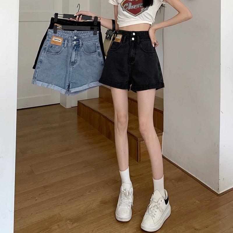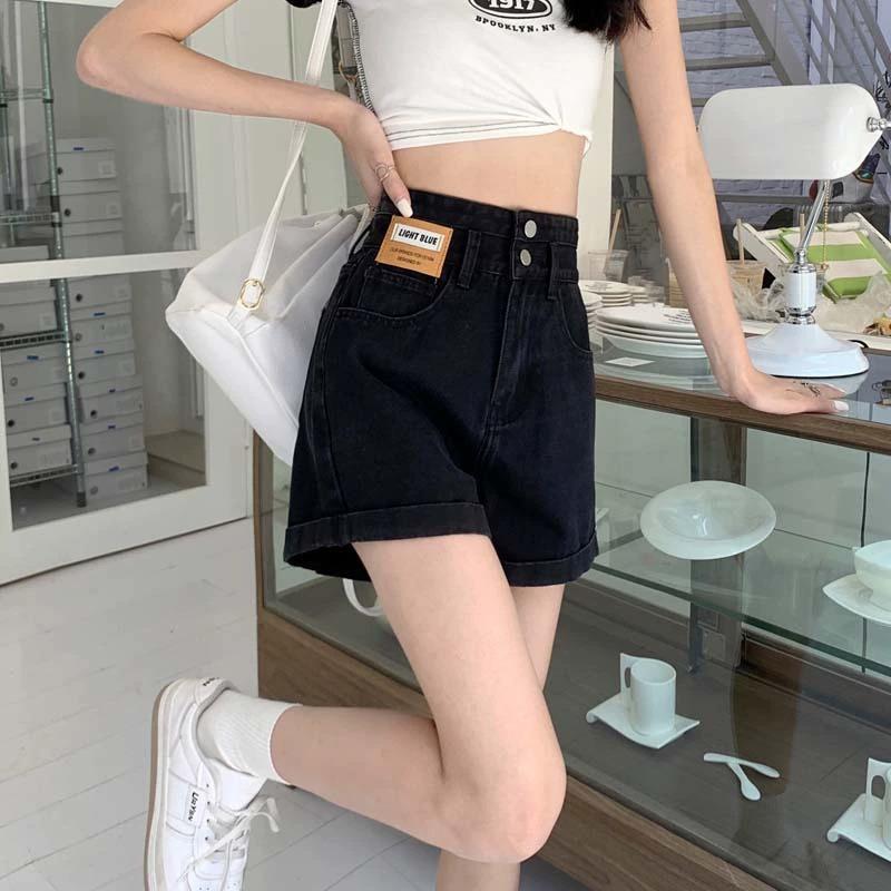 Shorts de mezclilla de cintura súper alta para mujer Verano 2023 Nuevo estilo coreano Delgados Sueltos Adelgazantes Pierna ancha Forma A Calientes con dobladillo