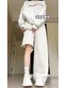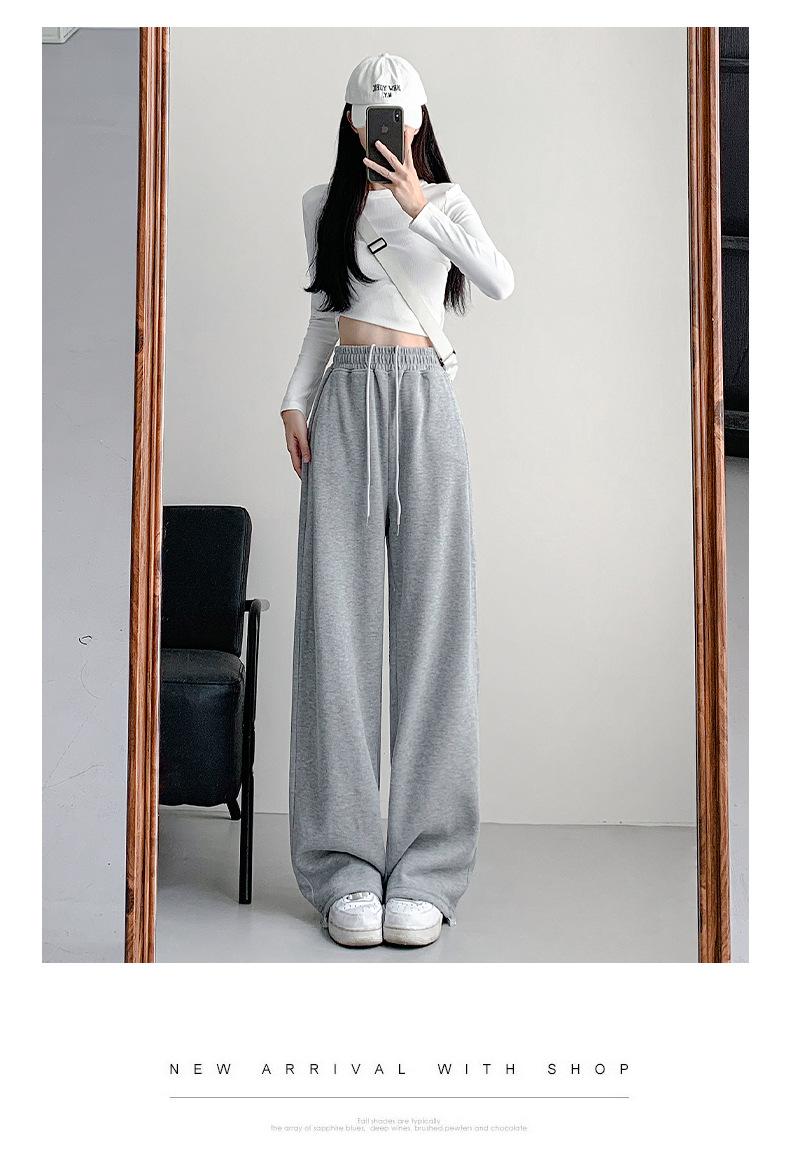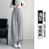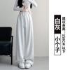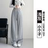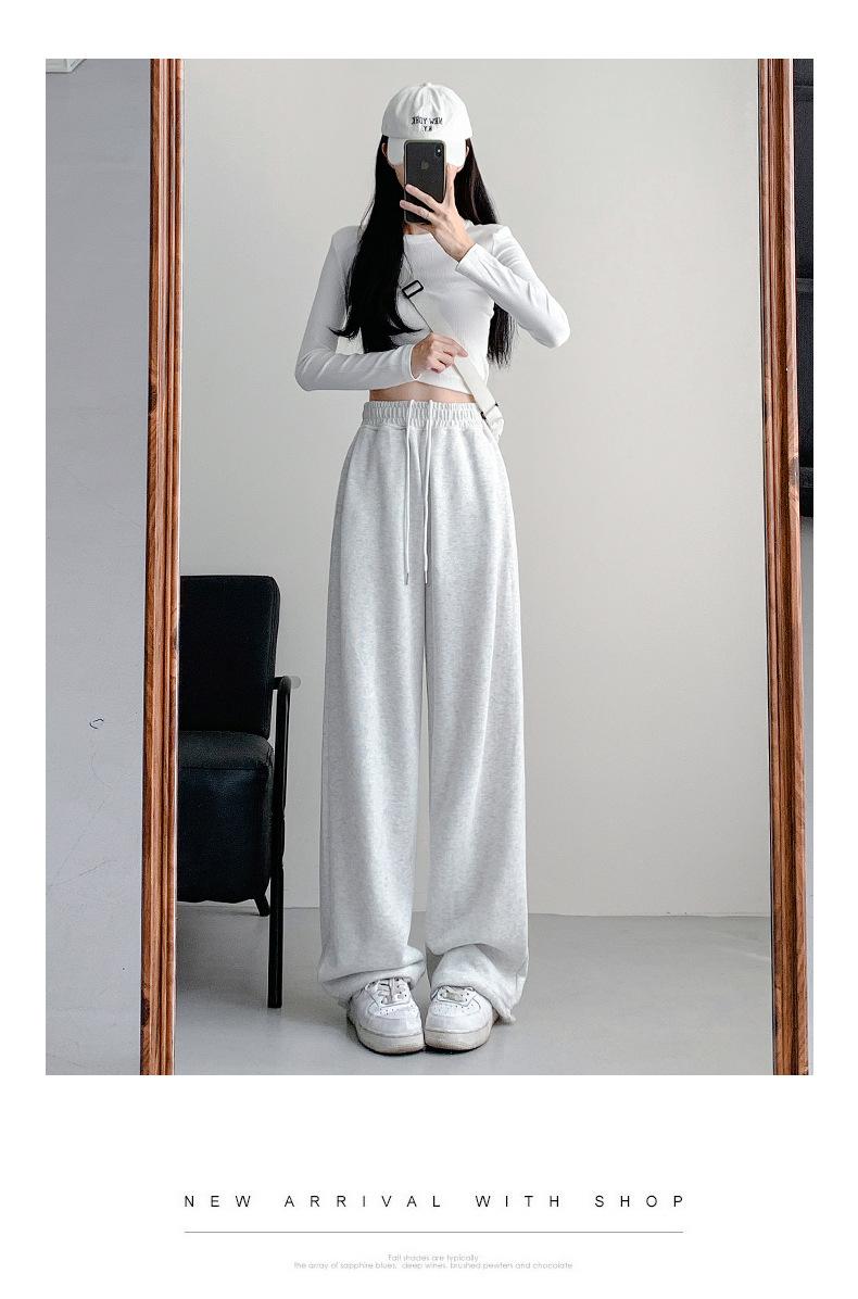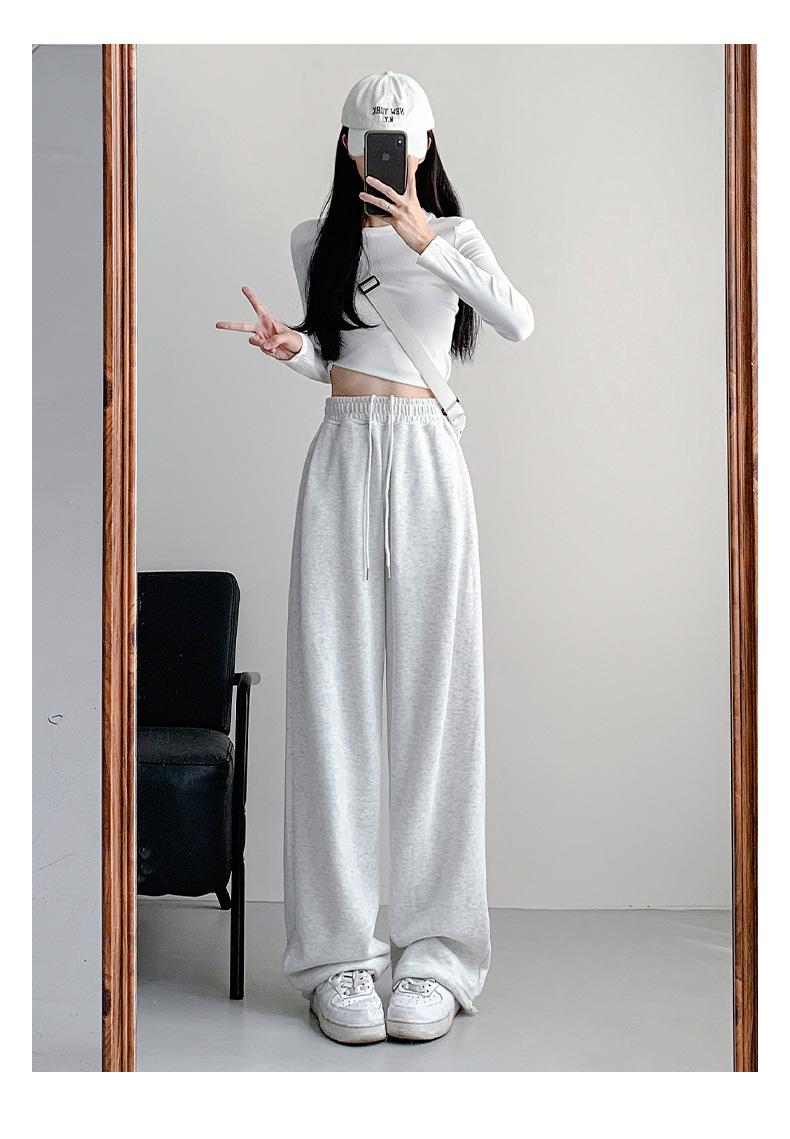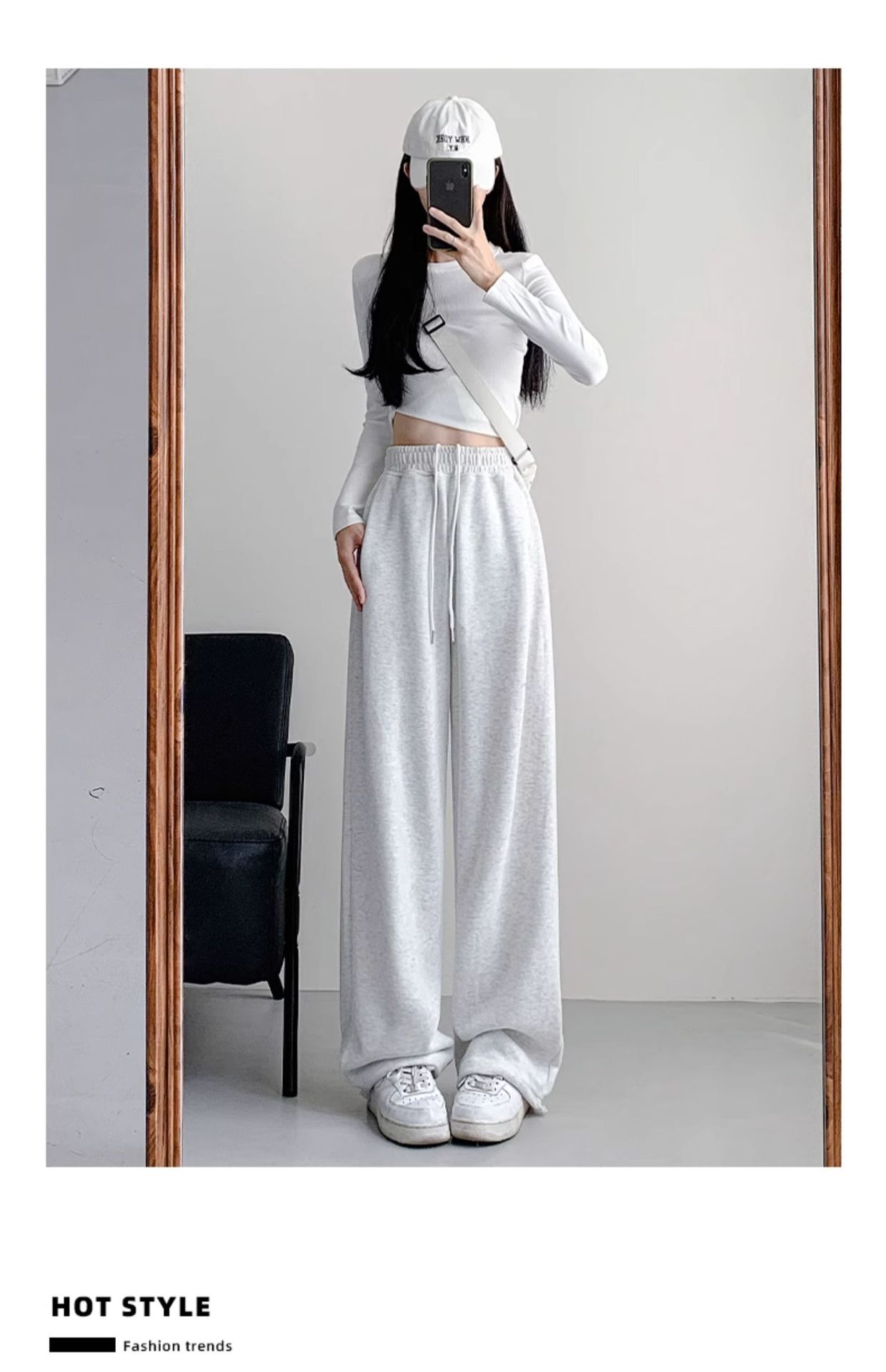 Pantalón de sudadera gris para mujer, Otoño 2025 Nuevo Jogger holgado de cintura alta recto de pierna ancha casual con cordón