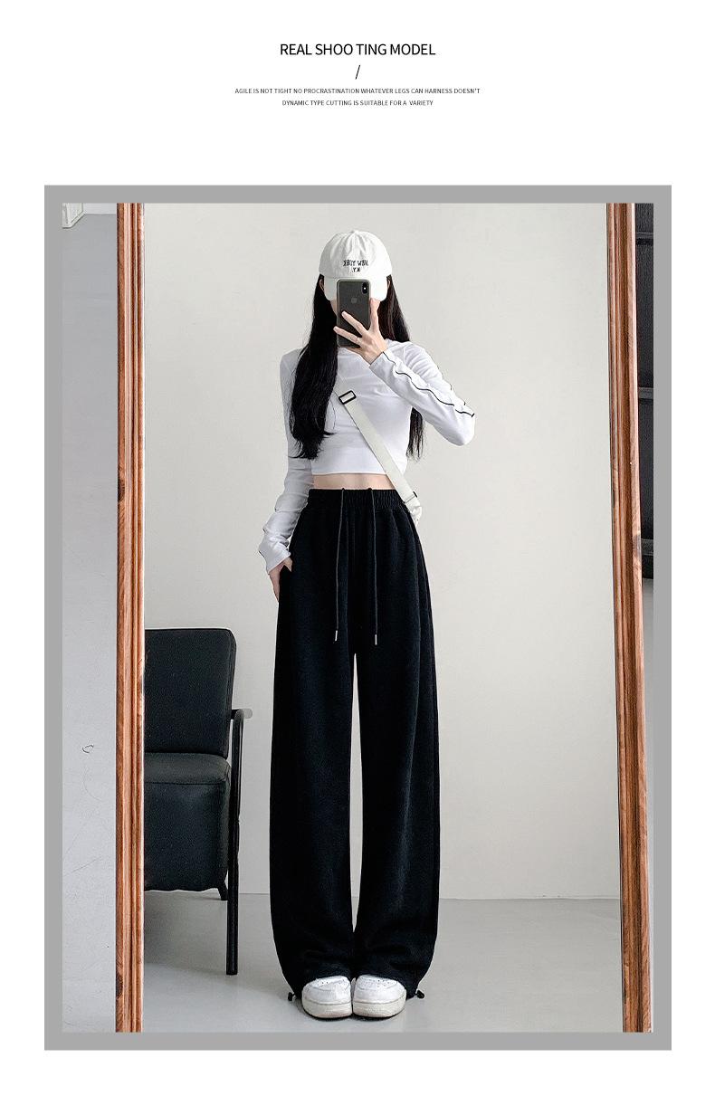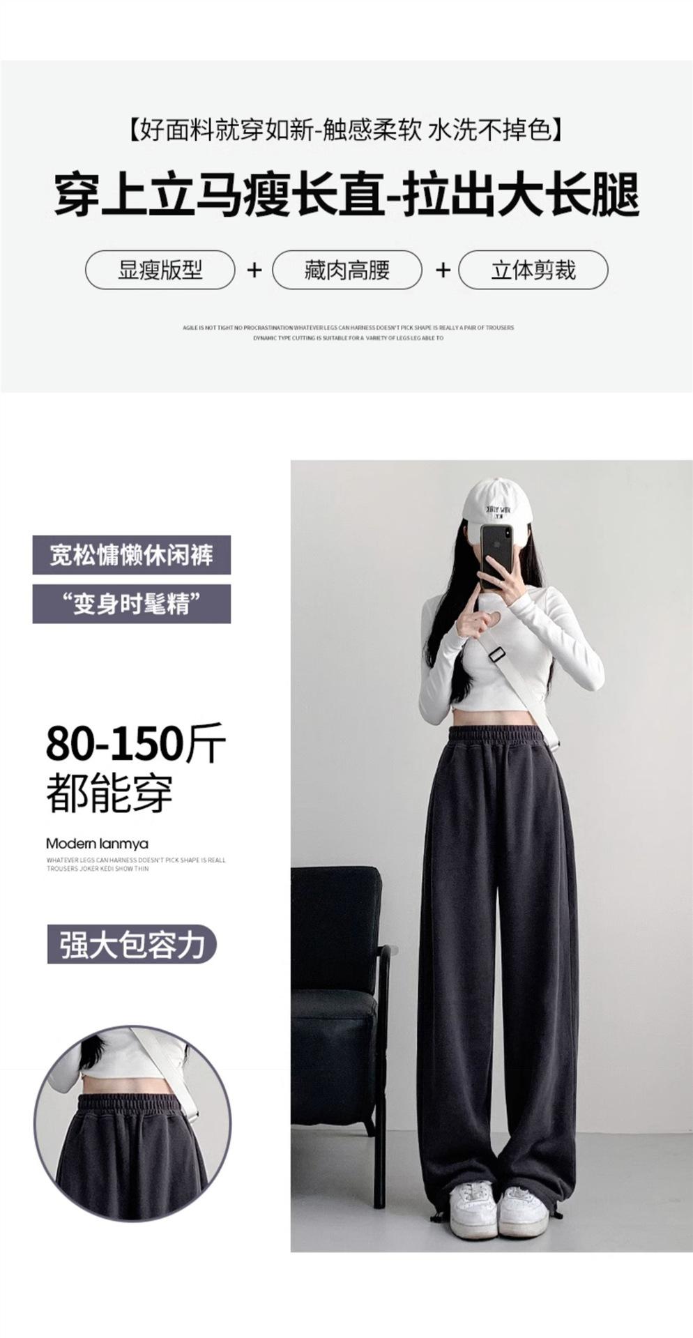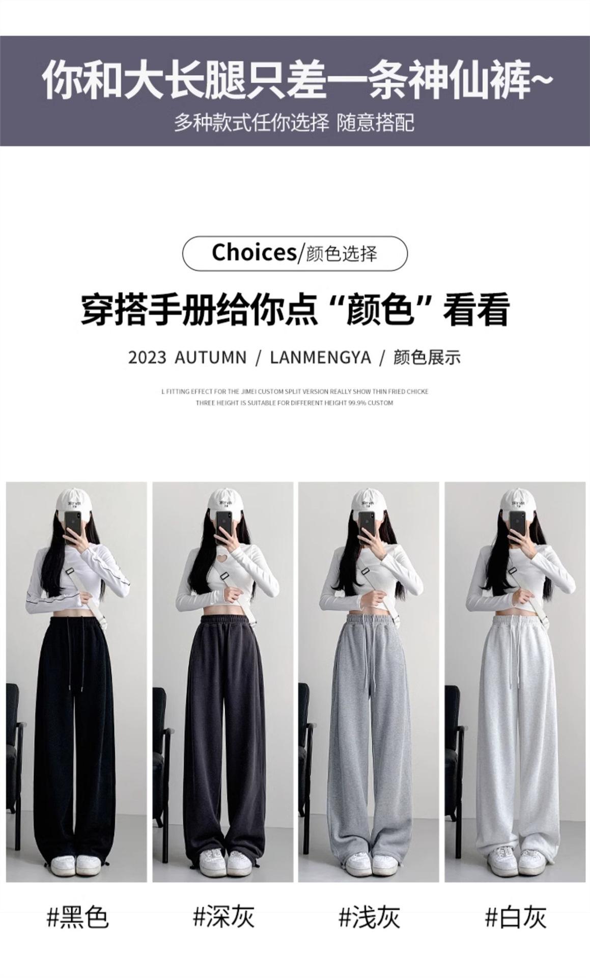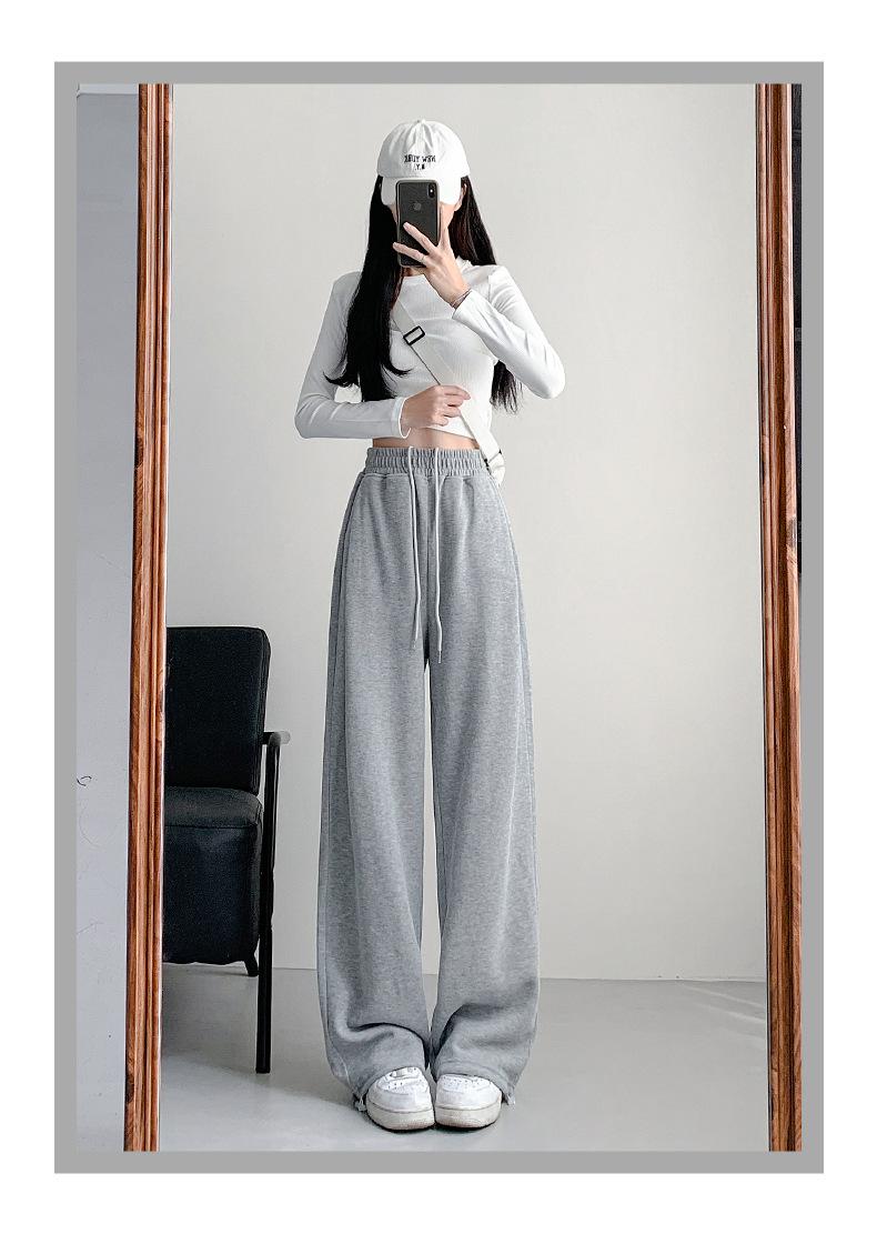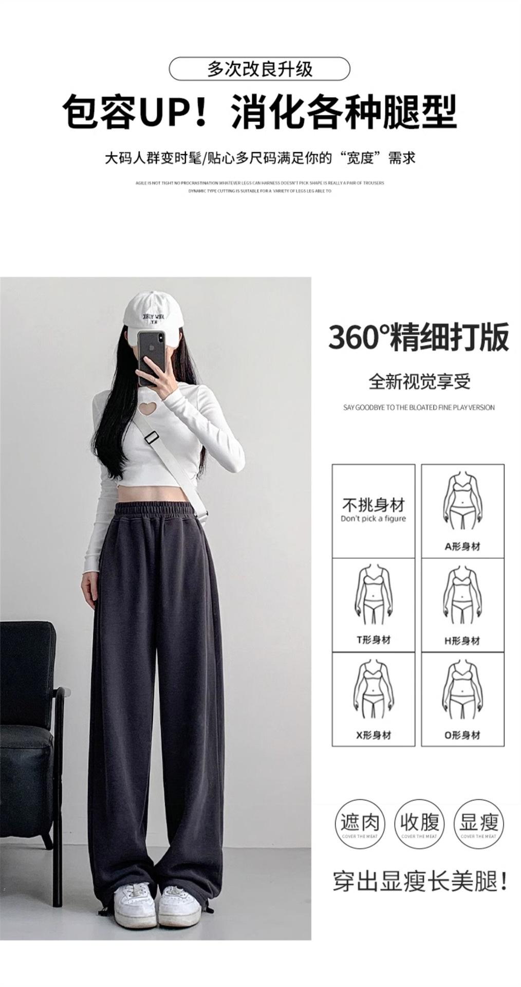 Pantalón de sudadera gris para mujer, Otoño 2025 Nuevo Jogger holgado de cintura alta recto de pierna ancha casual con cordón