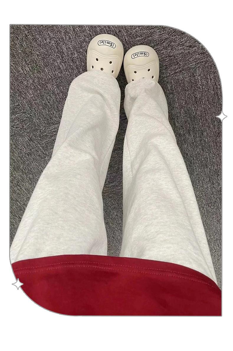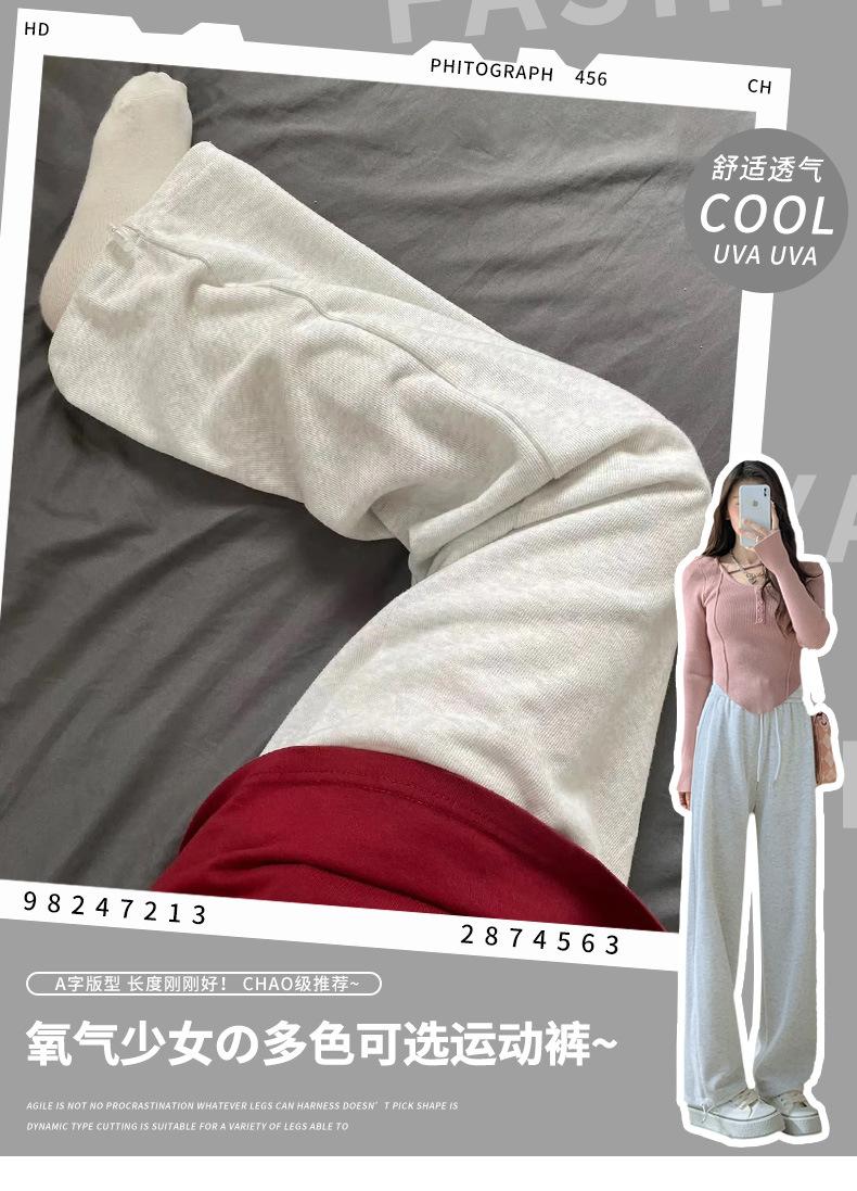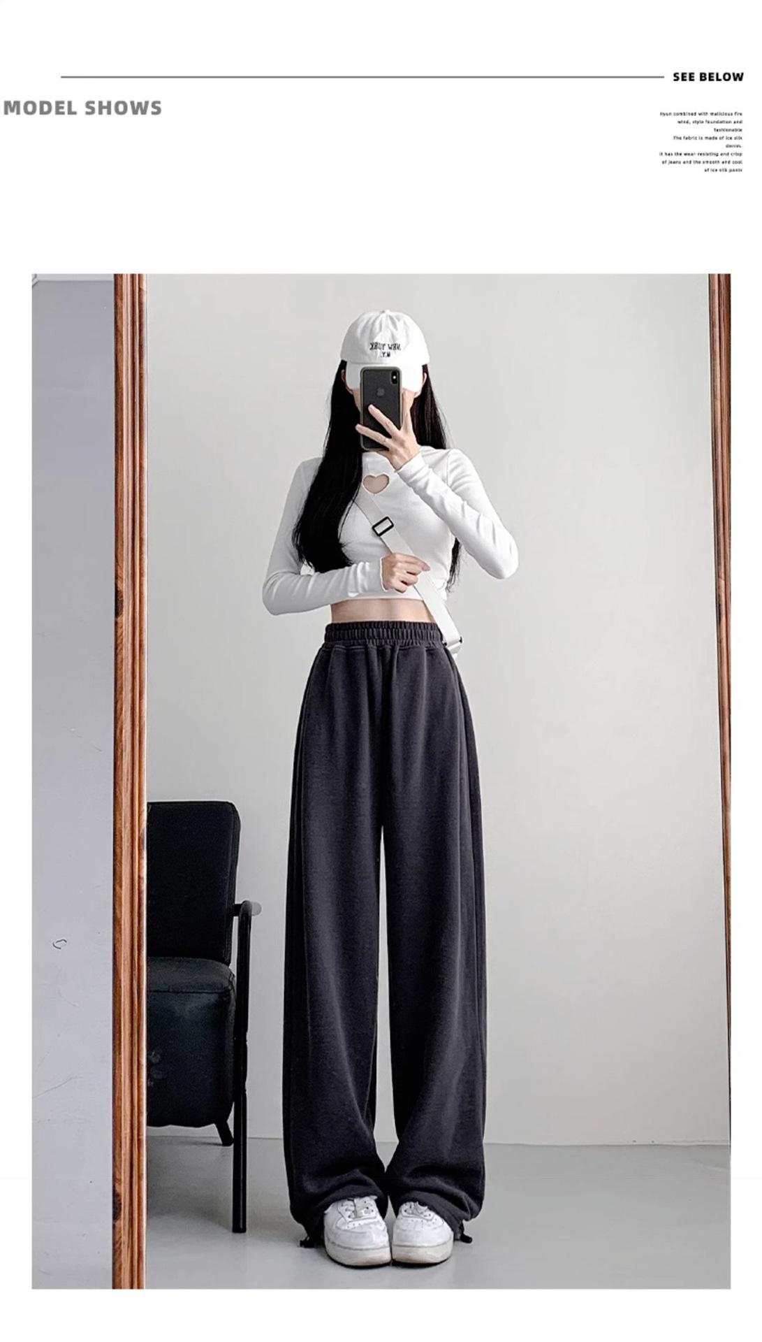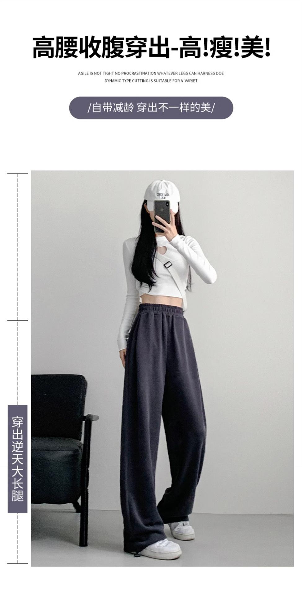 Pantalón de sudadera gris para mujer, Otoño 2025 Nuevo Jogger holgado de cintura alta recto de pierna ancha casual con cordón