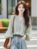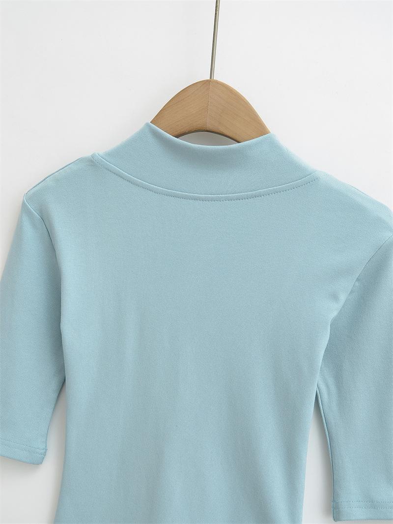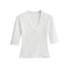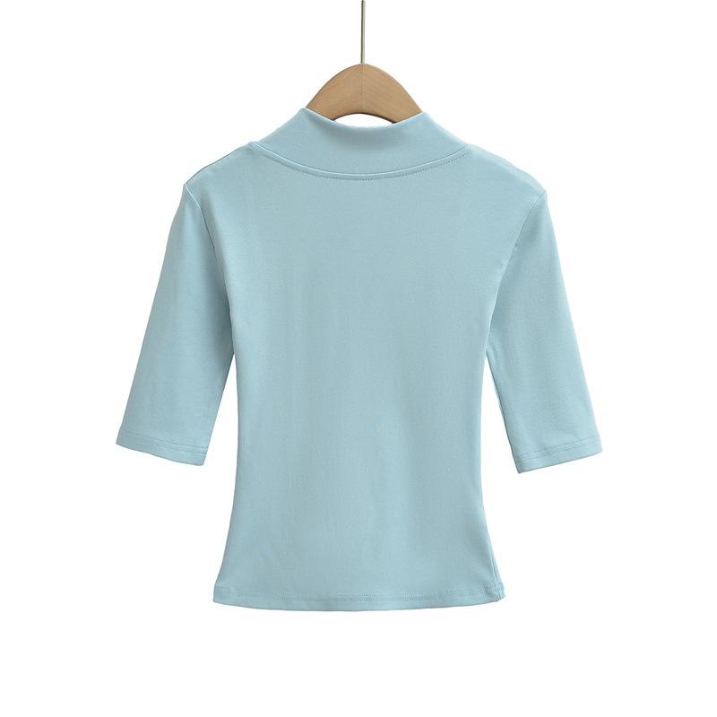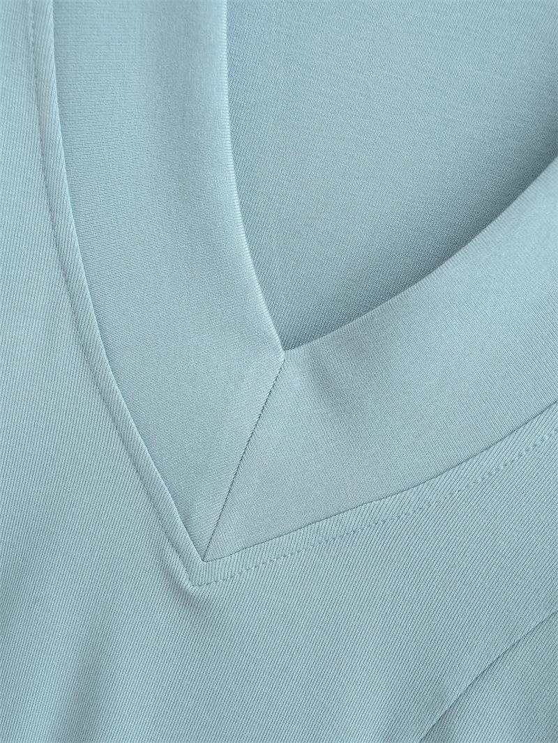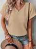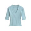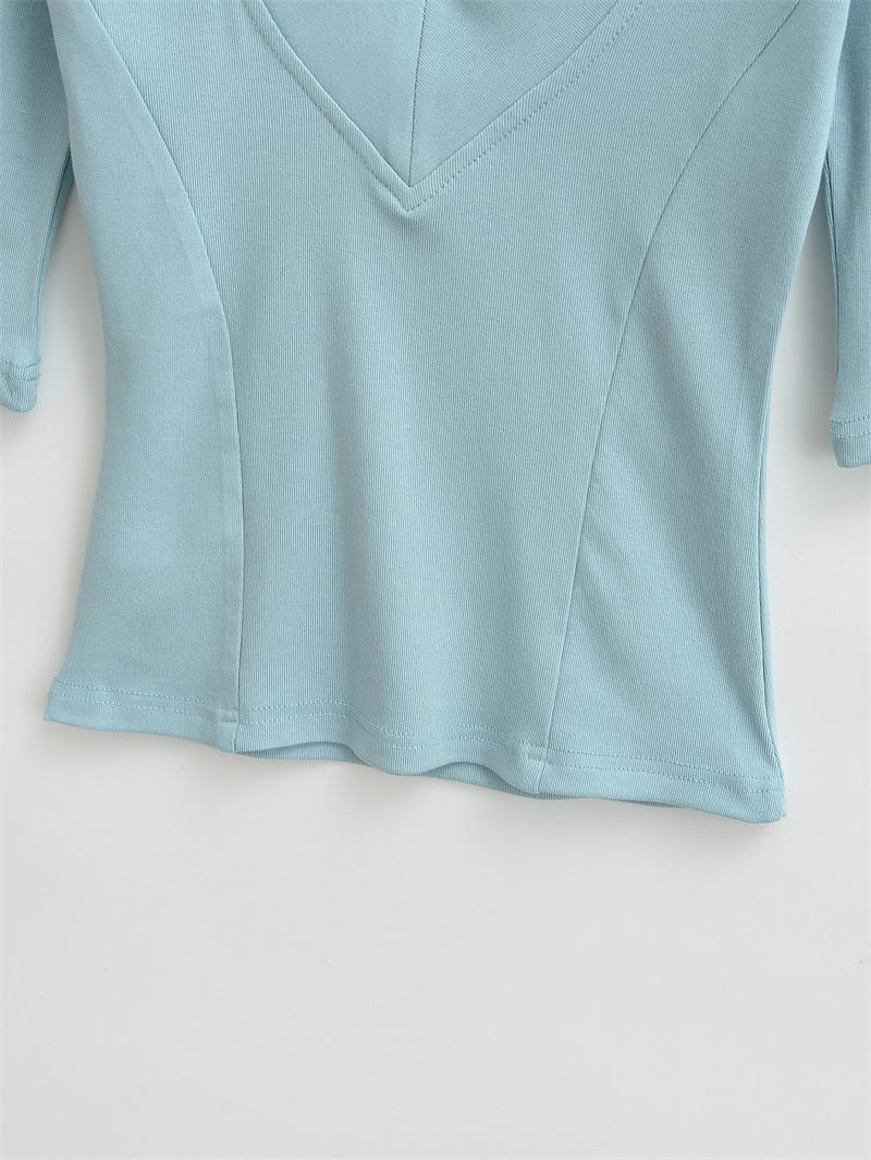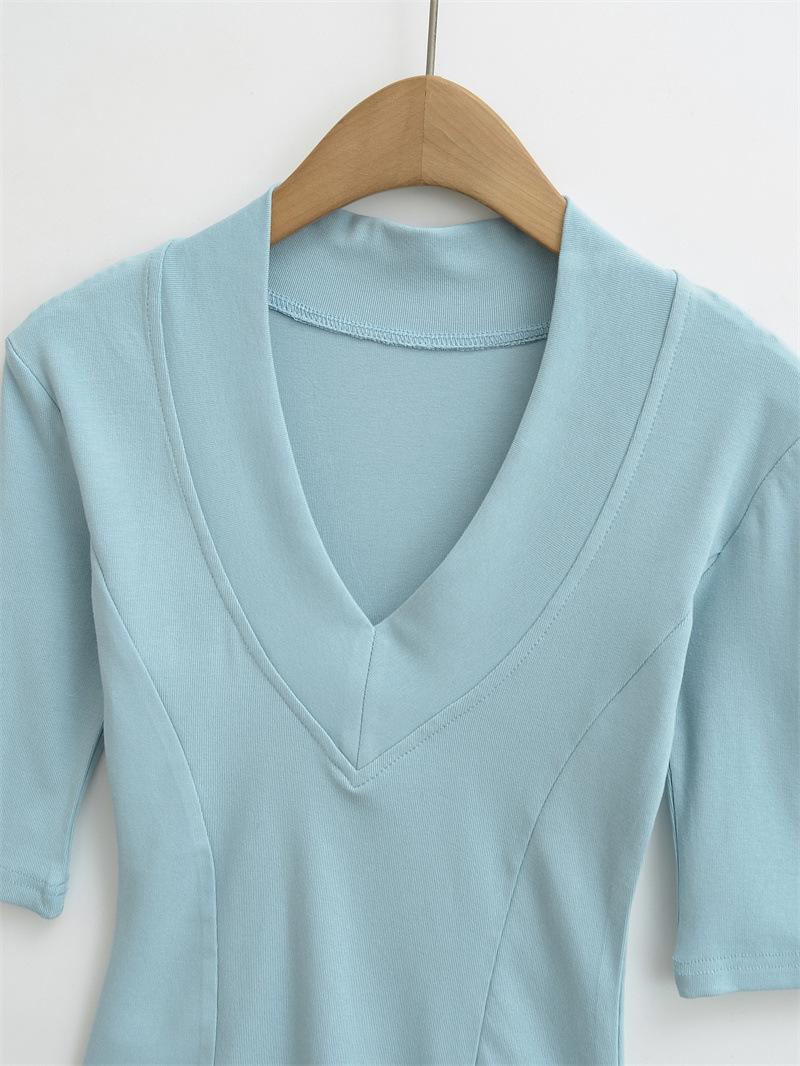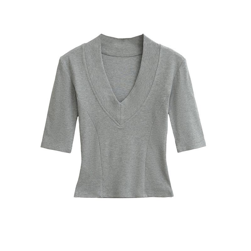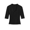Playera Nueva de Moda para Mujer Primavera/Verano 2025, Cuello en V Profundo, Top de Manga Tres Cuartos, Camiseta Básica Corta Ajustada Estilo Americano