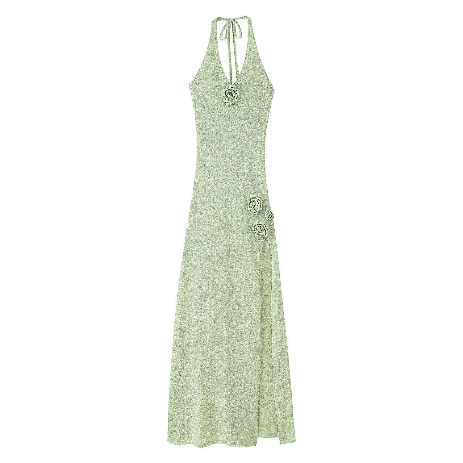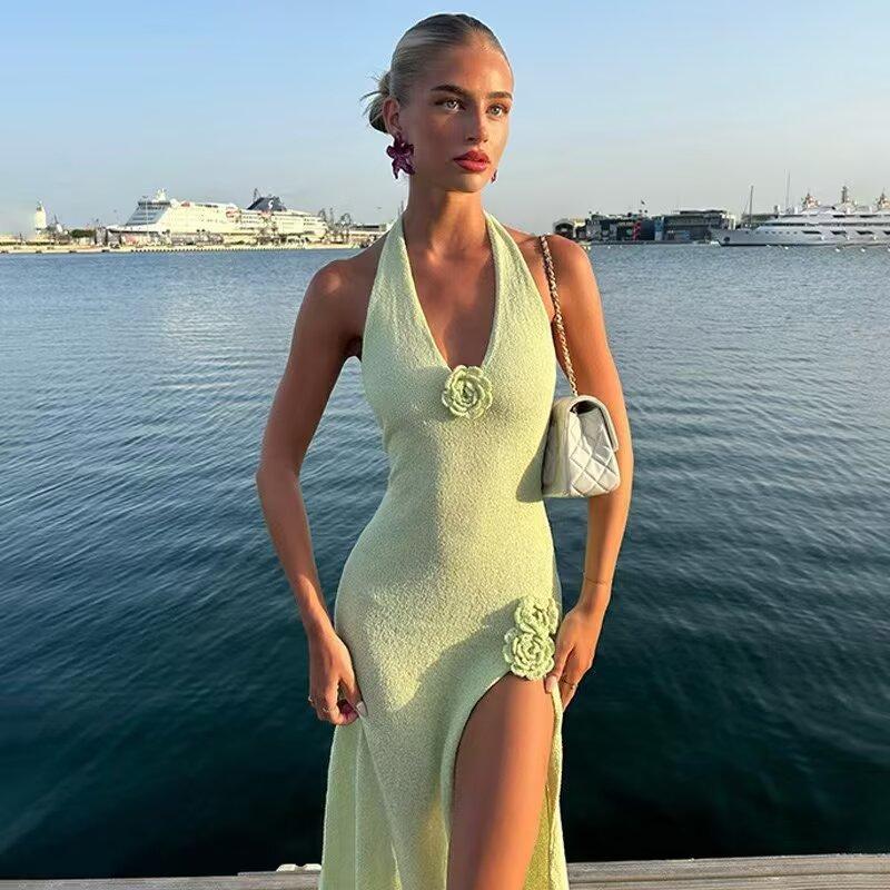 Ropa Europea y Americana Transfronteriza Aliexpress Popular Halter Espalda Descubierta Abertura Falda Larga