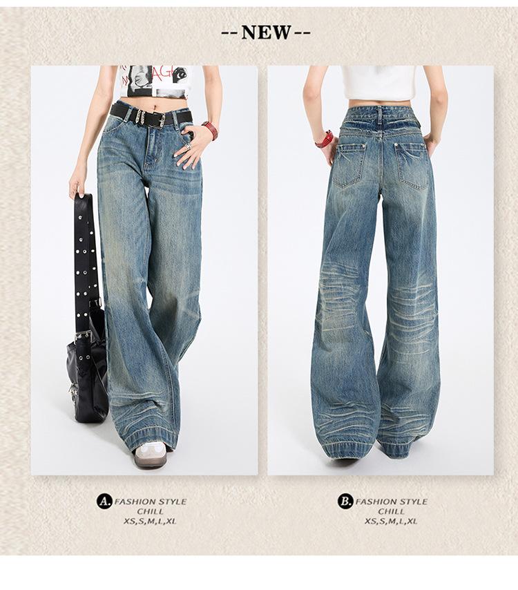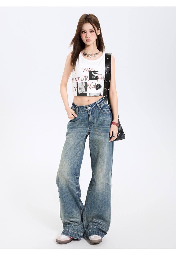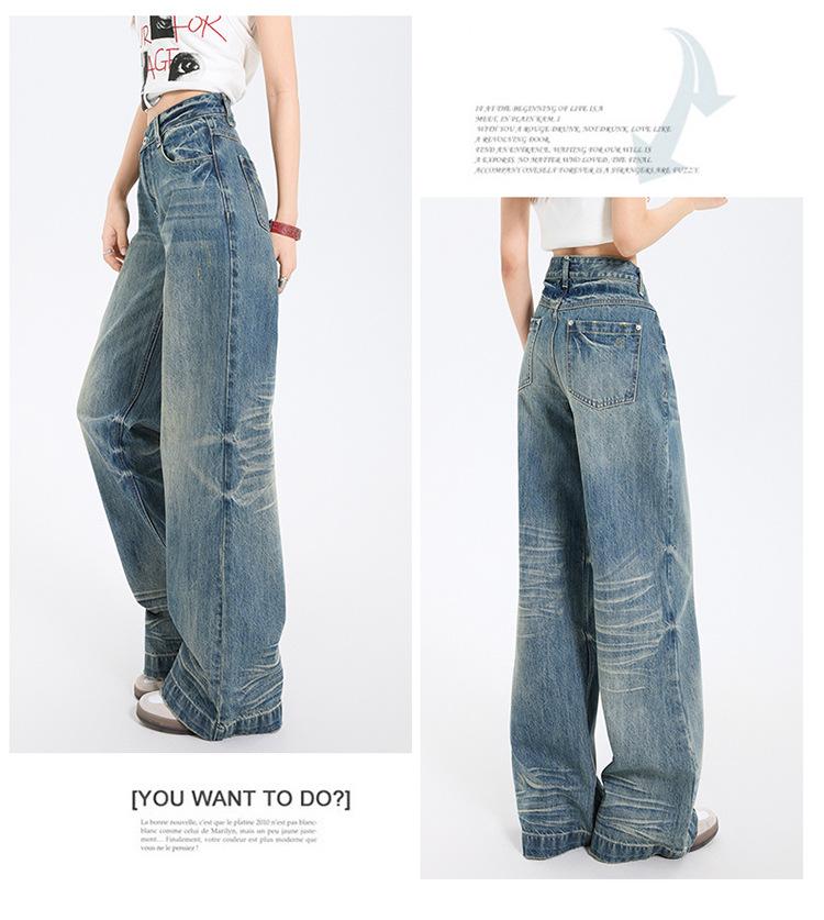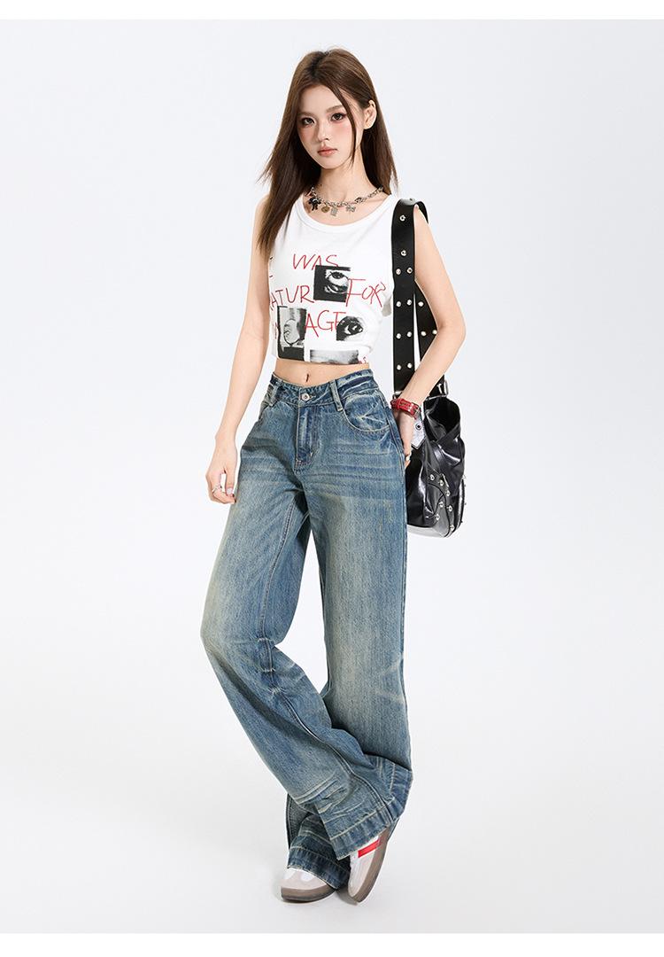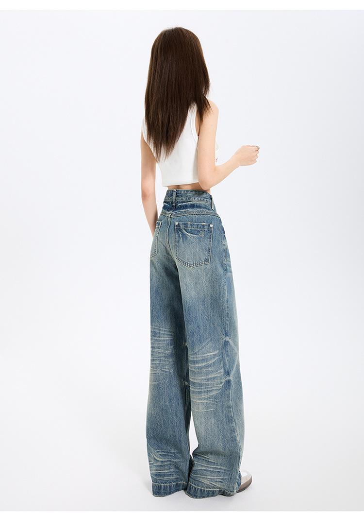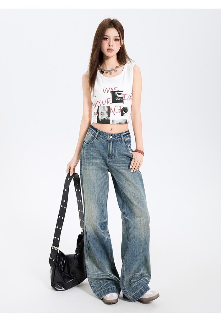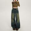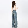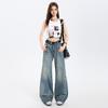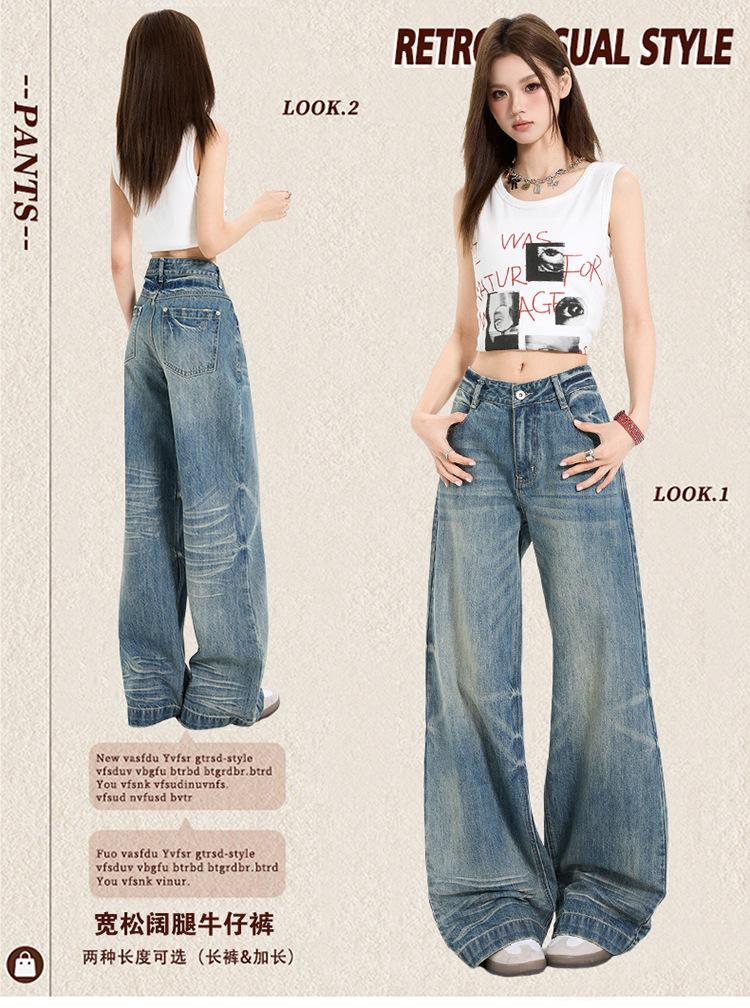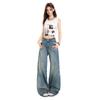 Young Orange# Jeans Clásicos Vintage Lavados de Cintura Baja y Pierna Ancha Estilo Hong Kong para Mujer, Diseño Suelto y Adelgazante, Pantalones de Moda