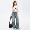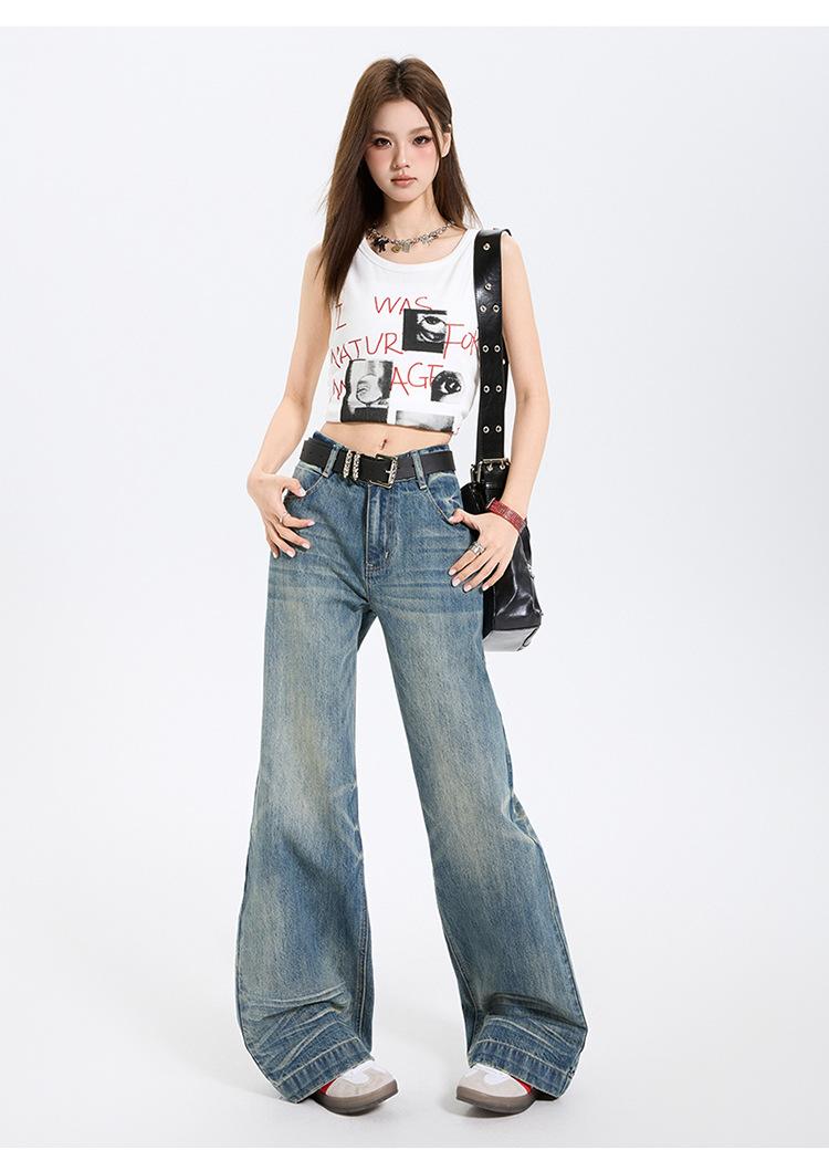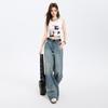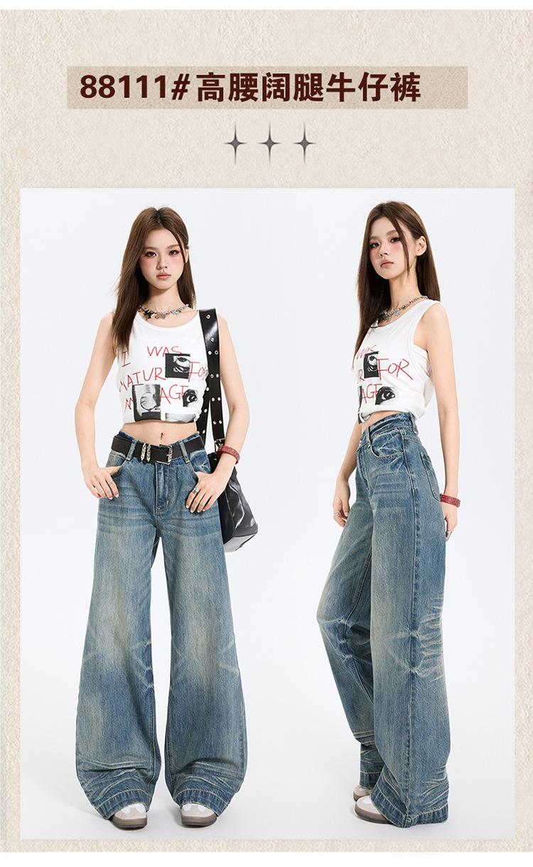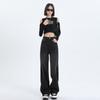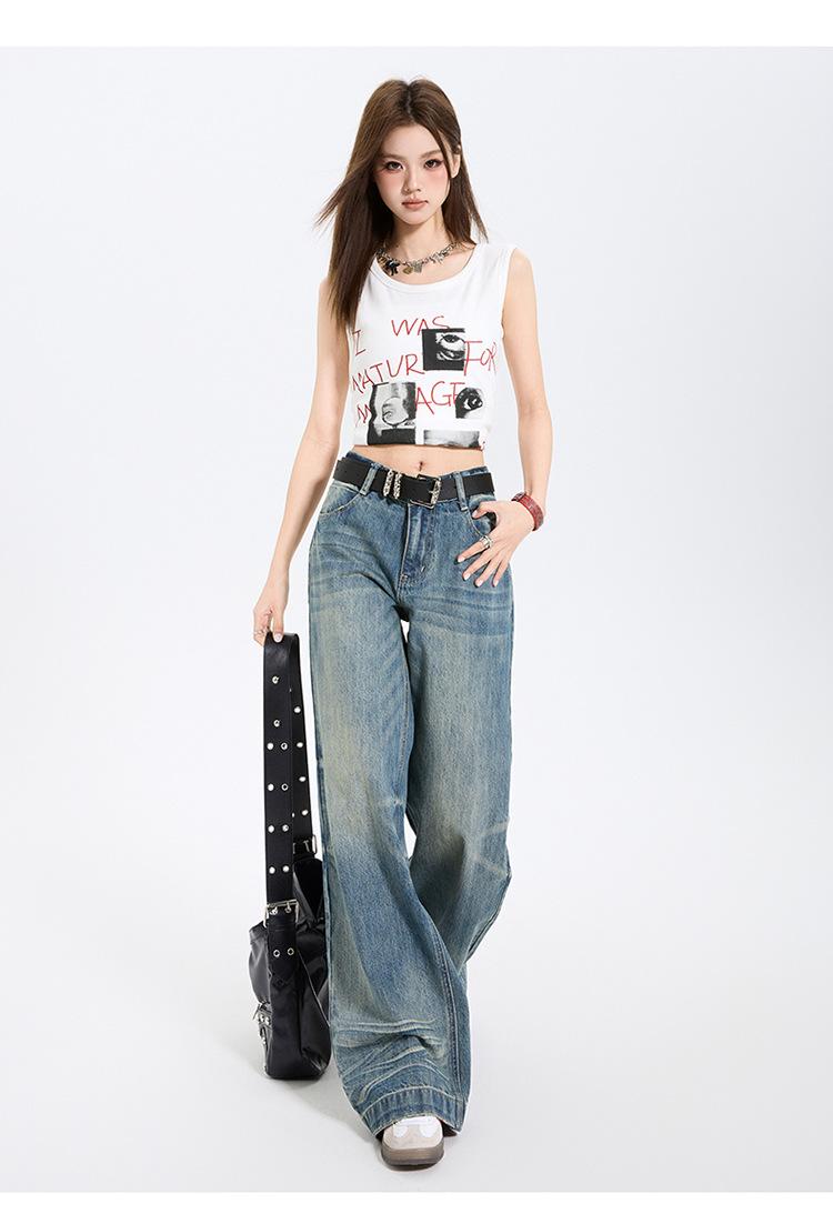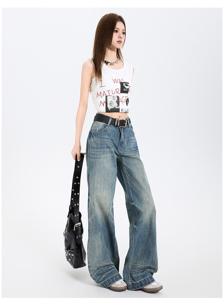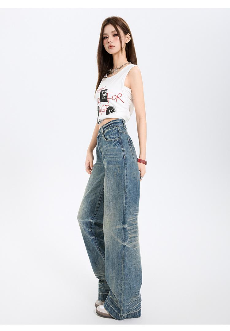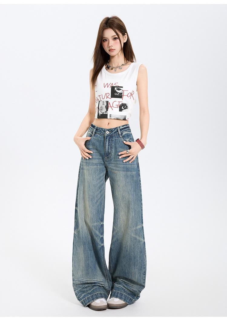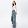 Young Orange# Jeans Clásicos Vintage Lavados de Cintura Baja y Pierna Ancha Estilo Hong Kong para Mujer, Diseño Suelto y Adelgazante, Pantalones de Moda