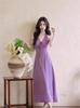 Vestido Morado Elegante Dulce Francés Cuello Ondulado Verano para Niños Hermoso Ropa de Viaje Estilo Vacacional Vestido Largo