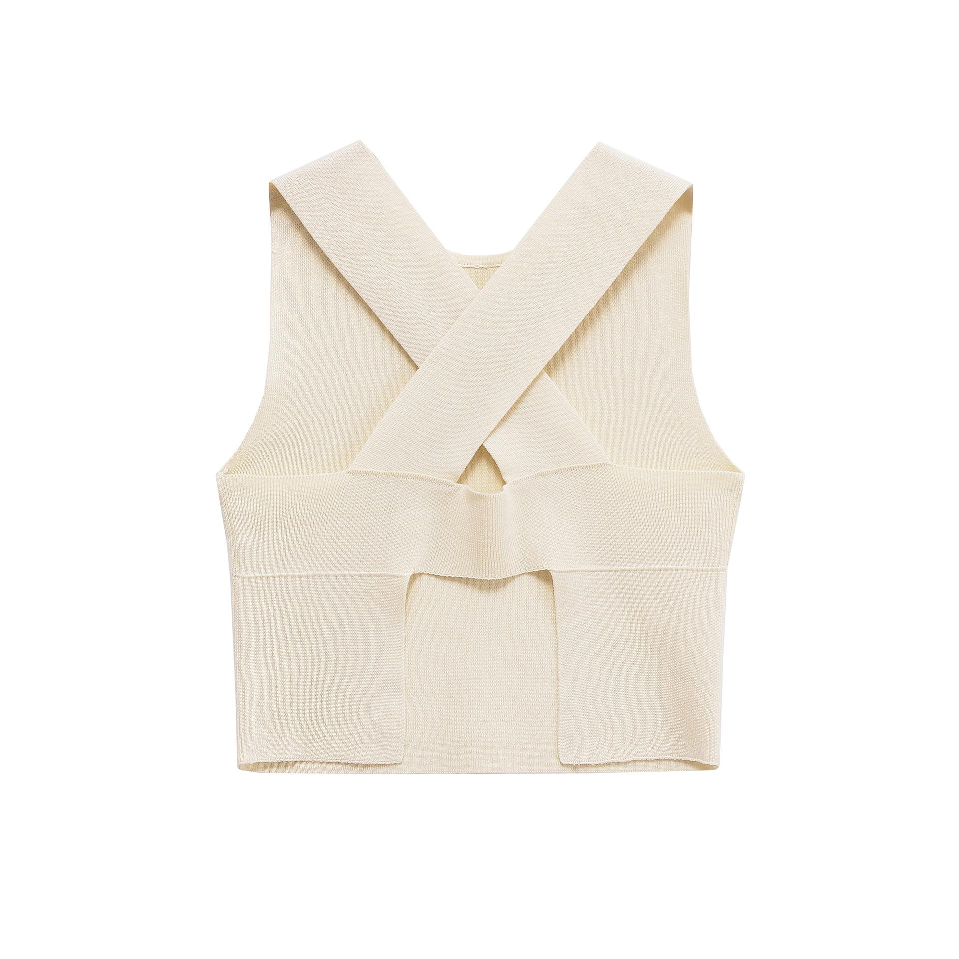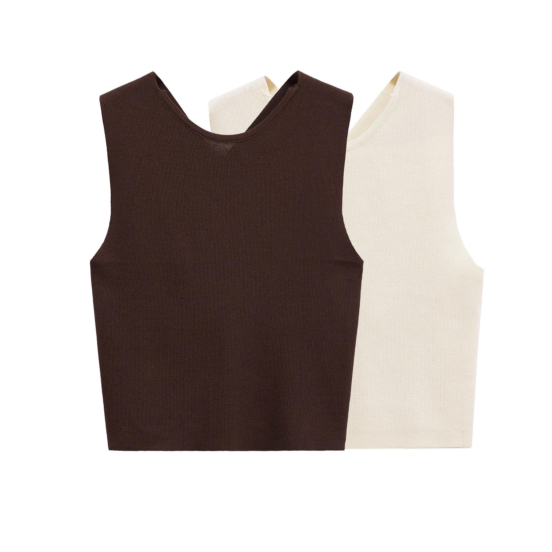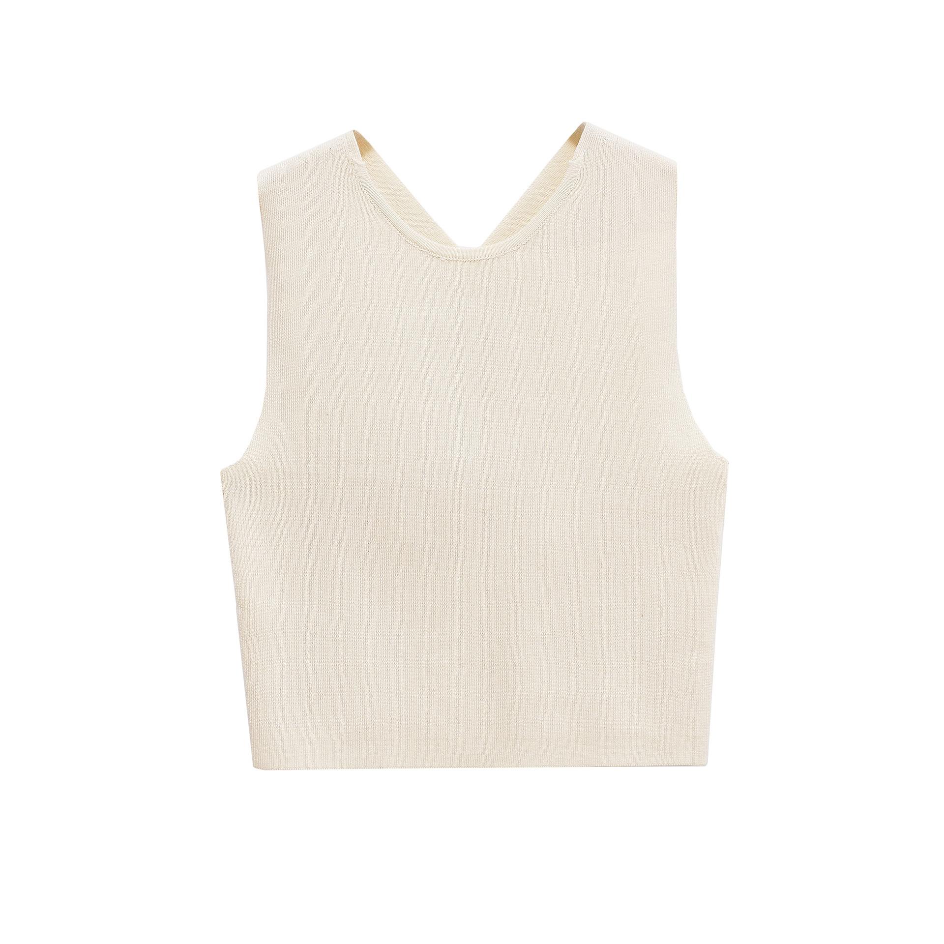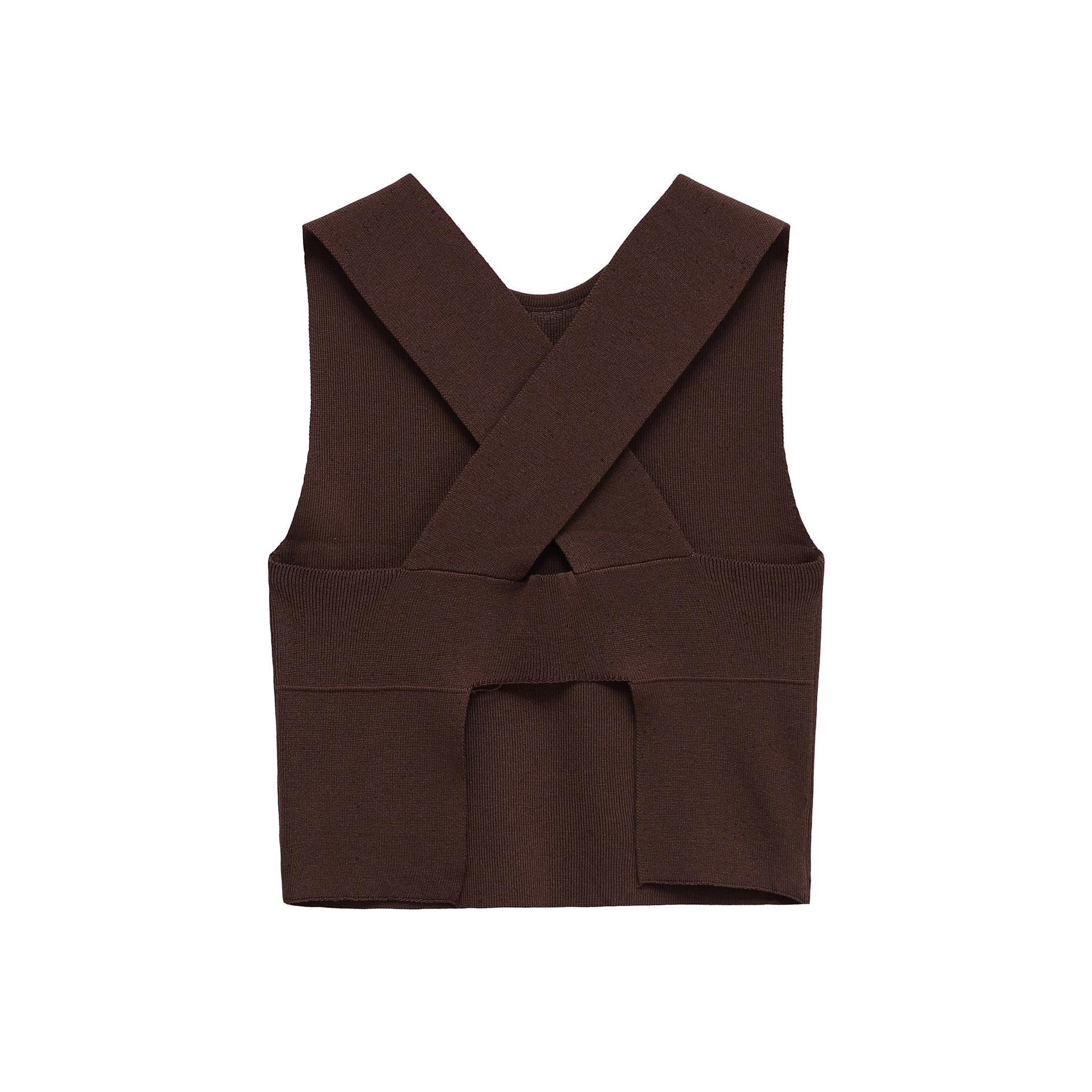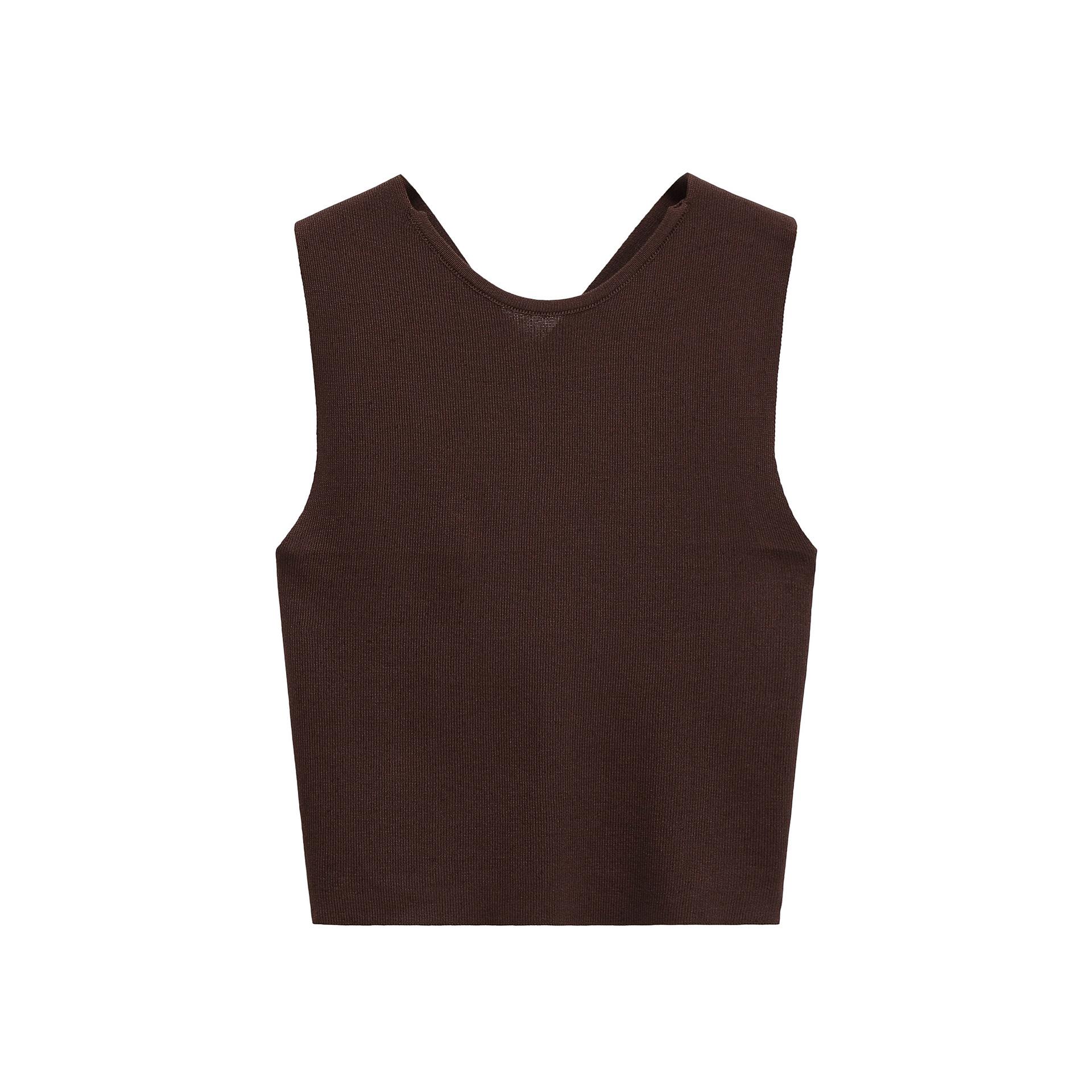 Moda Transfronteriza Europea y Americana Ins Popular Estilo Caliente Chaleco Tejido de Cuello Redondo con Abertura en la Espalda