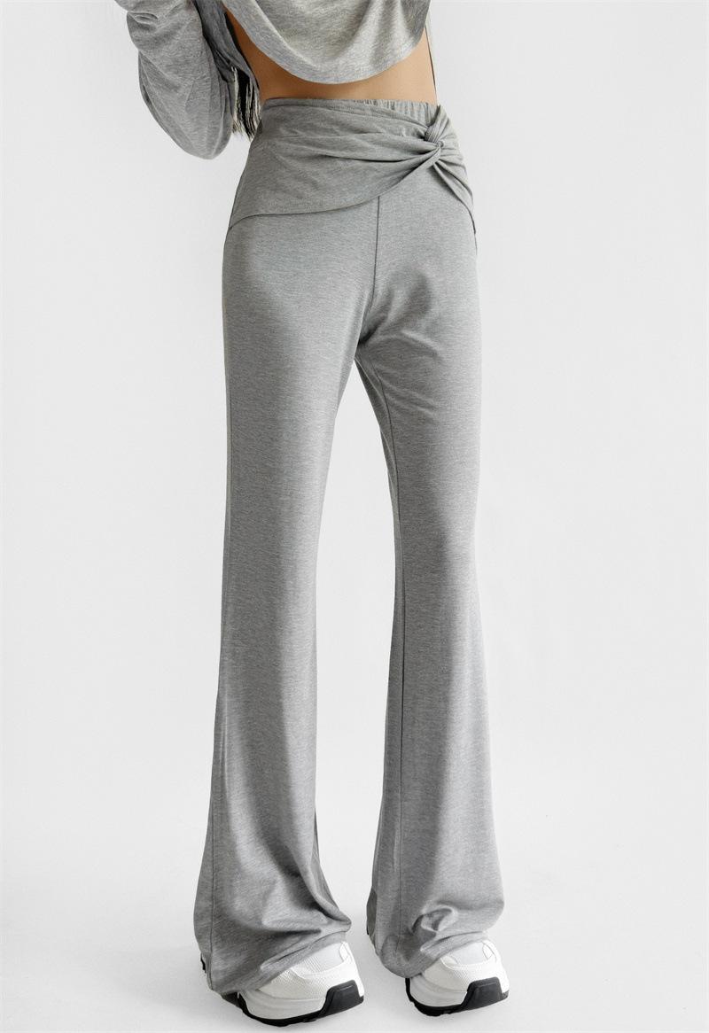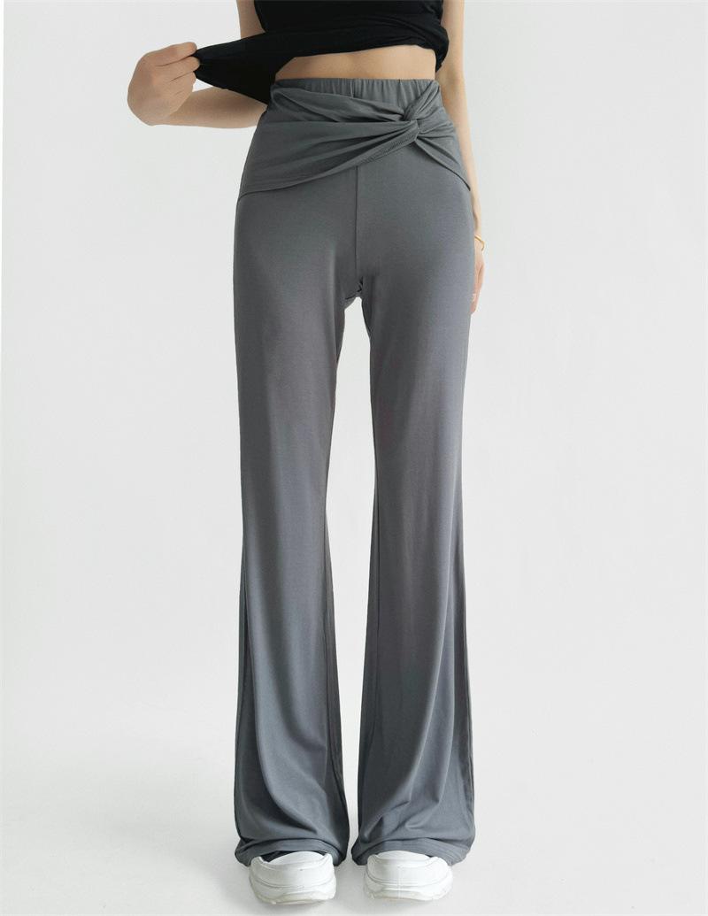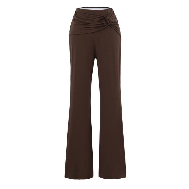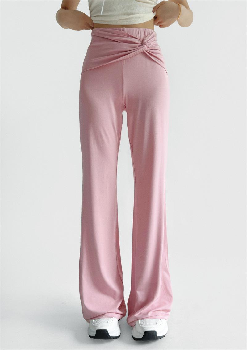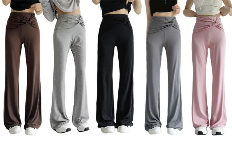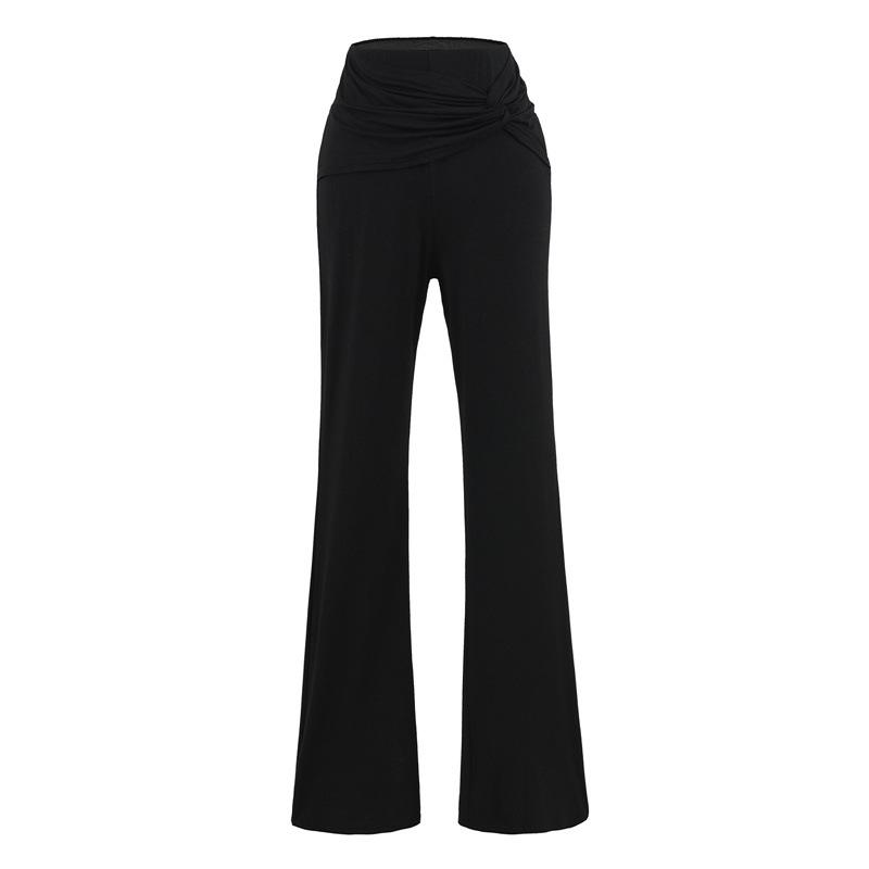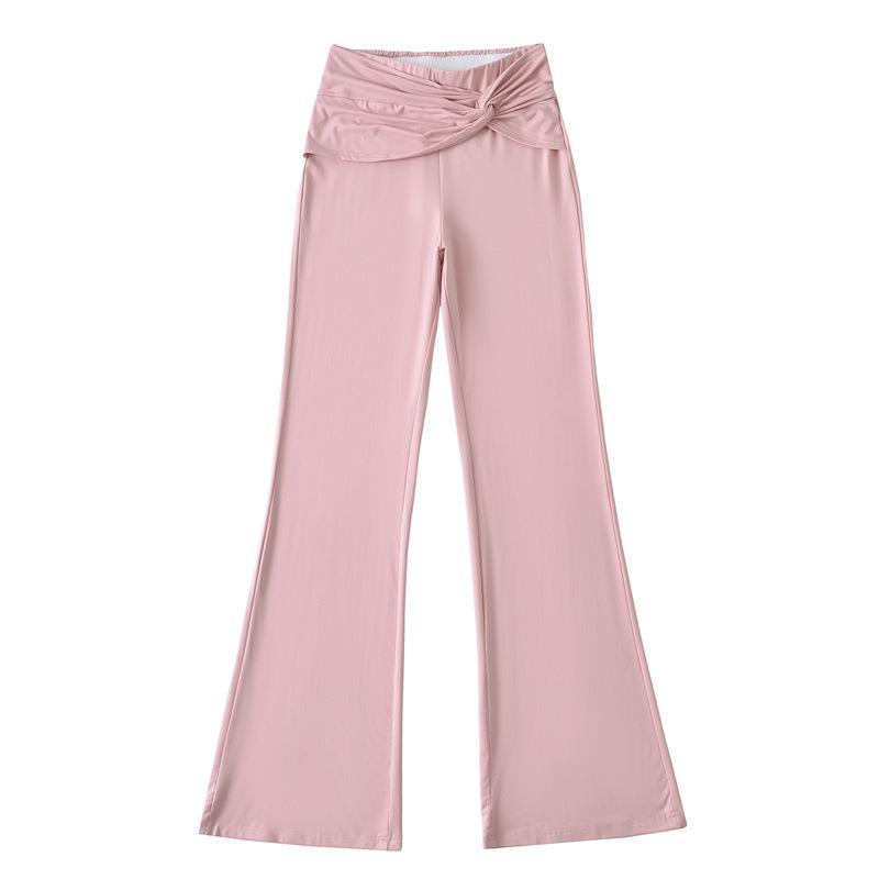 Pantalones Acampanados Sexy de Cintura en V con Nudo, Pantalones de Yoga Deportivos Casuales Cómodos de Tiro Bajo de Pierna Recta para Mujer