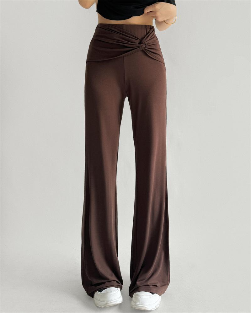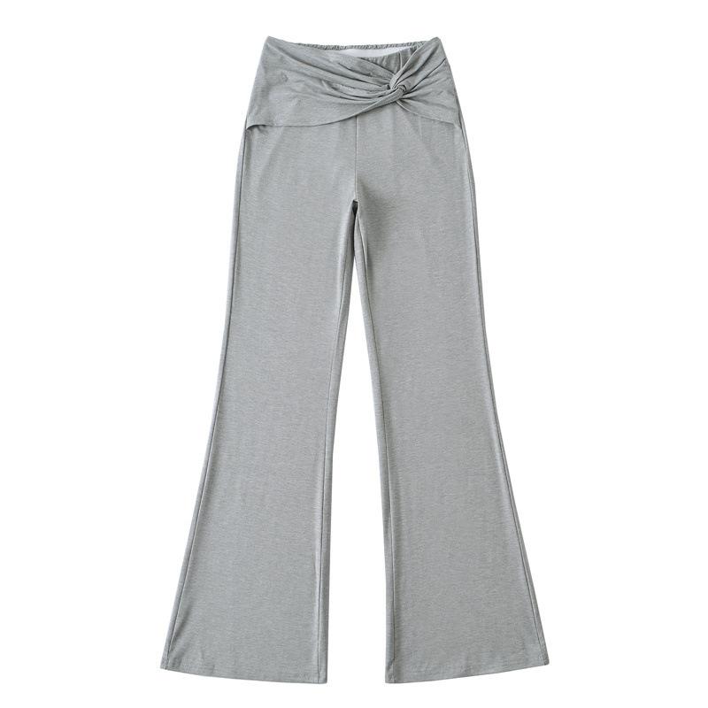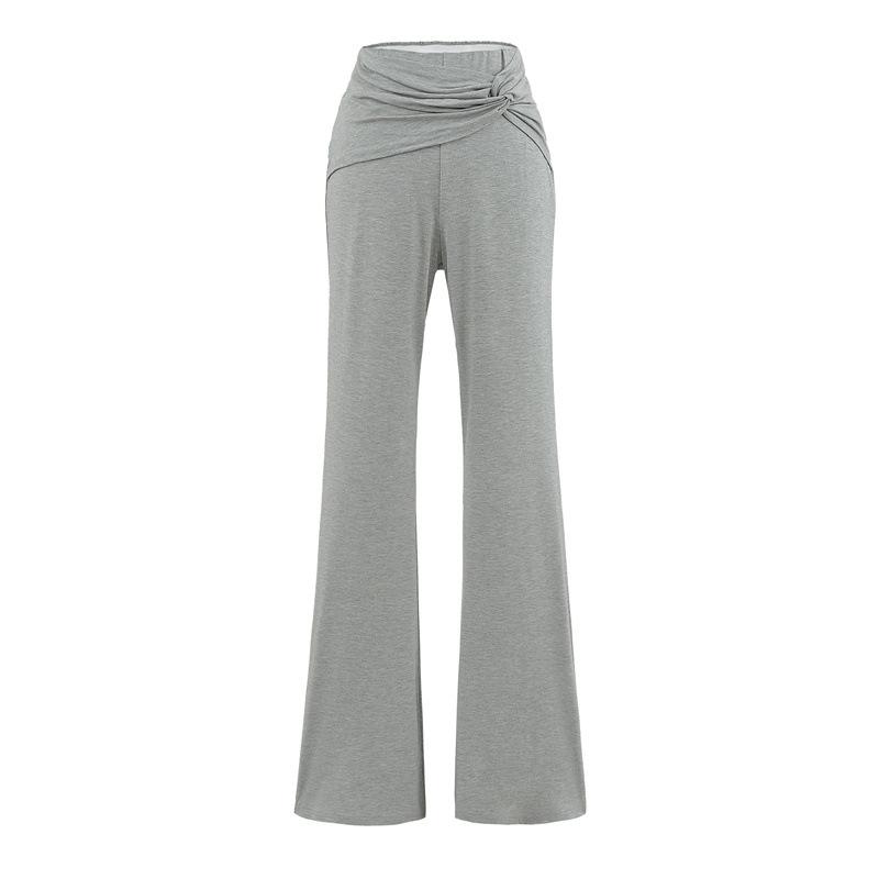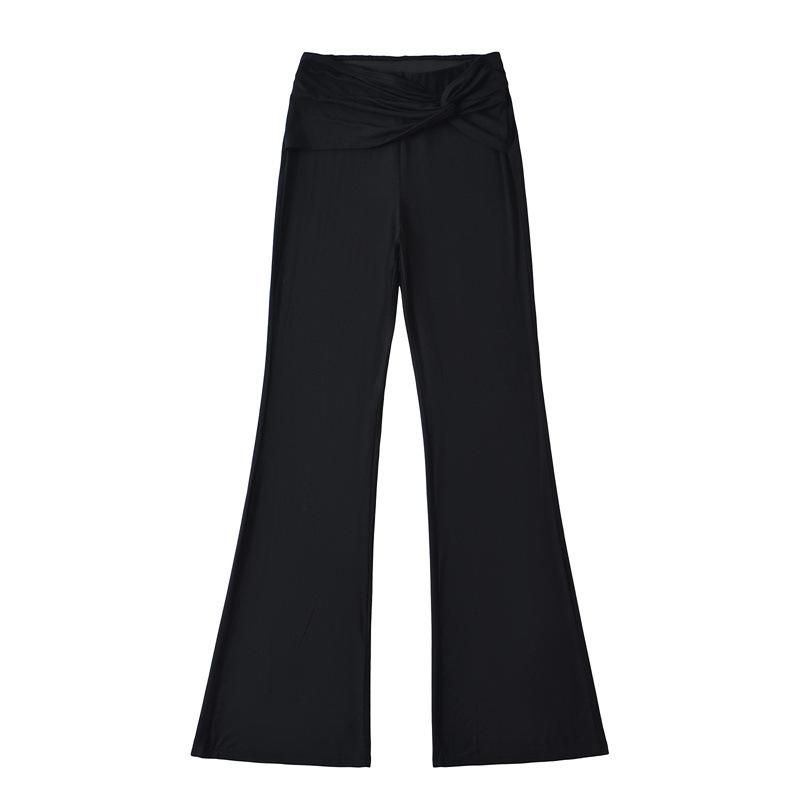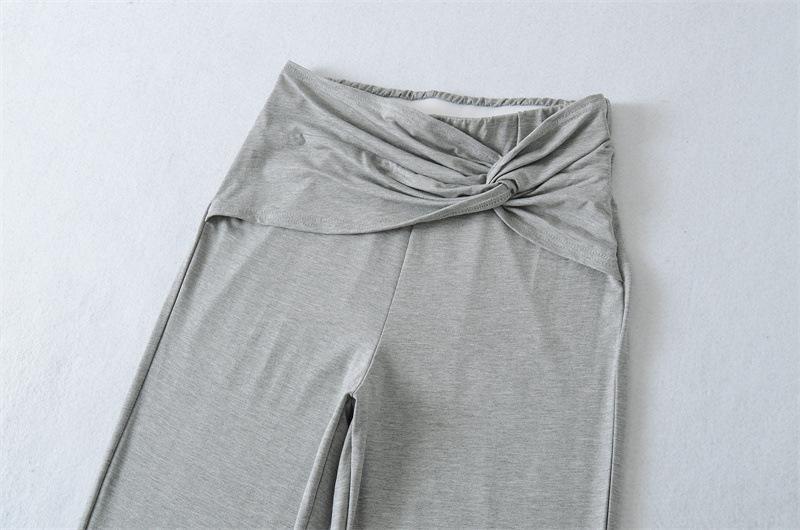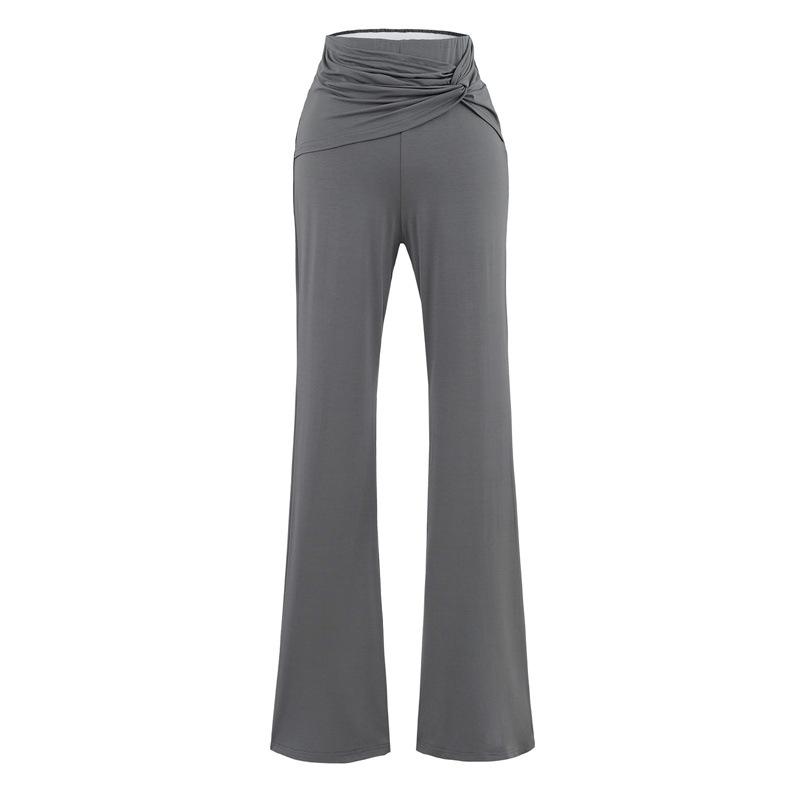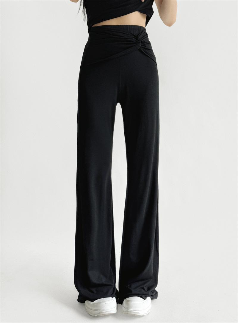 Pantalones Acampanados Sexy de Cintura en V con Nudo, Pantalones de Yoga Deportivos Casuales Cómodos de Tiro Bajo de Pierna Recta para Mujer