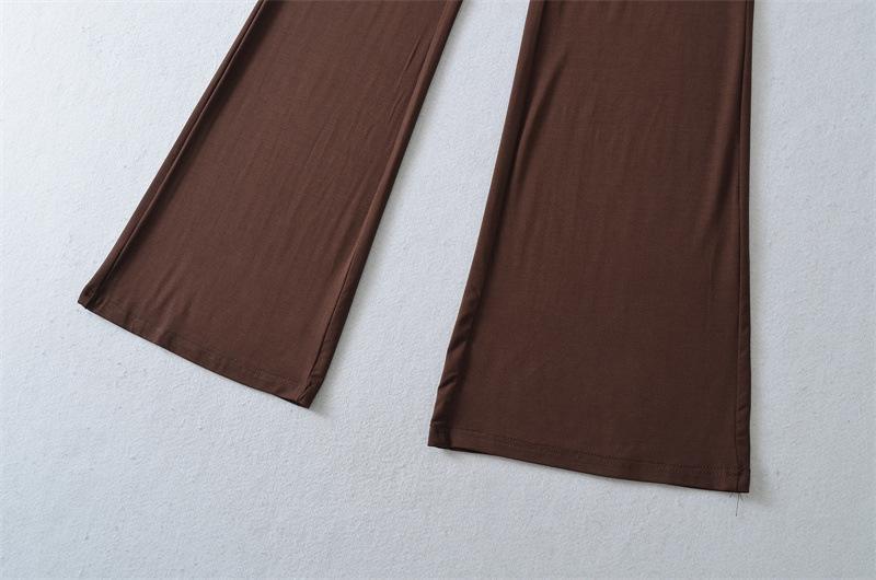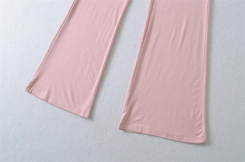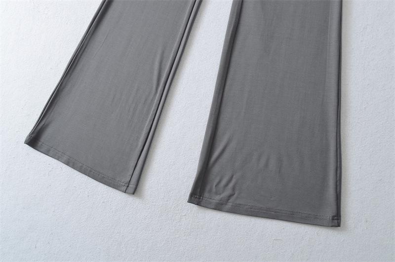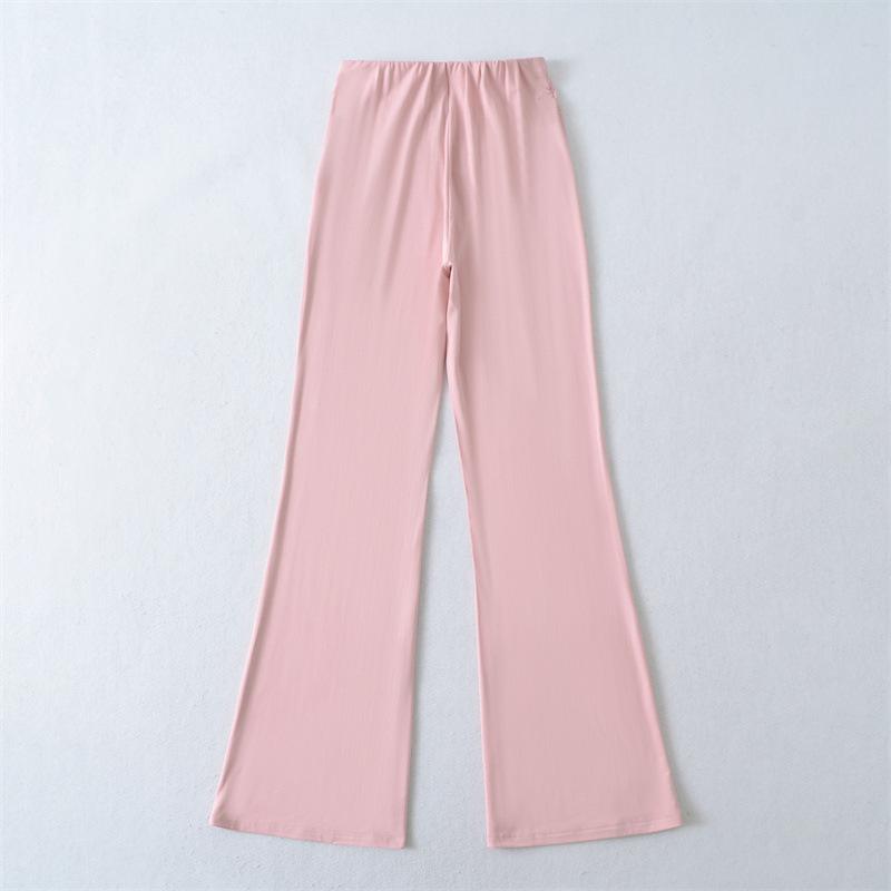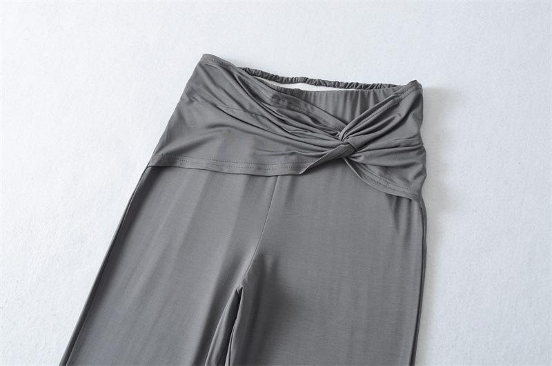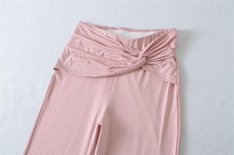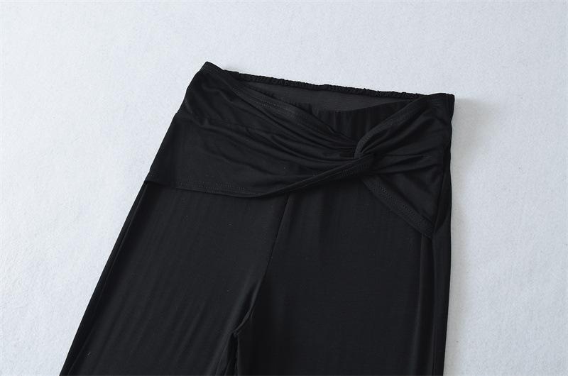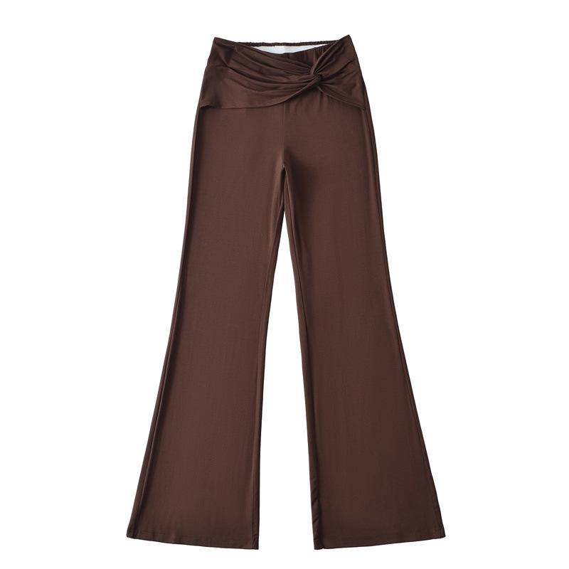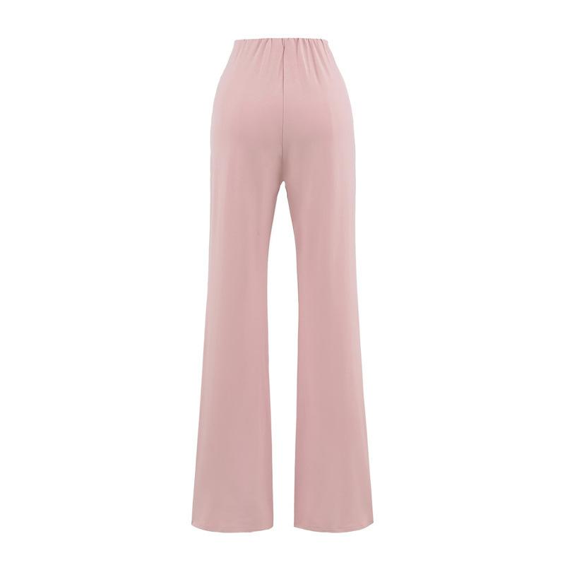 Pantalones Acampanados Sexy de Cintura en V con Nudo, Pantalones de Yoga Deportivos Casuales Cómodos de Tiro Bajo de Pierna Recta para Mujer