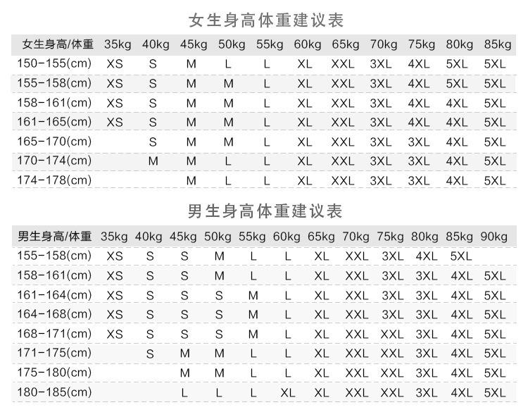 XS, S, M, L, XL, 2XL, 3XL, 4XL, 5XL