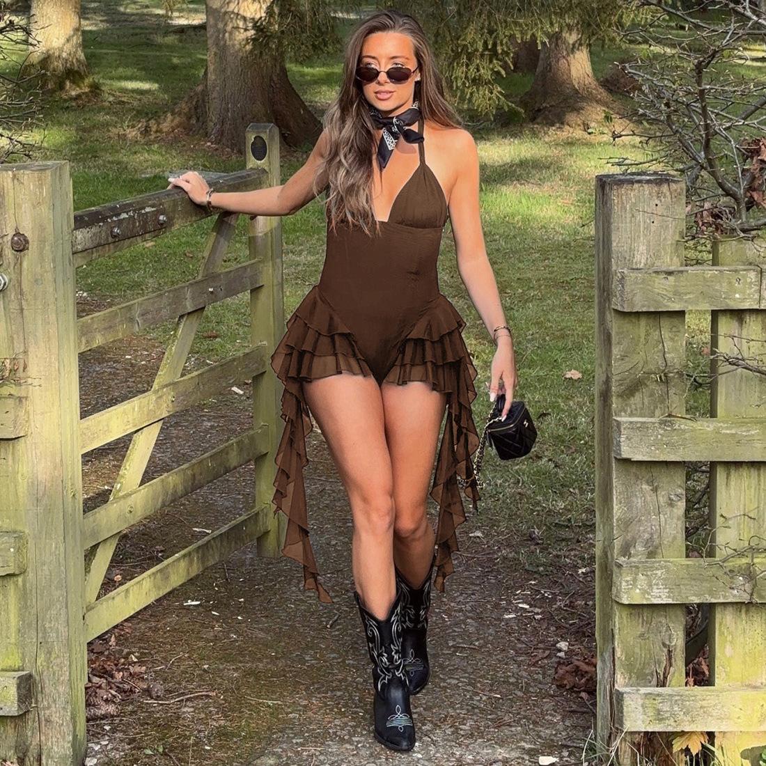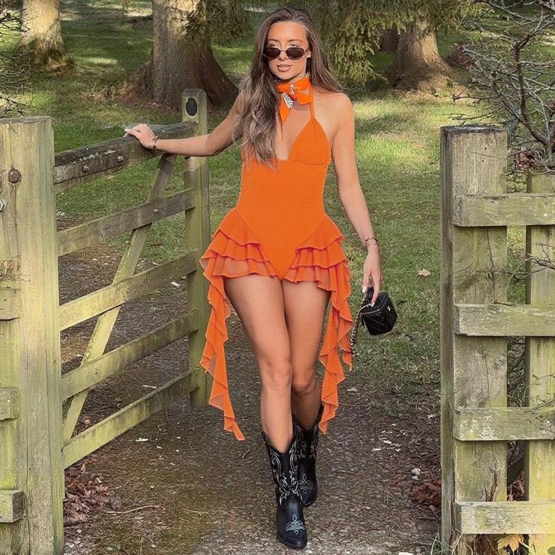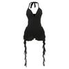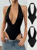 Mono de Color Puro Sexy para Chica Caliente con Cuello Halter de Pico Profundo y Espalda Descubierta de Estilo Europeo y Americano Transfronterizo Nuevo Verano 2025