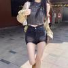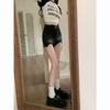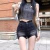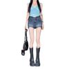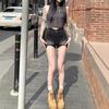 Pantalones cortos vaqueros elásticos de cintura alta estilo americano retro para mujer, nuevos pantalones ajustados de corte A a la cadera de verano a la moda